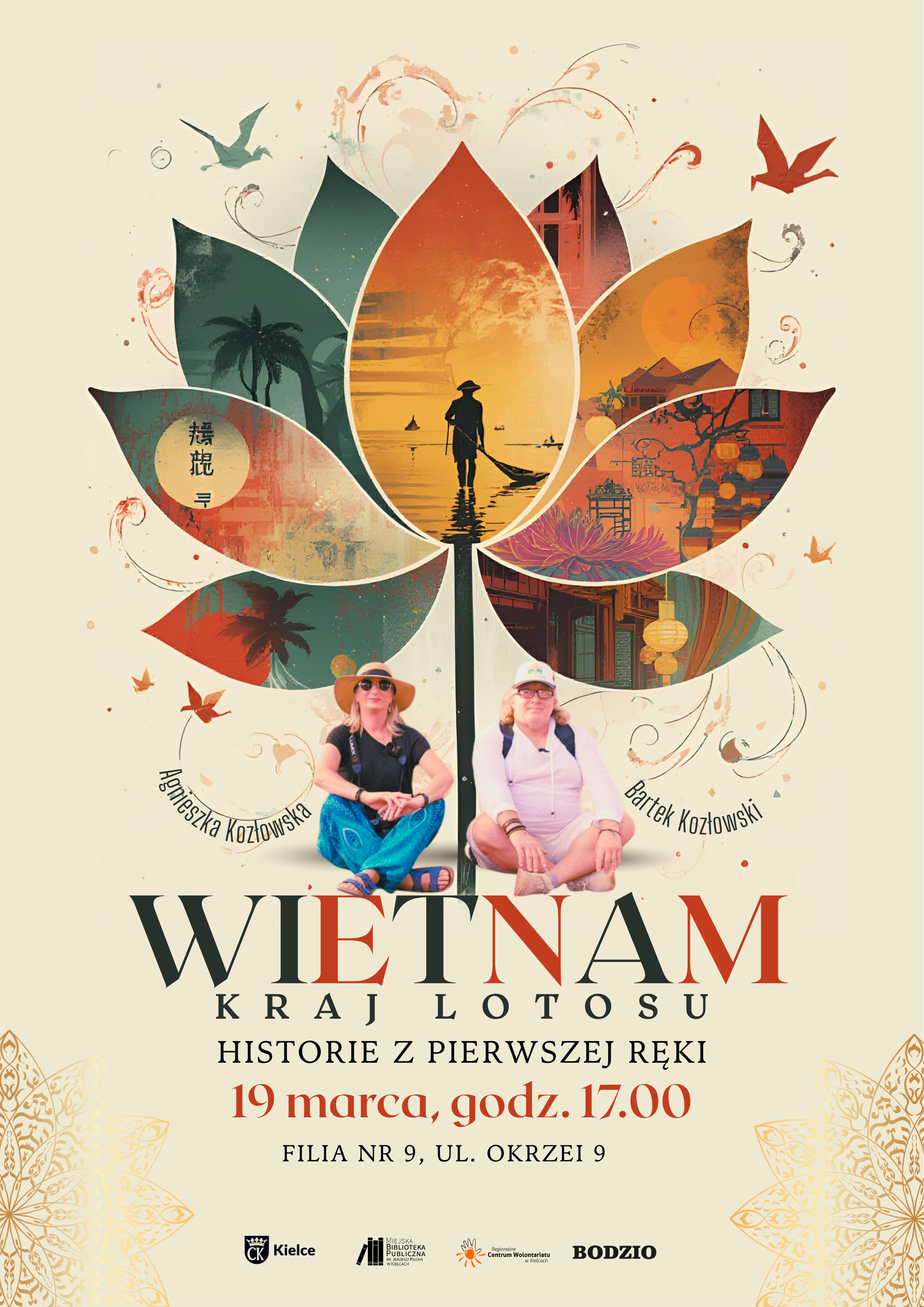 Zapraszamy 19 marca 2026 r. o godz. 17:00 do Filii nr 9 MBP im. Jerzego Pilcha w Kielcach na spotkanie z Agnieszką Kozłowską i Bartłomiejem Kozłowskim, podróżnikami, blogerami, twórcami internetowymi. Goście opowiedzą o swojej wyprawie do Wietnamu, podzielą się wrażeniami i doświadczeniami z podróży. Rozmowie będzie towarzyszyć…