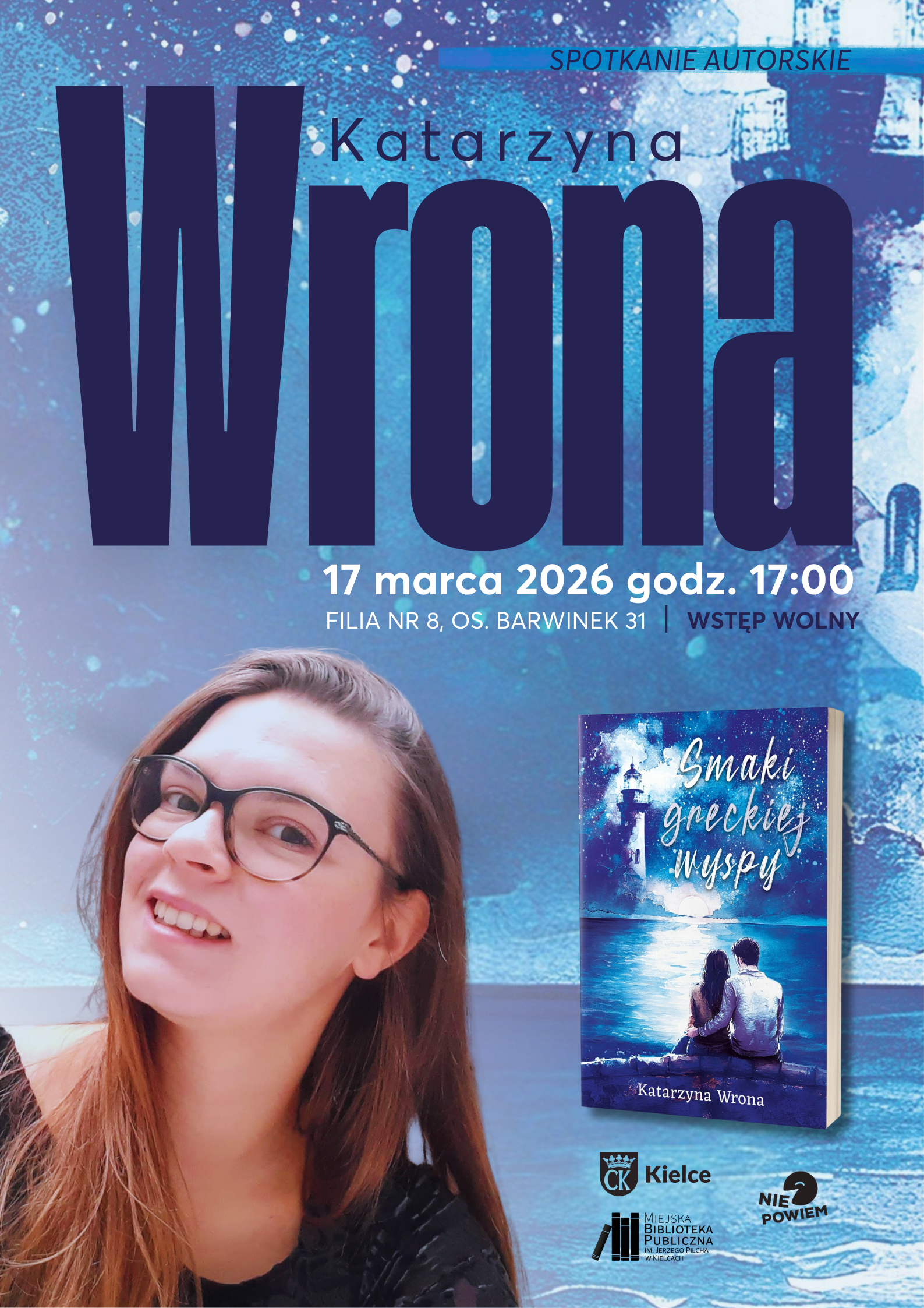 Zapraszamy 17 marca 2026 r. o godz. 17:00 do Filii nr 8, ul. Barwinek 31, na spotkanie autorskie z Katarzyną Wroną, doktorantką na UJ i promocję książki „Smak greckiej wyspy” (Wydawnictwo Nie powiem 2026). Autorka opowie o procesie pisania oraz wydania jej debiutanckiej powieści, najciekawszych wątkach z książki, planach autors…