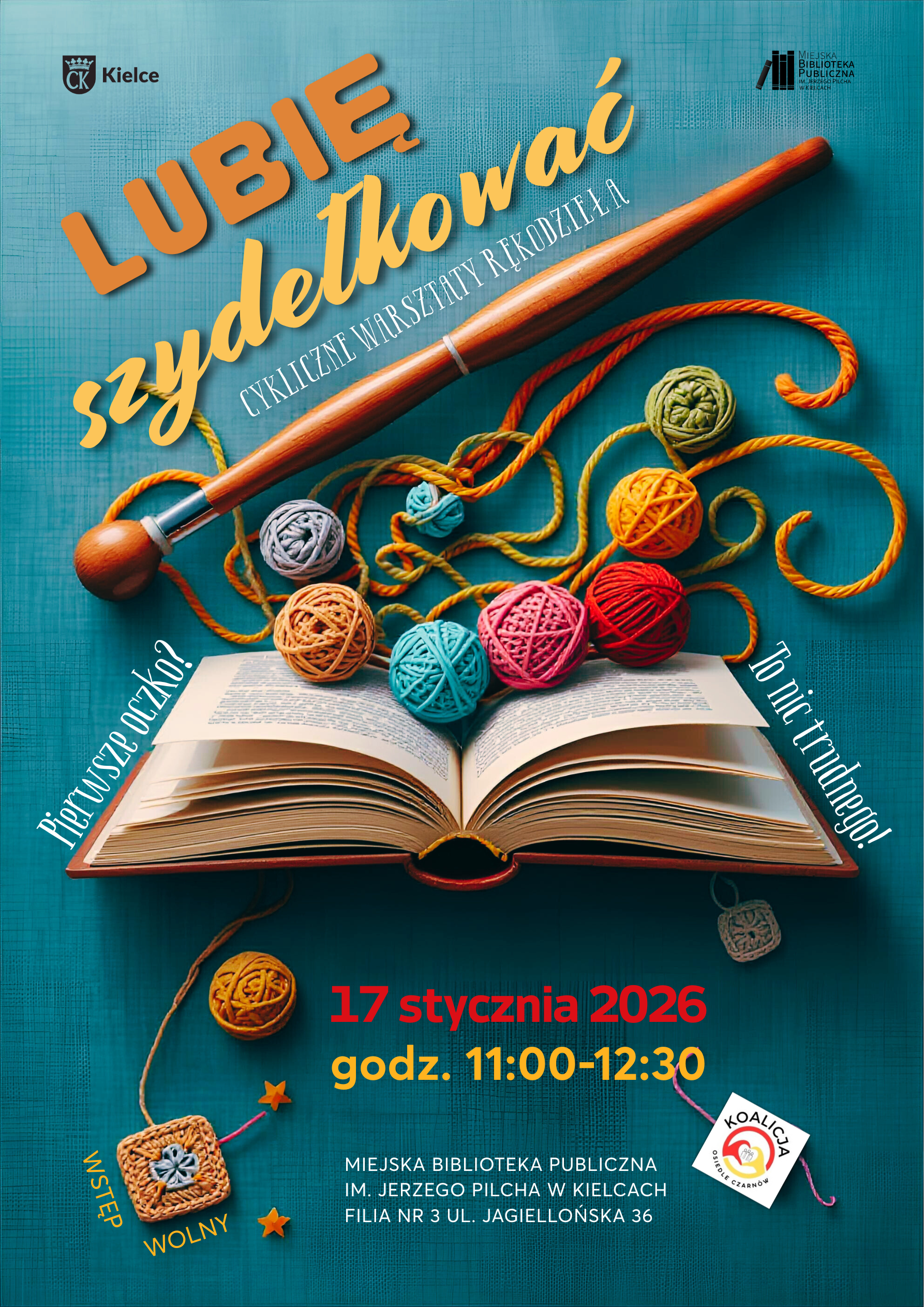 Biblioteka to nie tylko książki! Zapraszamy 17 stycznia 2026 r. w godz. 11:00-12:30 na warsztaty szydełkowania do Filii nr 3 MBP (ul. Jagiellońska 36), gdzie w przyjaznej atmosferze można nauczyć się nowych splotów, rozwinąć kreatywność i spędzić czas przy miłej rozmowie. Czekamy nie tylko na osoby początkujące w tej dziedzinie…