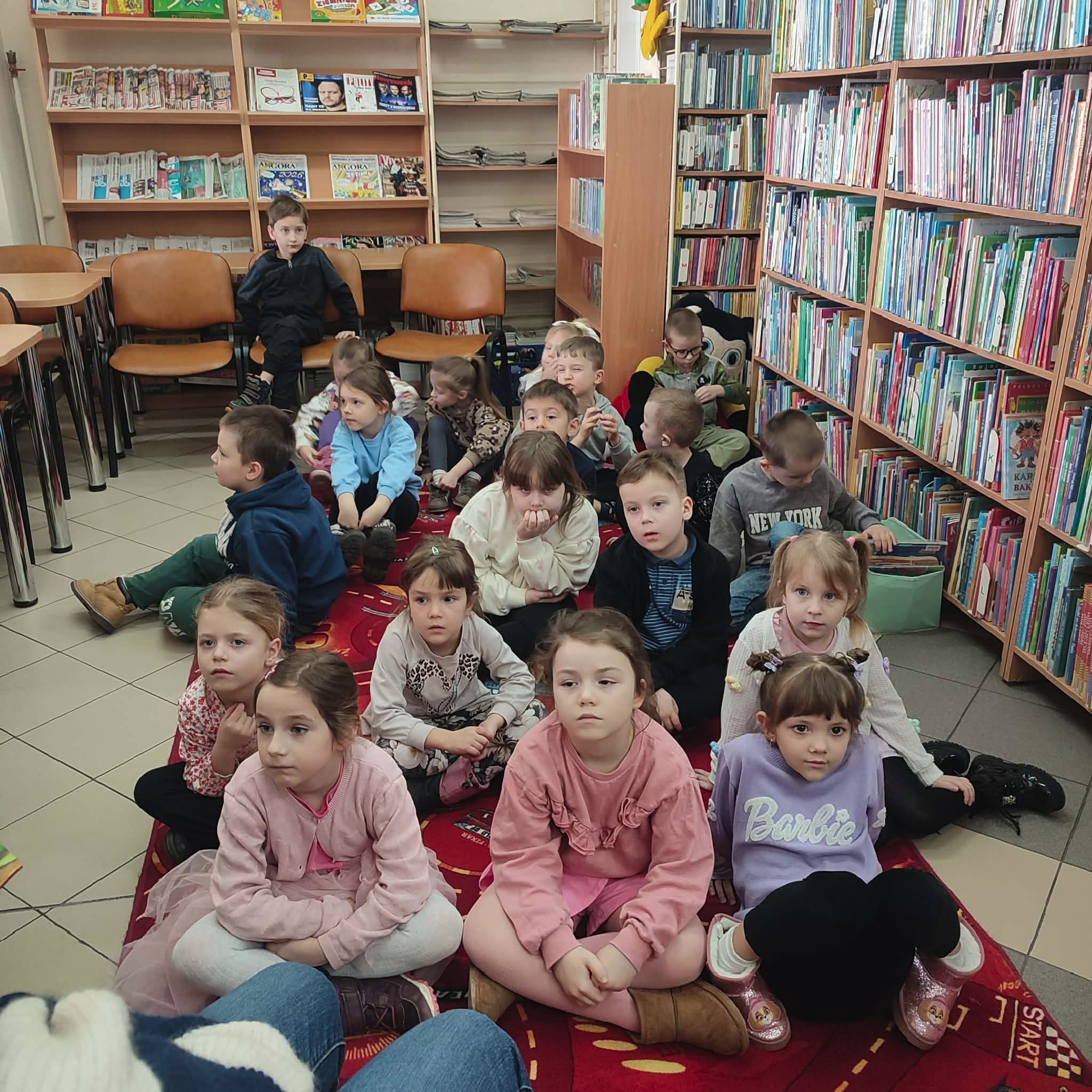 Dziś naszą bibliotekę odwiedziła wesoła gromadka z Prywatnego Przedszkola im. Kubusia Puchatka. Towarzyszyła im nie kto inny, jak sama Mama Mu, która – jak wiadomo – zna się nie tylko na krowich sprawach, ale i na bibliotecznych zasadach. Przedszkolaki z zapałem odkrywały tajemnice książkowego świata, a na koniec zgodnie obieca…