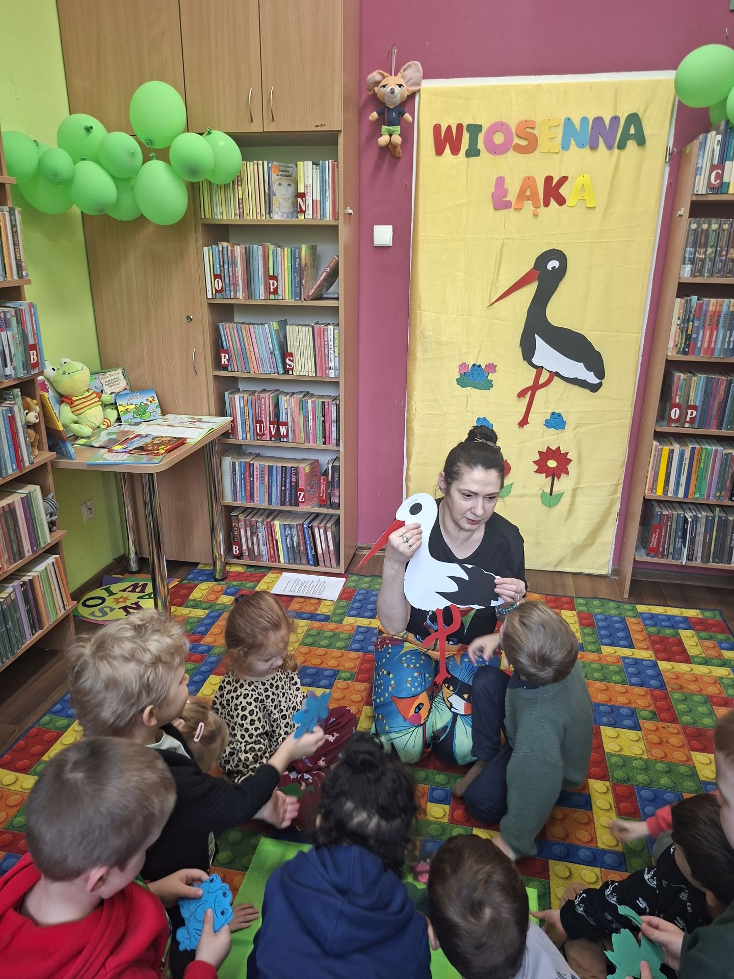 15 kwietnia 2026 r. Filię nr 12 MBP im. J. Pilcha w Kielcach odwiedziła grupa "Żabki" z Freblowskiego Przedszkola "Kreatywne Maluchowo". Po przywitaniu przedszkolaków przyjacielską żabką dzieci odpowiadały na pytania o wiośnie tworząc kolorowe koła. Podstawą omawianego spotkania było opowiadanie C. Lewandowskiej "Przygoda małej…