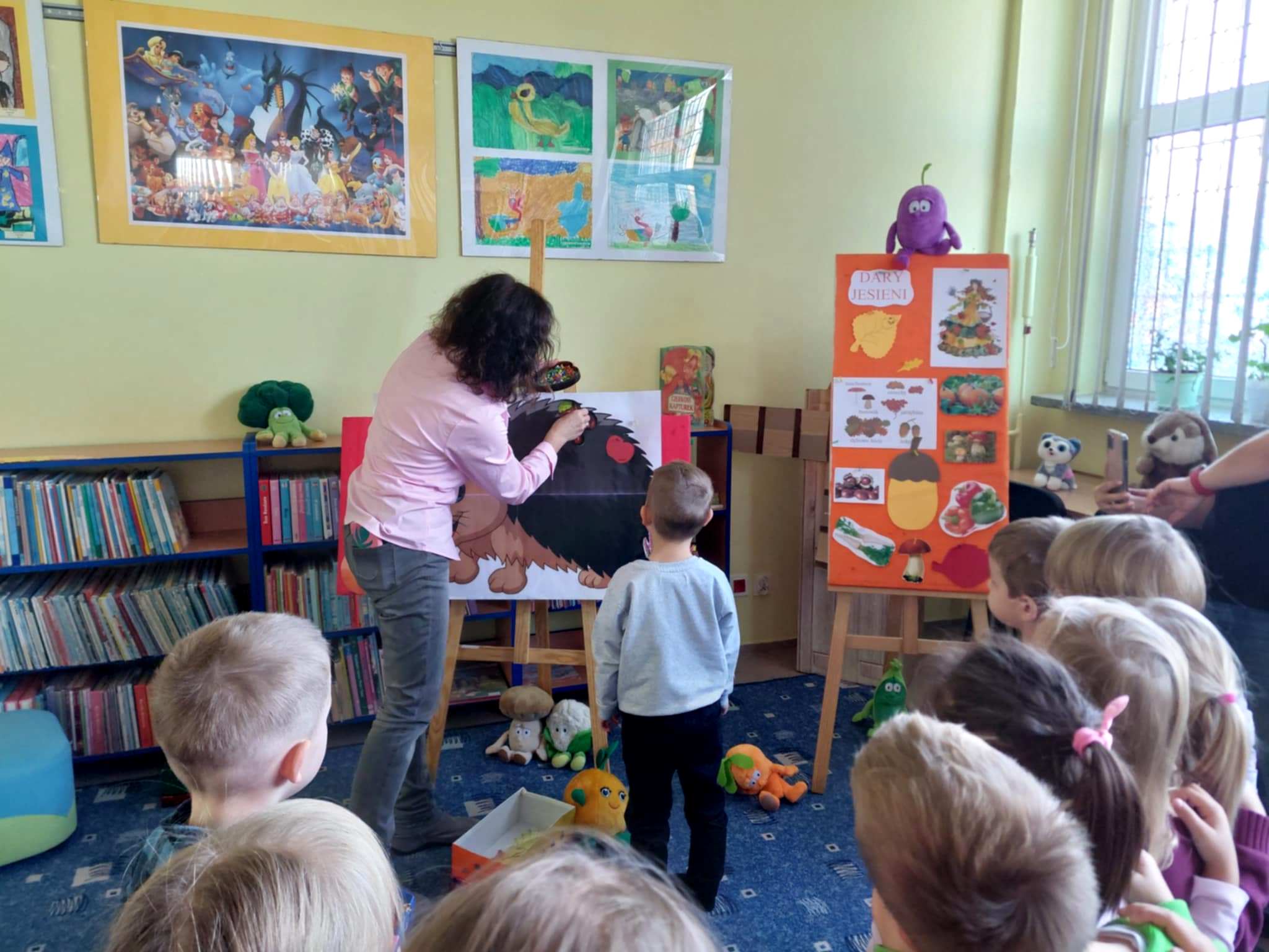 17.10.2025 r. Filię nr 5 odwiedziła grupa "Fiołków" z PS nr 35. Wspólnie uczestniczyliśmy w zajęciach, podczas których poznaliśmy bardzo zdrowe i kolorowe warzywa. Dzieci wysłuchały wiersza o dyni, brały udział w licznych zabawach i zajęciach ruchowych.