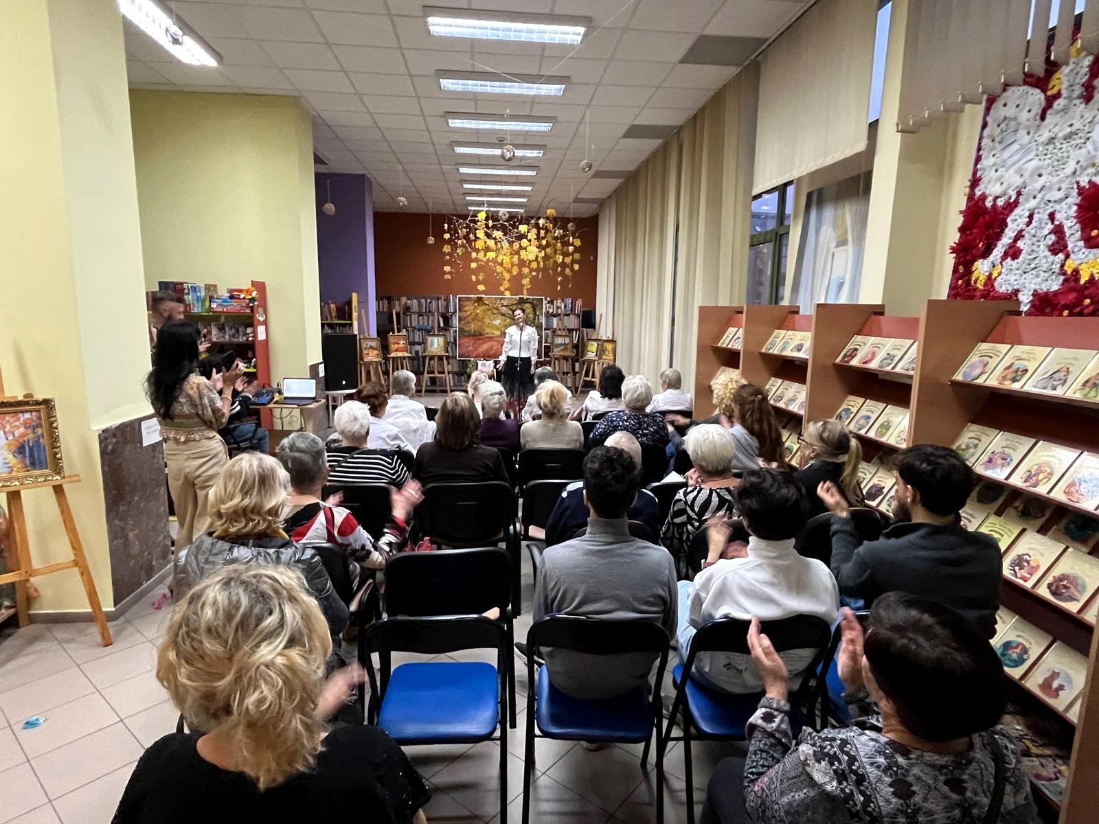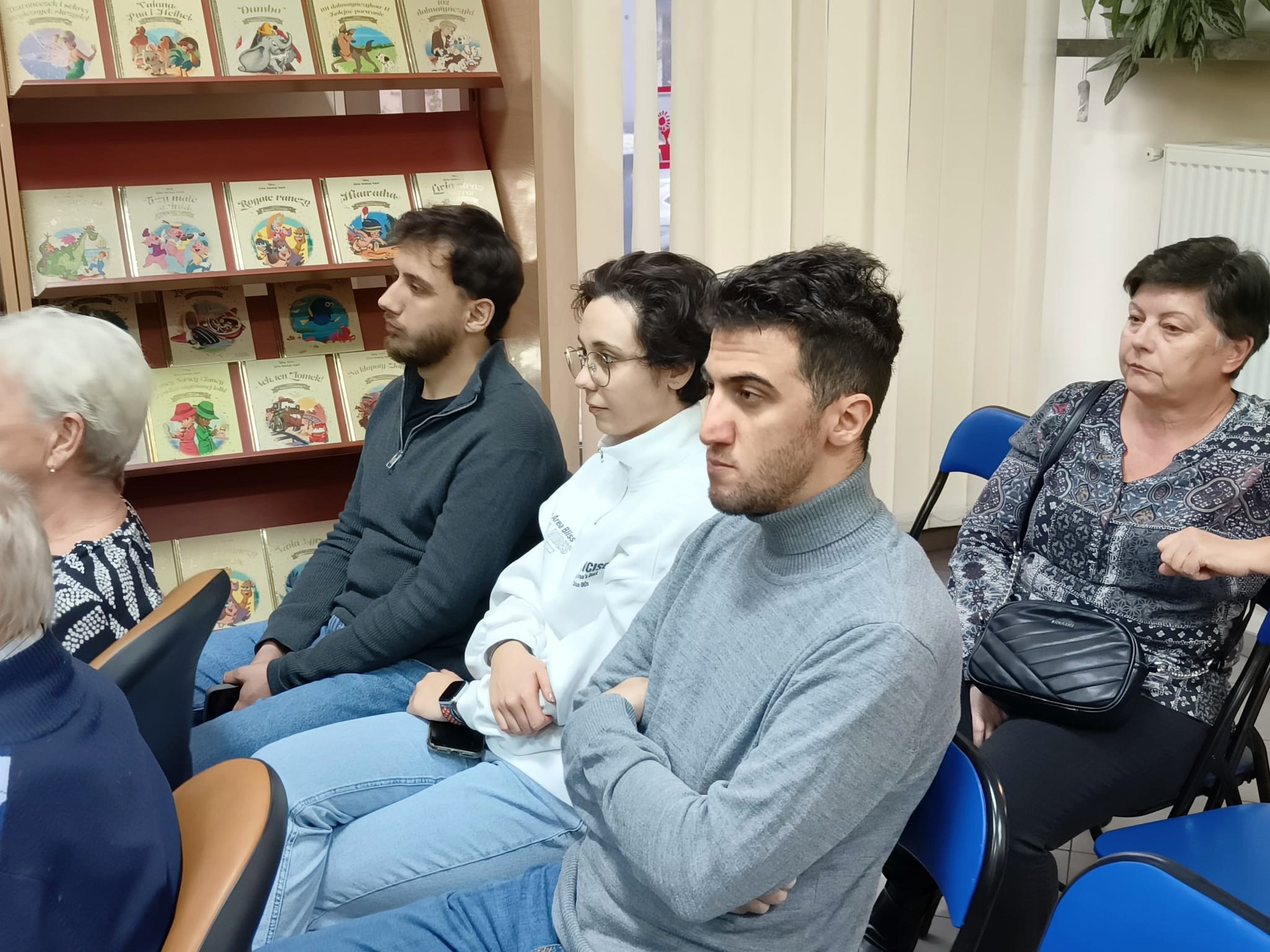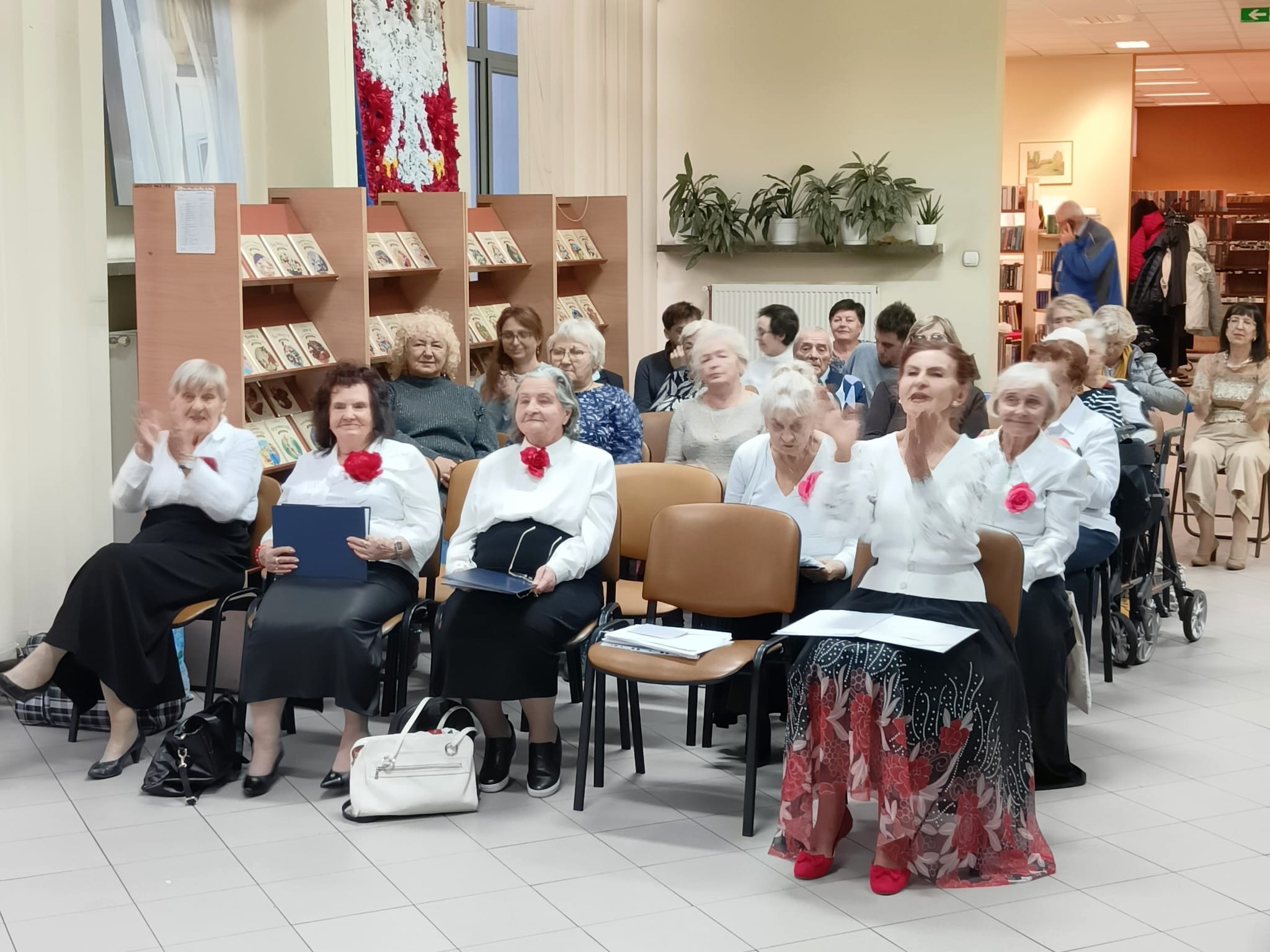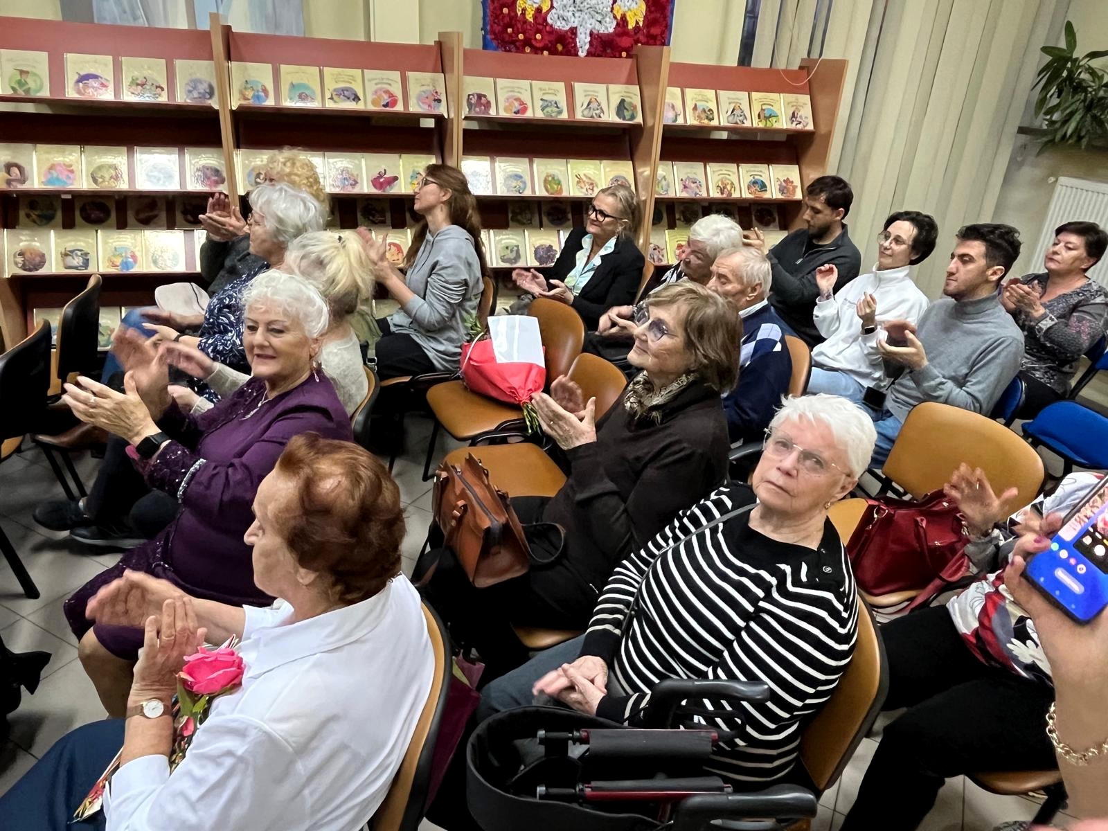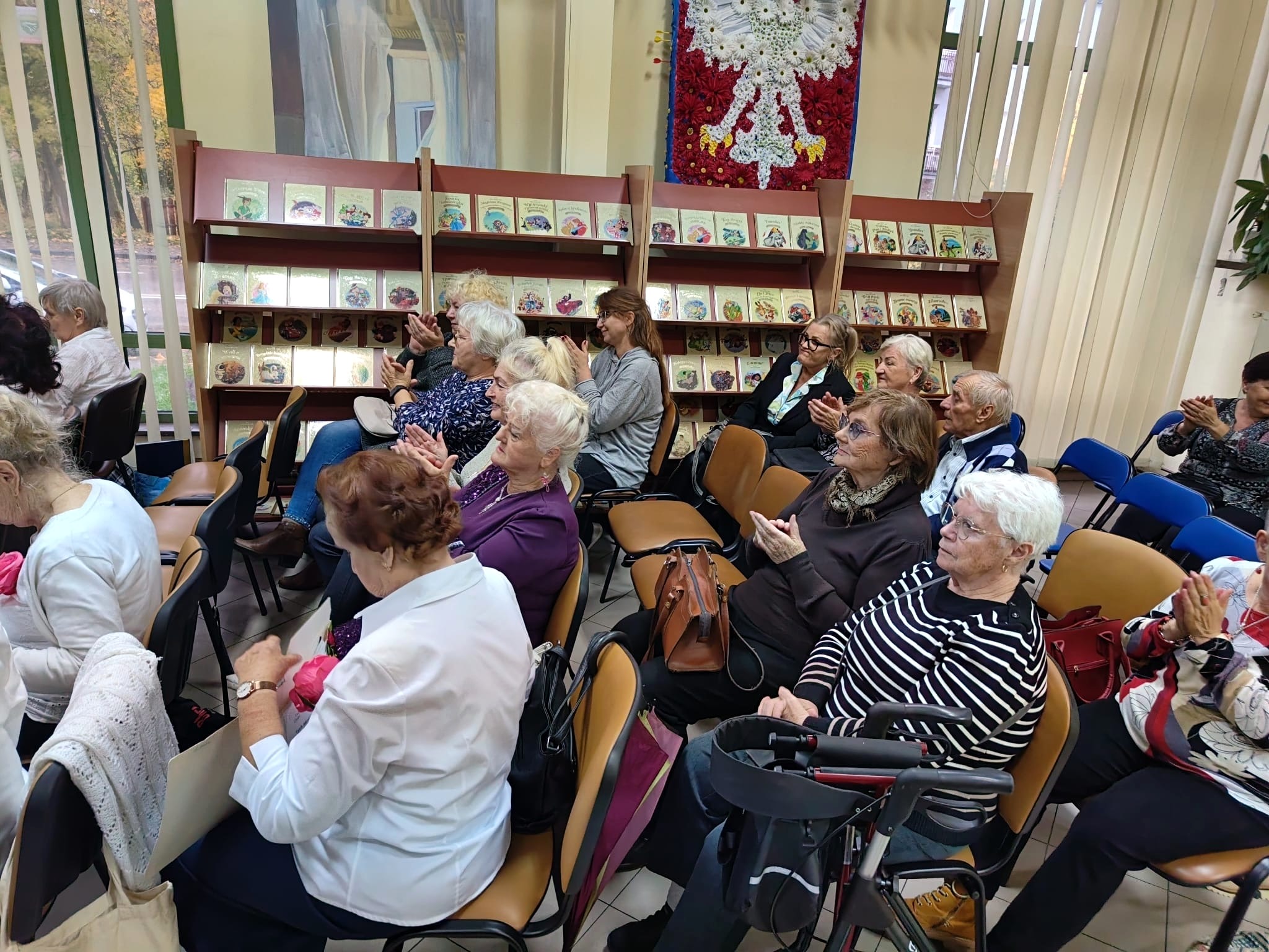 Po raz kolejny w Filii nr 9 mieliśmy przyjemność gościć panie z Klubu Seniora przy ul. Hożej w Kielcach podczas wieczoru muzyczno-poetyckiego. Mimo chłodu za oknem, biblioteczna sala rozbrzmiewała ciepłymi dźwiękami i słowami poezji. Publiczność składająca się z osób w różnym wieku i różnych narodowości, jak zwykle nie zawiodła. Przygotowany przez panie program bardzo przypadł widzom do gustu. Występ został nagrodzony gromkimi brawami. Nie zabrakło akcentu jubileuszowego, jedna z par obchodziła tego dnia 55. rocznicę ślubu, były więc kwiaty i życzenia.