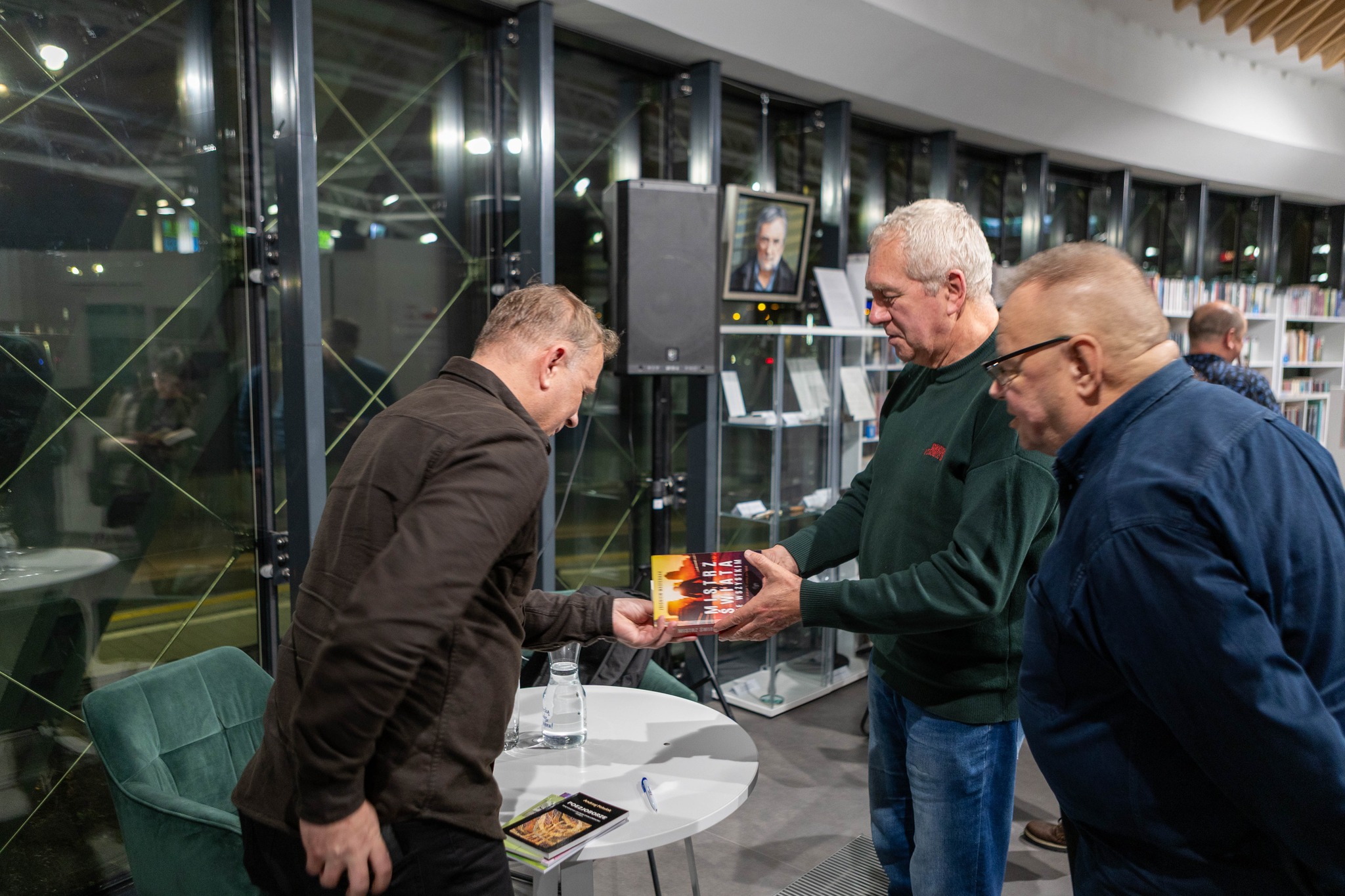 „Przez długi czas byłem wyrodnym synem Ziemi Świętokrzyskiej” – tak mówił o sobie nasz gość, który w listopadowe popołudnie odwiedził Poczytalnię na dVoRcu. Licznie zgromadzona publiczność miała okazję posłuchać ciekawych opowieści Zbigniewa Masternaka, prozaika, dziennikarza, scenarzysty, a co ciekawe, piłkarza utytułowanego w piłce błotnej, a także czynnego zawodnika w zwykłej piłce nożnej. Pisarz ma na koncie liczne wyróżnienia i nagrody, a jego powieści tłumaczone są na wiele języków.