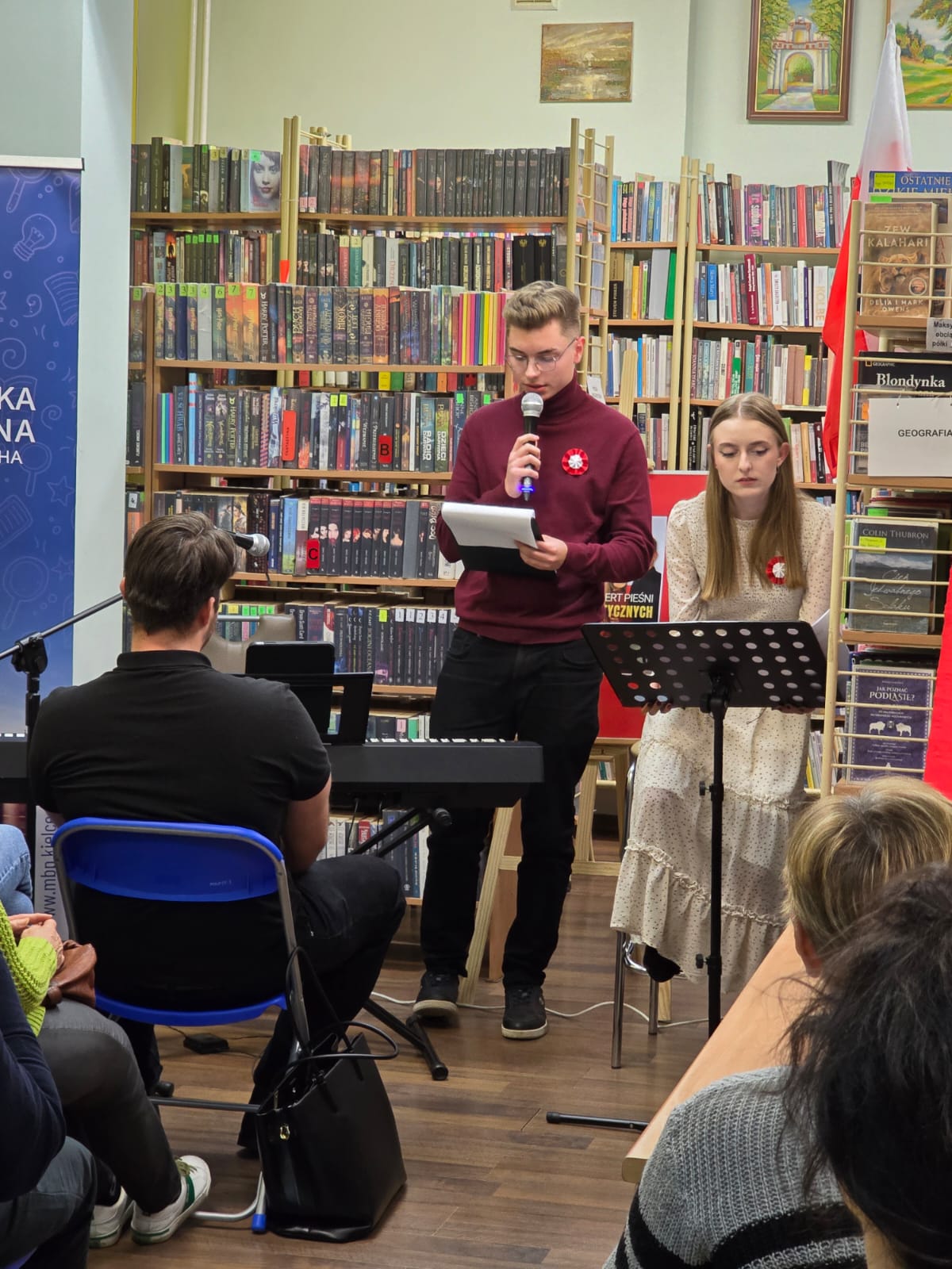 7 listopada 2025 roku w Filii nr 12 Miejskiej Biblioteki Publicznej w Kielcach im. Jerzego Pilcha odbył się wyjątkowy koncert pieśni patriotycznych w wykonaniu studentów Instytutu Muzyki Uniwersytetu Jana Kochanowskiego w Kielcach – Kingi Cedro (wokal) i Emila Figarskiego (pianino).
