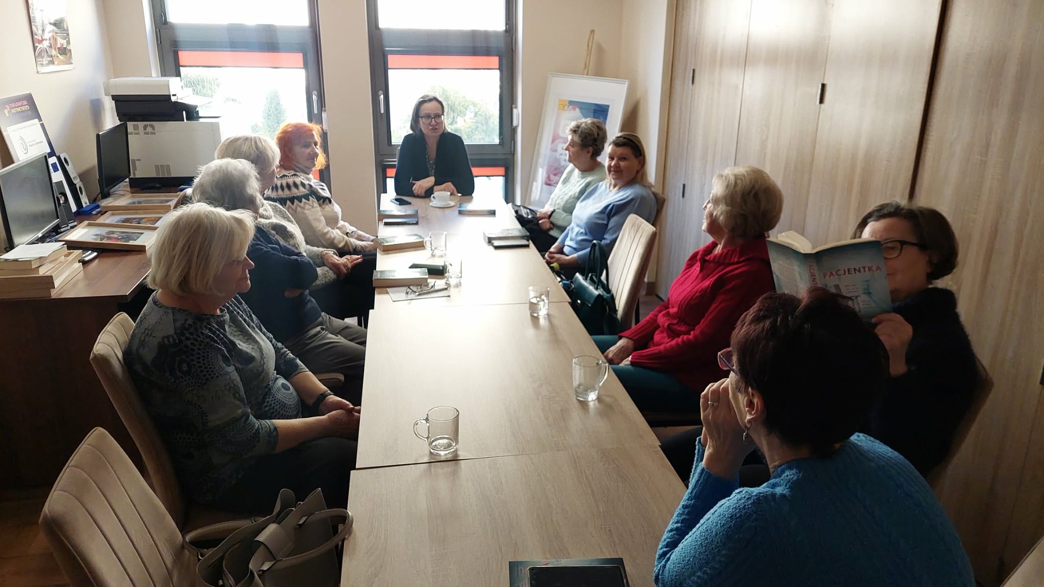 Na kolejnym spotkaniu DKK omawiałyśmy thriller psychologiczny Alexa Michaelidesa pt. "Pacjentka". Autor zafundował nam tym razem zagadkę, której zaskakujące rozwiązanie znalazłyśmy dopiero na ostatnich stronach książki. Historia zrodziła pytania typu: jak silne muszą być emocje, aby posunąć się do zbrodni? Czy trauma z dzieciństwa zmusza do wstąpienia na złą drogę? I przede wszystkim: dlaczego główna bohaterka milczy?? Dyskusja była gorąca. Szukałyśmy nawet analogii zachowania Alicii Berenson w prawdziwym życiu, pełnym przecież przemocy. Książka podobała się, choć nie wszystkie Panie deklarowały gotowość sięgania po tego typu literaturę, zwłaszcza przed snem.