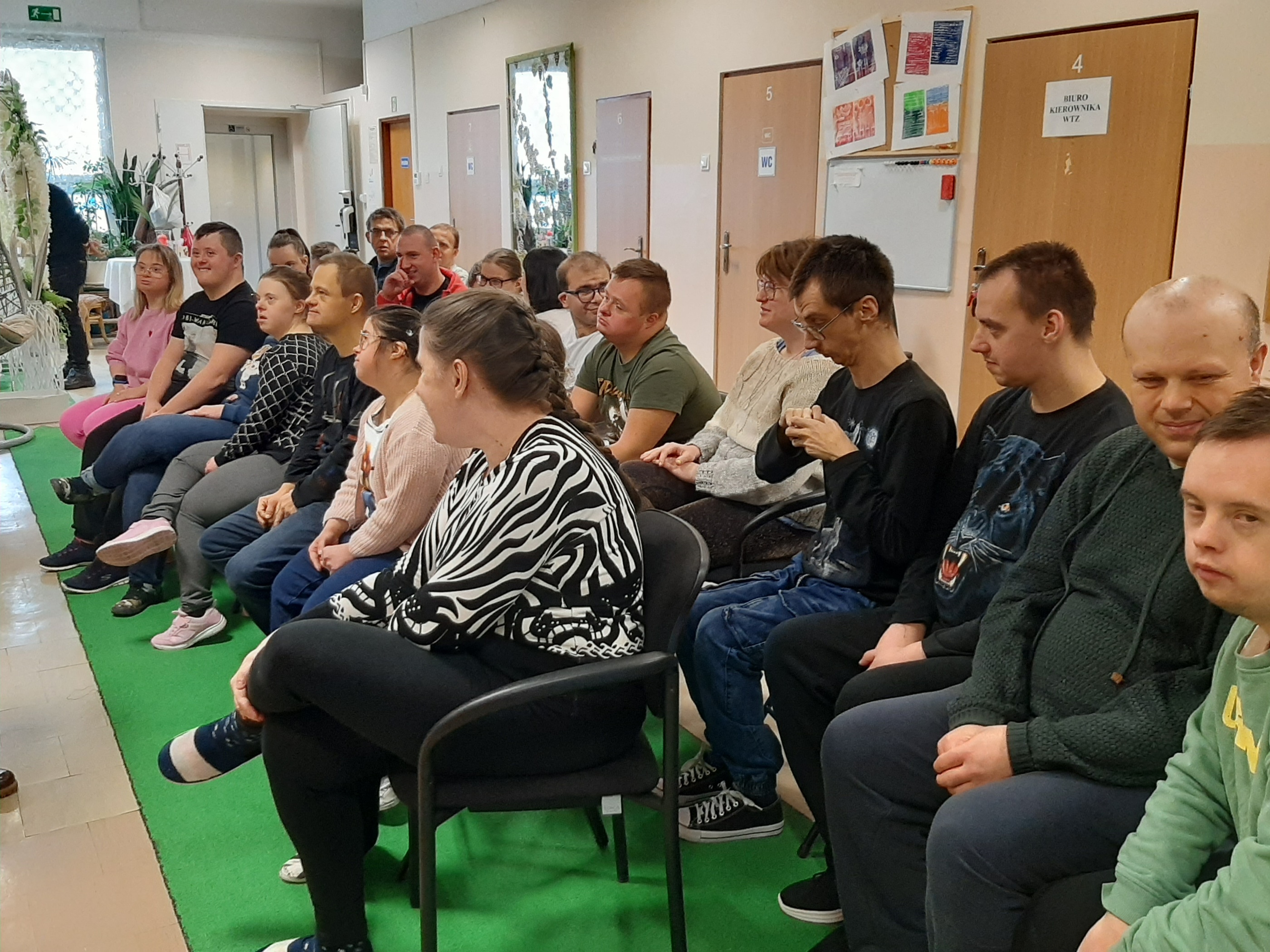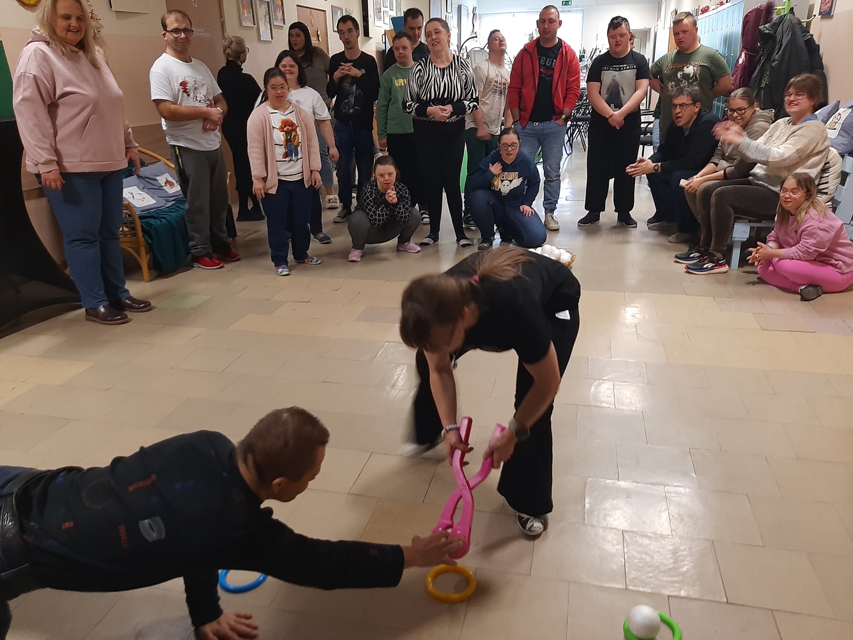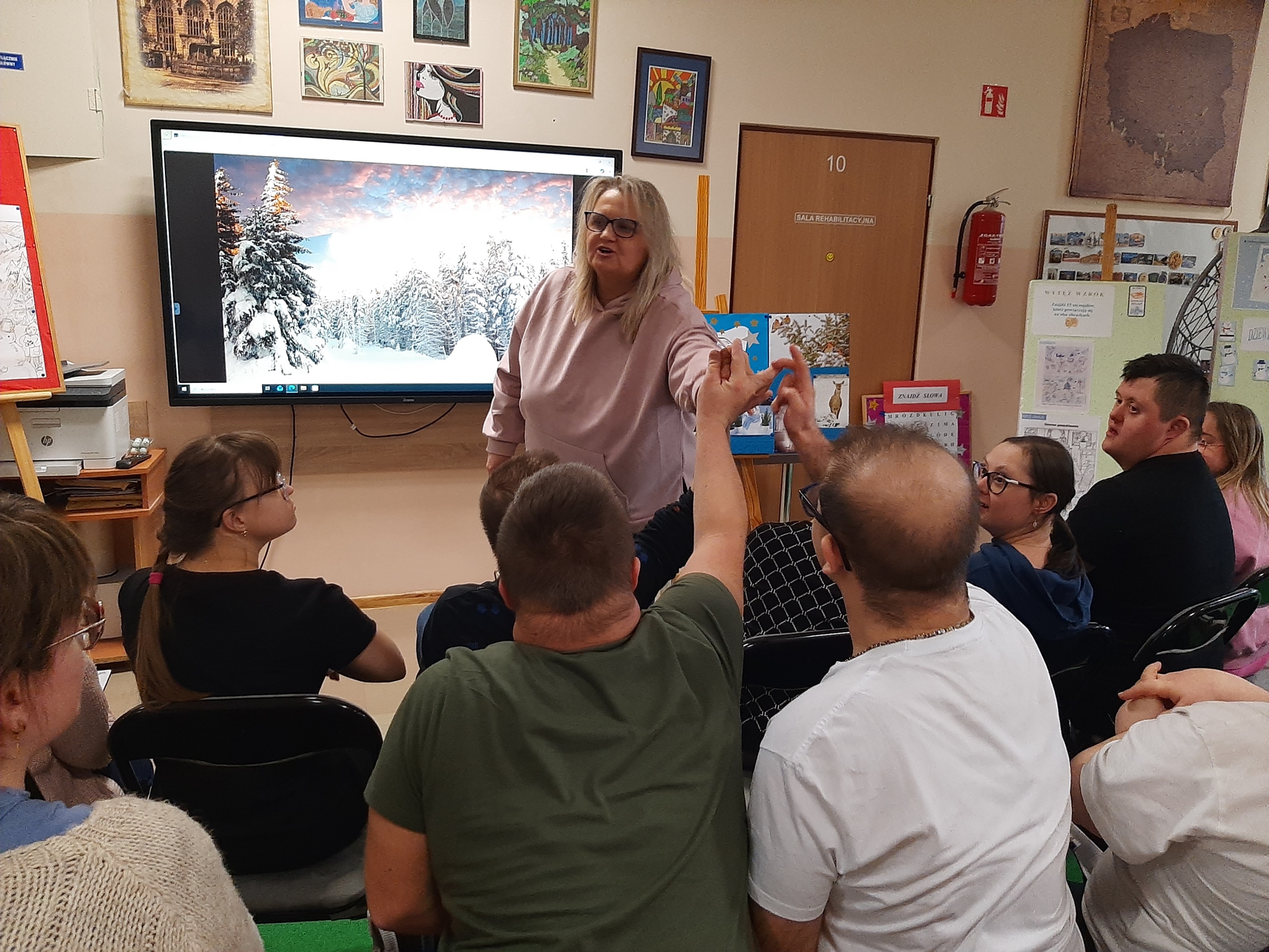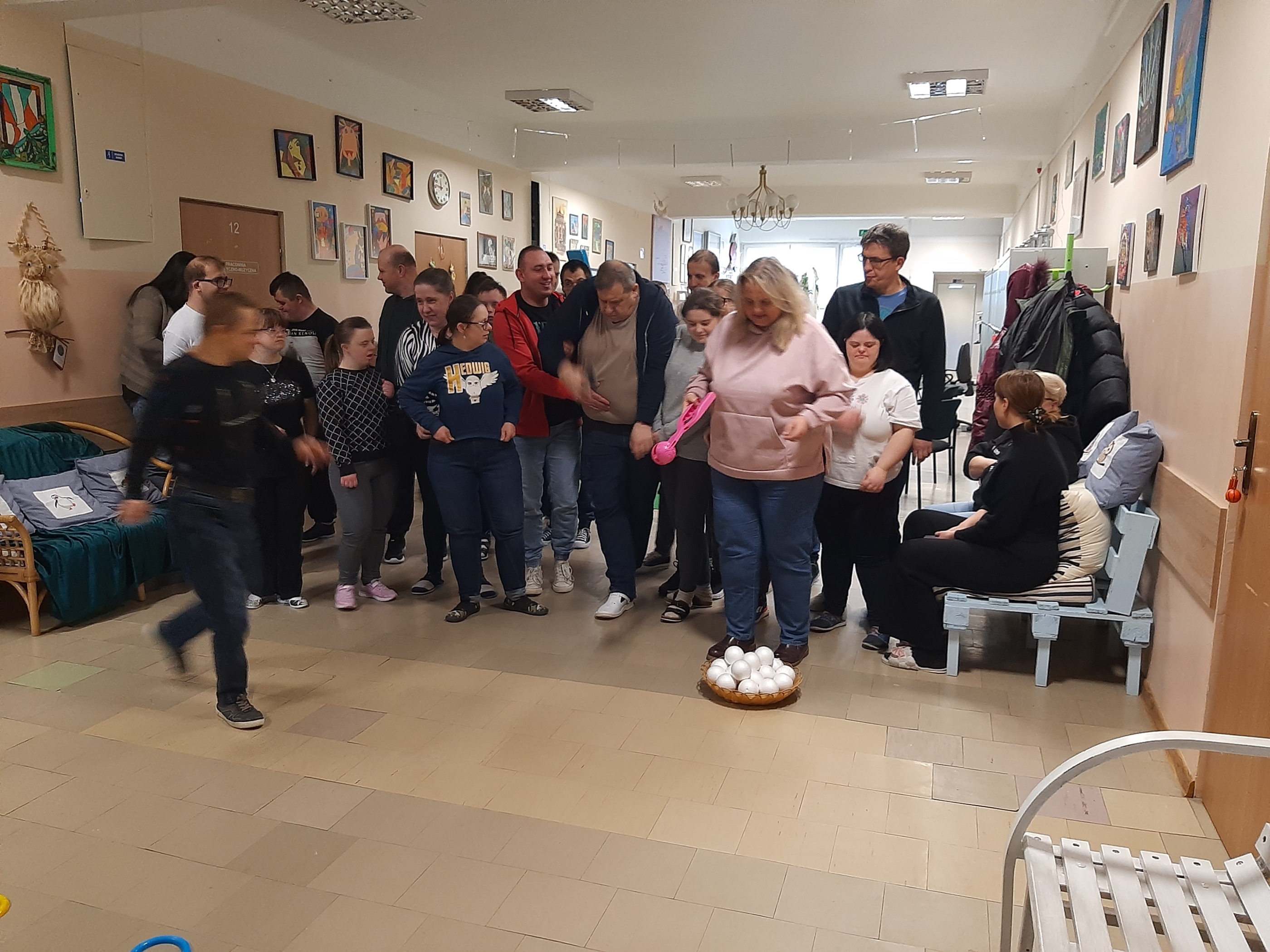 Wtorkowe spotkanie z młodzieżą z WTZ upłynęło na grach i zabawach, oczywiście tych w klimacie jeszcze zimowym. Każdy z uczestników chętnie i z wielkim zaangażowaniem brał udział w zaproponowanych konkurencjach. Były quizy, gra „Ja mam…, kto ma”, poszukiwania ukrytych symboli zimowych, ponadto wszyscy wytężali wzrok za zagubionymi cyframi, by wreszcie zweryfikować swoją zimową wiedzę w przygotowanym teście. Zaproponowana zabawa z kulami śnieżnymi spotkała się wielkim entuzjazmem. Każdy chciał się sprawdzić. Byli świetni!