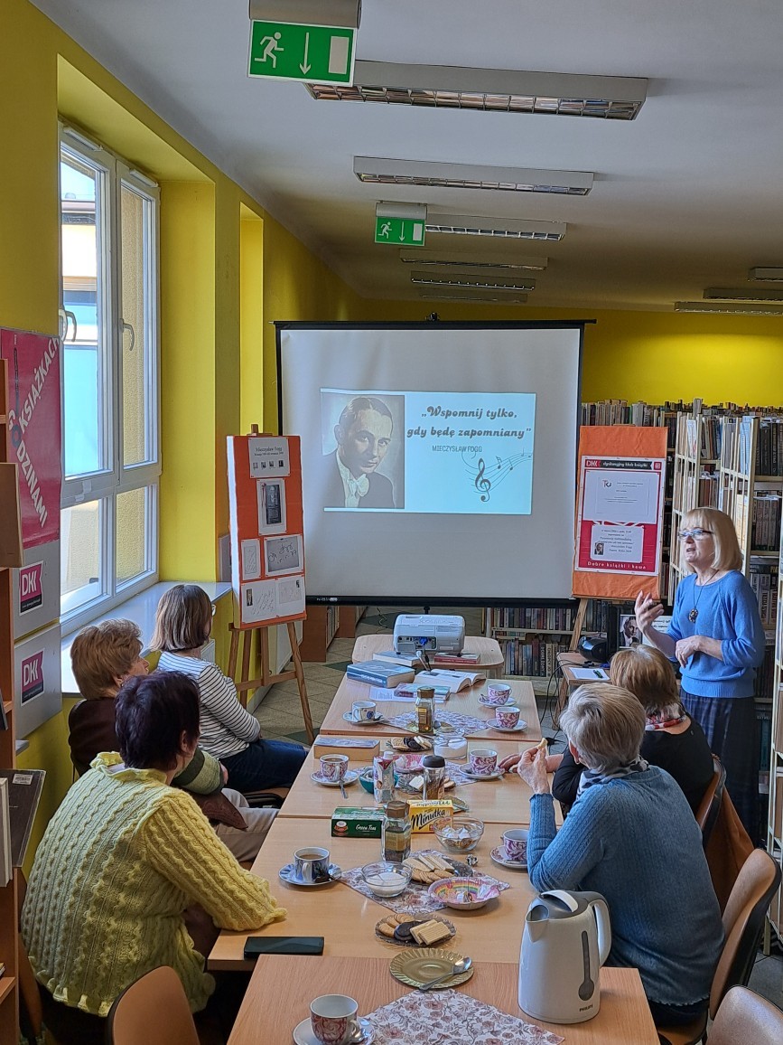 W kameralnym gronie uczciliśmy pamięć artysty. Uczestniczki spotkania obejrzały prezentację multimedialną „Wspomnij tylko, gdy będę zapomniany” uatrakcyjnioną anegdotami z życia śpiewaka, fragmentami jego wspomnień zawartych w autobiografii „Od palanta do belcanta”. Wydarzeniu towarzyszyła wystawka plastyczno-literacka, na którą złożyły się książki tematyczne oraz adapter i unikatowa płyta z utworami artysty z 1968 r. pt. „Oczarowanie”.