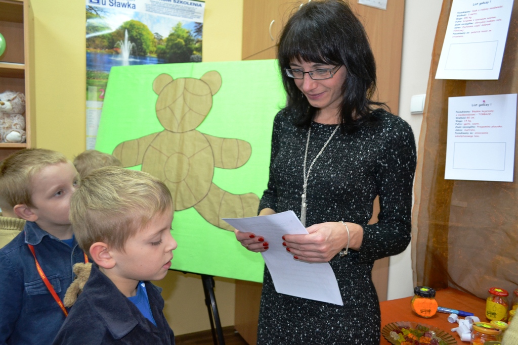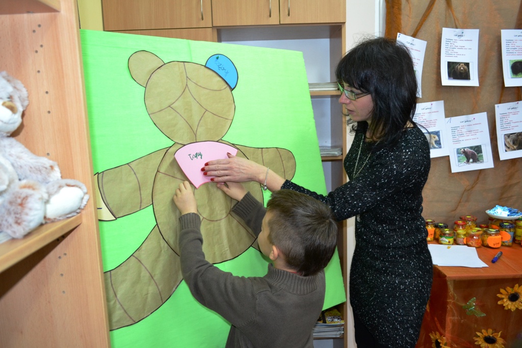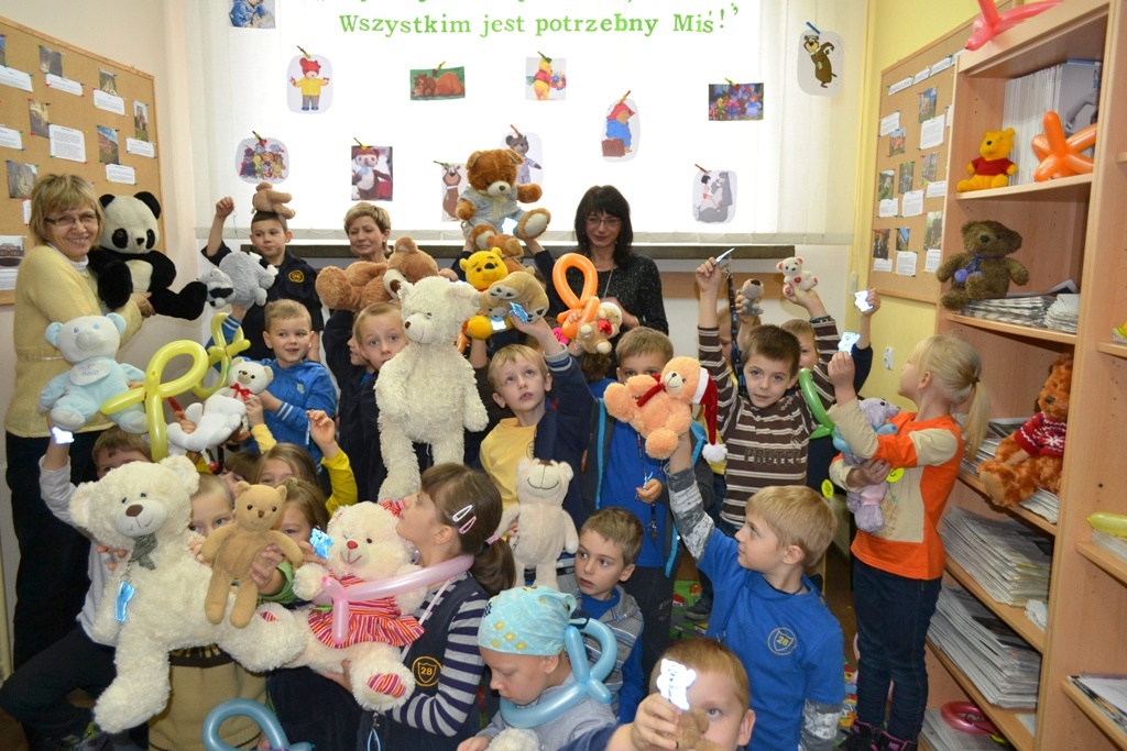 26.11 klasa I b SP 28 uczestniczyła w 110 rocznicy urodzin Pluszowego Misia. Z tej okazji przygotowano pełne niespodzianek zajęcia, podczas których dzieci poznały genezę pluszowego niedźwiadka, a następnie przystąpiły do zabaw. Na początek odbył się wyścig Gumisiów pędzących po "gumijagodowy" sok, a potem drużyny Misia Uszatka i Kubusia Puchatka pokonywały rój rozwścieczonych pszczół, aby dostać się do miodu i spożyć go bez pomocy rąk. W dalszej części na uczniów czekały „miodowe zagadki”. Rozwiązanie nagradzano żelkowymi misiami. Aby zapoznać się z prawdziwymi niedźwiedziami, pierwszaki musiały zabawić się w śledczych i uzupełnić podany w listach gończych rysopis portretami odpowiednich zwierząt. Na koniec każdy uczeń napisał pierwszą myśl, jaka kojarzy mu się z misiem na poszczególnych elementach puzzli. Po ich ułożeniu powstał kolorowy niedźwiadek. Spotkanie zakończyło się rozdaniem pamiątkowych breloczków w kształcie misia.
