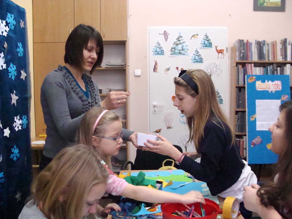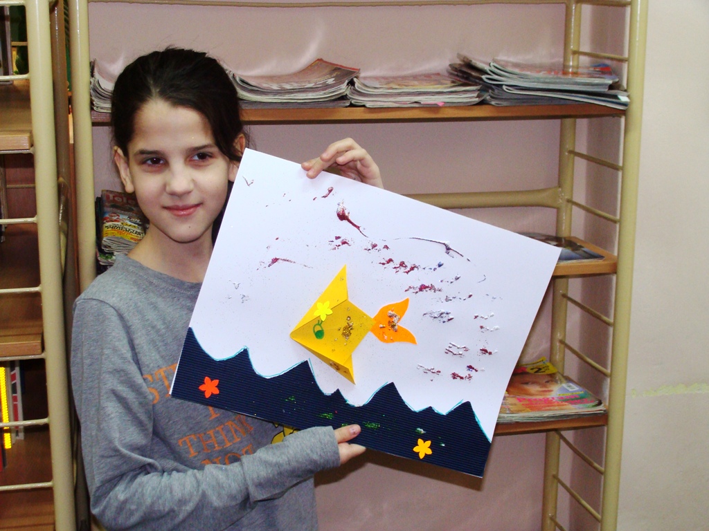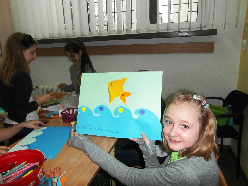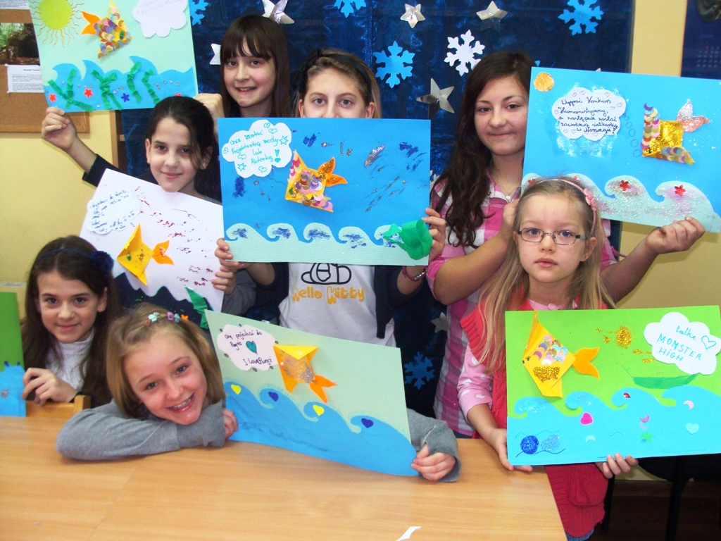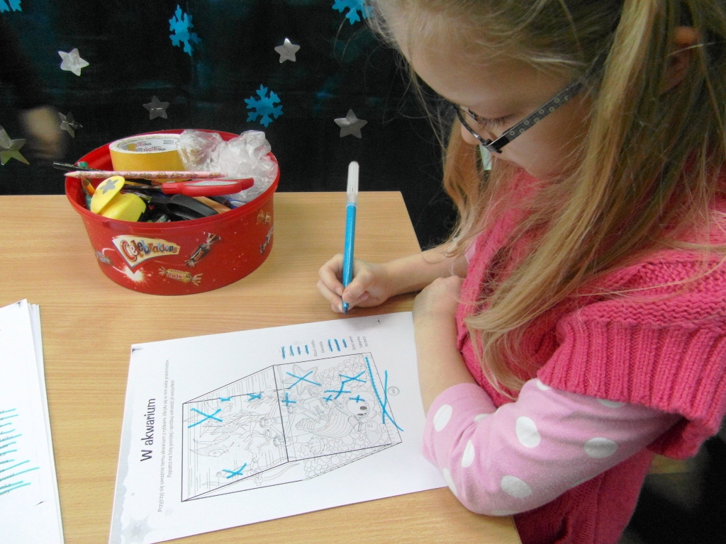 16 stycznia uczestnicy ferii w bibliotece wybrali się w morskie głębiny. Podczas plastycznej części spotkania powstał fantastyczny podwodny świat ze złotą rybką w roli głównej. Potem każdy powierzył jej swoje marzenia, które chciałby, aby się spełniły. Następnie wszyscy wybrali się na połów: wyciągnęli z „wody” kolorowe ryby z pytaniami dotyczącymi różnych bajek. Kolejną konkurencją było przenoszenie rybek za pomocą słomki na spodki, w jak najkrótszym czasie, a na zakończenie spotkania dzieciaki rozwiązywały wykreślanki i rebusy.