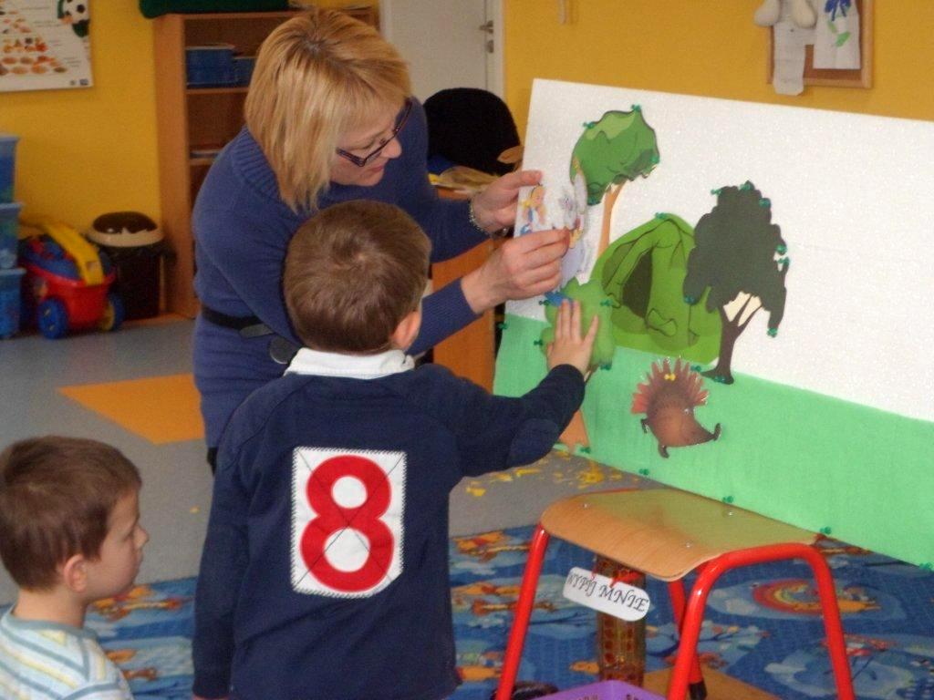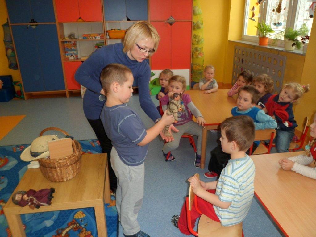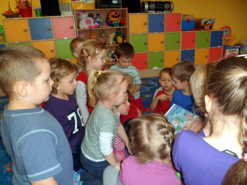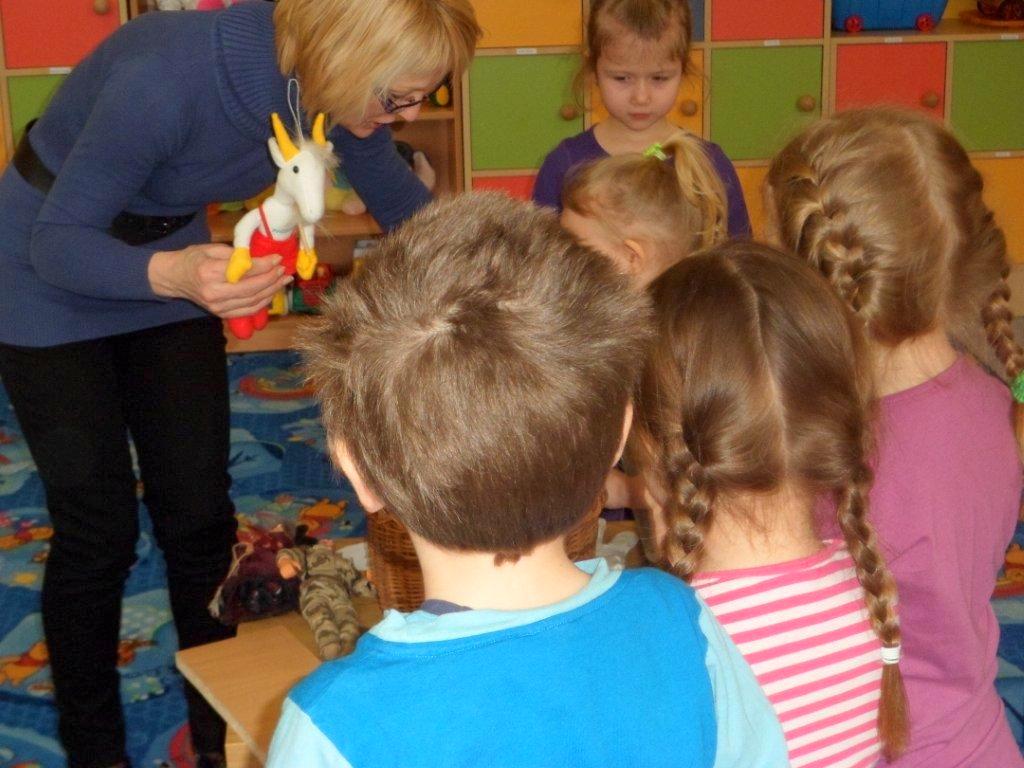 15 lutego spotkałyśmy się z grupą pięciolatków z filii Przedszkola Samorządowego nr 2. Dzieci opowiadały o swoich ulubionych baśniach, a z przedstawianych obrazków odgadywały bajkowych bohaterów. Potem, po wysłuchaniu przygód „Alicji w krainie czarów”, z prezentowanych ilustracji musiały ułożyć historyjkę obrazkową. Okazało się, że bardzo uważnie słuchały opowieści, toteż szybko uporały się z tym zadaniem. Kolejną zabawą było wybranie z koszyczka rekwizytu i odgadnięcie, z jakiej bajki on pochodzi. I to również nie sprawiło im trudności. Następnie przystąpiły do przygotowania planszy z bohaterami występującymi w „Alicji w krainie czarów”. Przedszkolaki zadowolone ze spotkania ruszyły w tan, a na pożegnanie odśpiewały piosenką o bardzo zagadkowym tytule „Rabada”.