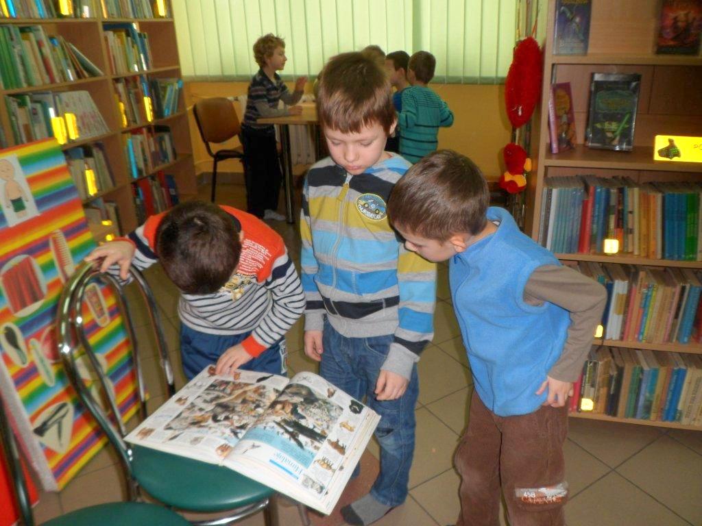 28 lutego, dobrze nam znana grupa VIII z Przedszkola Samorządowego nr 5, odwiedziła nas, aby wziąć udział w akcji „Cała Polska czyta dzieciom”. Dzieci wysłuchały książeczki „O księciu Oliwierze, który nie chciał się myć”. Pouczająca bajeczka posłużyła nam jako pretekst do rozmowy o nawykach higienicznych. Dzieci obiecały, że będą zachowywać się inaczej niż tytułowy bohater książki i zadbają o to, by nikt nie stronił od nich z powodu ich niechlujnego wyglądu. Żeby przybliżyć im tematykę czystości, wykonaliśmy ćwiczenie, w którym zadaniem było wybranie przyborów służących do mycia ciała, sprzątania domu i utrzymaniu w czystości ubrań. Gdy główna część zajęć dobiegła końca, dzieci zademonstrowały nam, że w wieku 6 lat potrafią już same czytać i z zapałem zaczęły wertować książki.