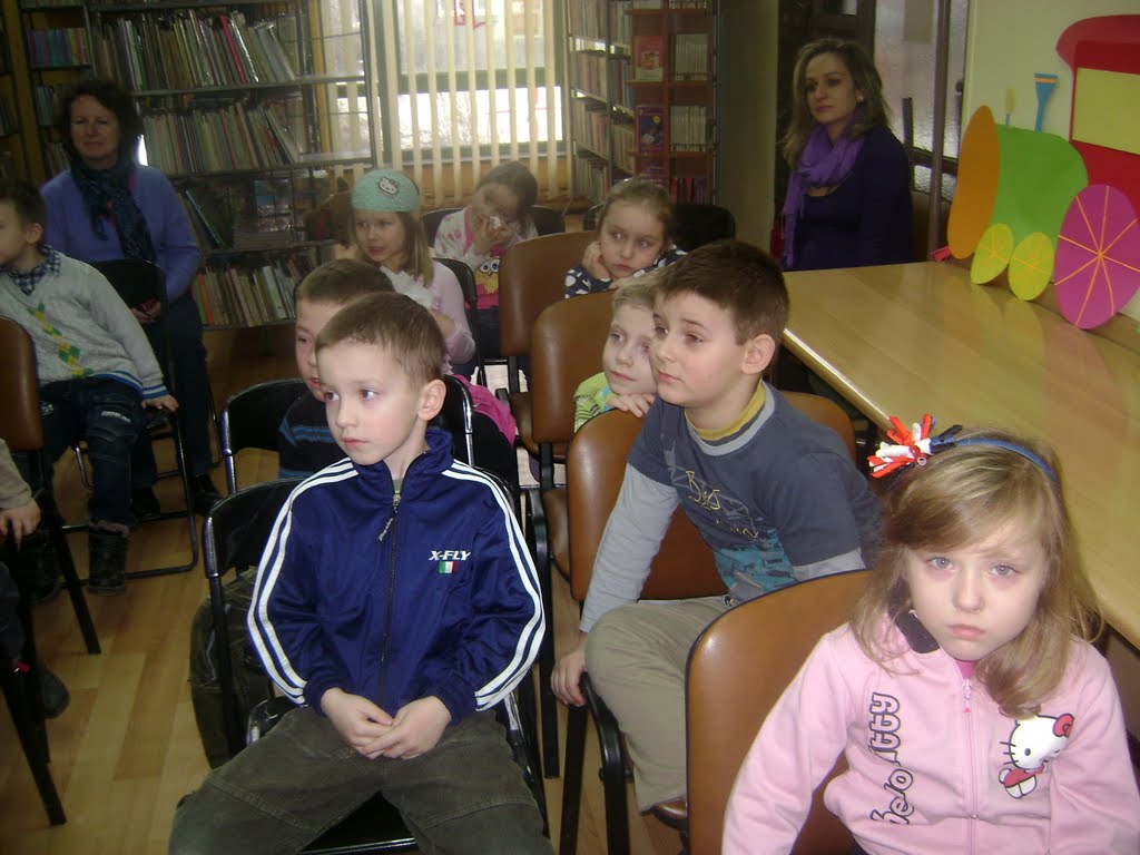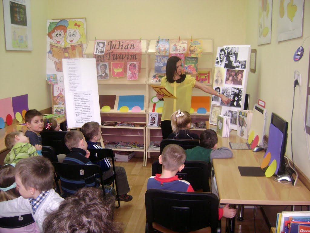 Kontynuując XXI Tydzień Kultury Języka, 7 marca Filię nr 9 odwiedziła grupa zerówkowiczów ze Szkoły Podstawowej nr 12. To już nasze trzecie spotkanie, podczas którego wprowadziliśmy młodych czytelników w świat wesoły, kolorowy i przyjazny, jakim jest poezja Juliana Tuwima. Bajkowe wiersze poety młodzi odbiorcy doskonale znają, stąd też przygotowane zadania nie sprawiały im żadnych trudności, wręcz przeciwnie dzieci doskonale się bawiły. Największym powodzeniem cieszyła się zabawa w mini teatrzyk - „spektakl” do utworu Lokomotywa. Pociąg Fantazja relacji Wierszykowo-Tuwimowo ruszył ze „stacji kolejowej” do dziewiątki. Małych „podróżnych” zapraszamy do czytania poezji pełnej dowcipu i humoru.