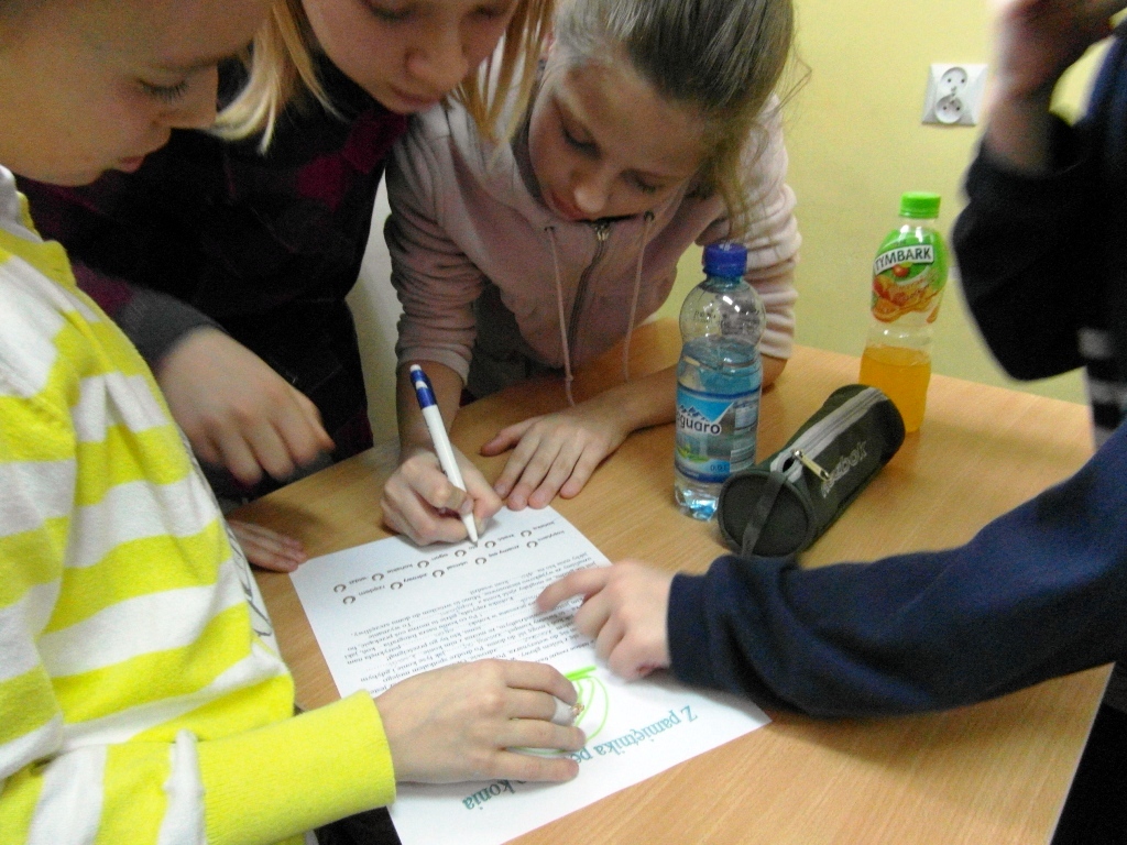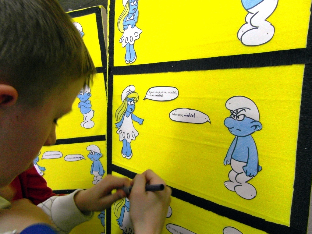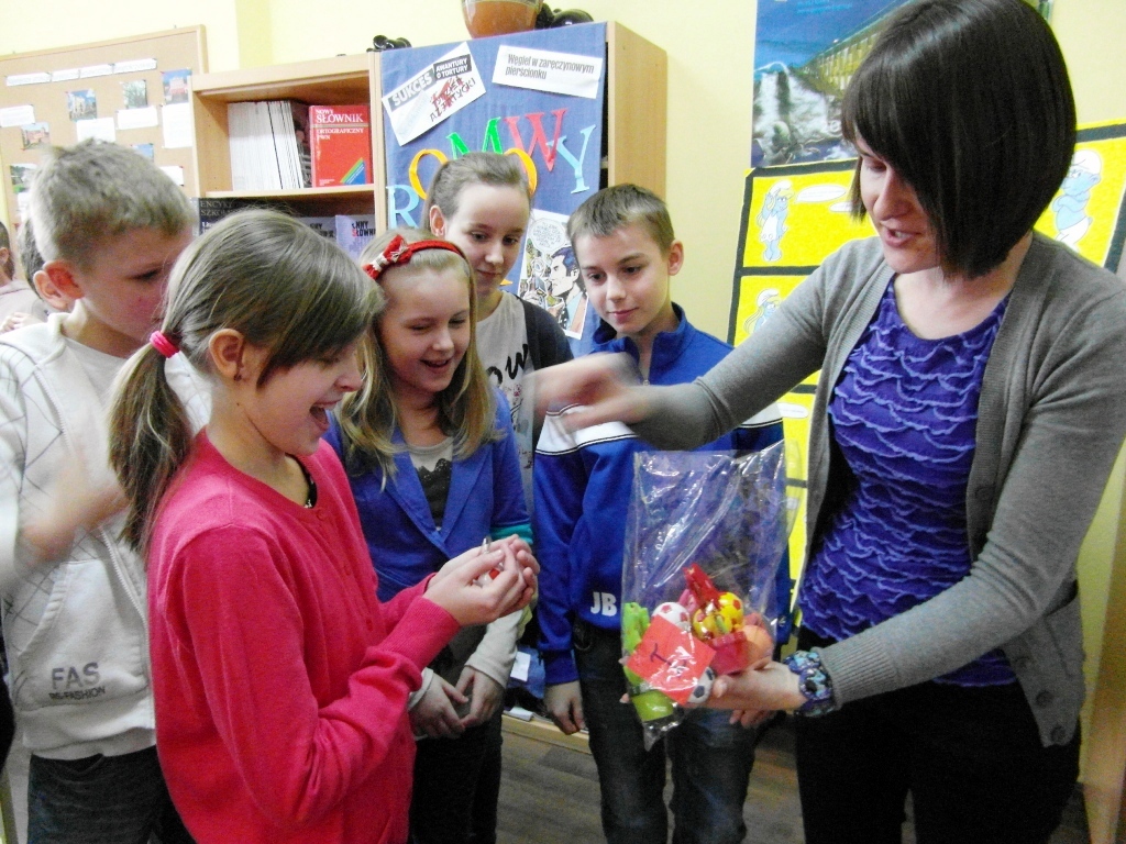 07.03.2013 w ramach Tygodnia Kultury Języka odbyły się zajęcia dla klasy IV SP w Nowinach. Uczniowie z zapałem przystąpili do potyczek z językiem polskim. W pierwszej konkurencji rzut piłeczką do tarczy decydował o ilości punktów i trudności wylosowanego pytania, drugie zadanie polegało na wpisaniu wyrazów w odpowiedniej formie do dialogu Smerfetki z Marudą. Trochę problemów sprawił wszystkim przepis na ciasto pełen różnych błędów językowych. Następnie każda drużyna otrzymała kartkę z „pamiętnika pewnego konia”, gdzie należało uzupełnić związki frazeologiczne z wyrazem „koń”. To zadanie okazało się wyjątkowo łatwe - aż 3 drużyny dostały maksymalną ilość punktów. Wreszcie nastąpiła najprzyjemniejsza część spotkania - odczytanie wyników i rozdanie nagród.