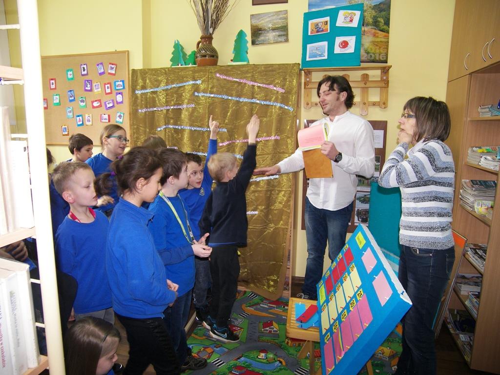 XXIV Tydzień Kultury Języka upływa pod hasłem „Szkoła otwarta na kulturę i czytelnictwo”. 8 marca do naszej biblioteki zaprosiliśmy dzieci ze SP nr 28, z którymi wspólnie zastanawialiśmy się nad korzyściami płynącymi z czytania książek. Dowiedzieliśmy się, że czytanie np. rozwija wyobraźnię, poprawia pamięć, uczy kreatywnego myślenia a także między innymi wzbogaca zasób słów i uczy poprawności oraz gramatyki. W specjalnie przygotowanych konkurencjach sprawdziliśmy, jak to jest w rzeczywistości. Uczniowie rozszyfrowywali ukryte tytuły, zmierzyli się z zabawą w skojarzenia, a także z „wyścigiem ortograficznym” Ze wszystkimi zadaniami poradzili sobie świetnie, za co nagrodziliśmy ich drobnymi upominkami.
