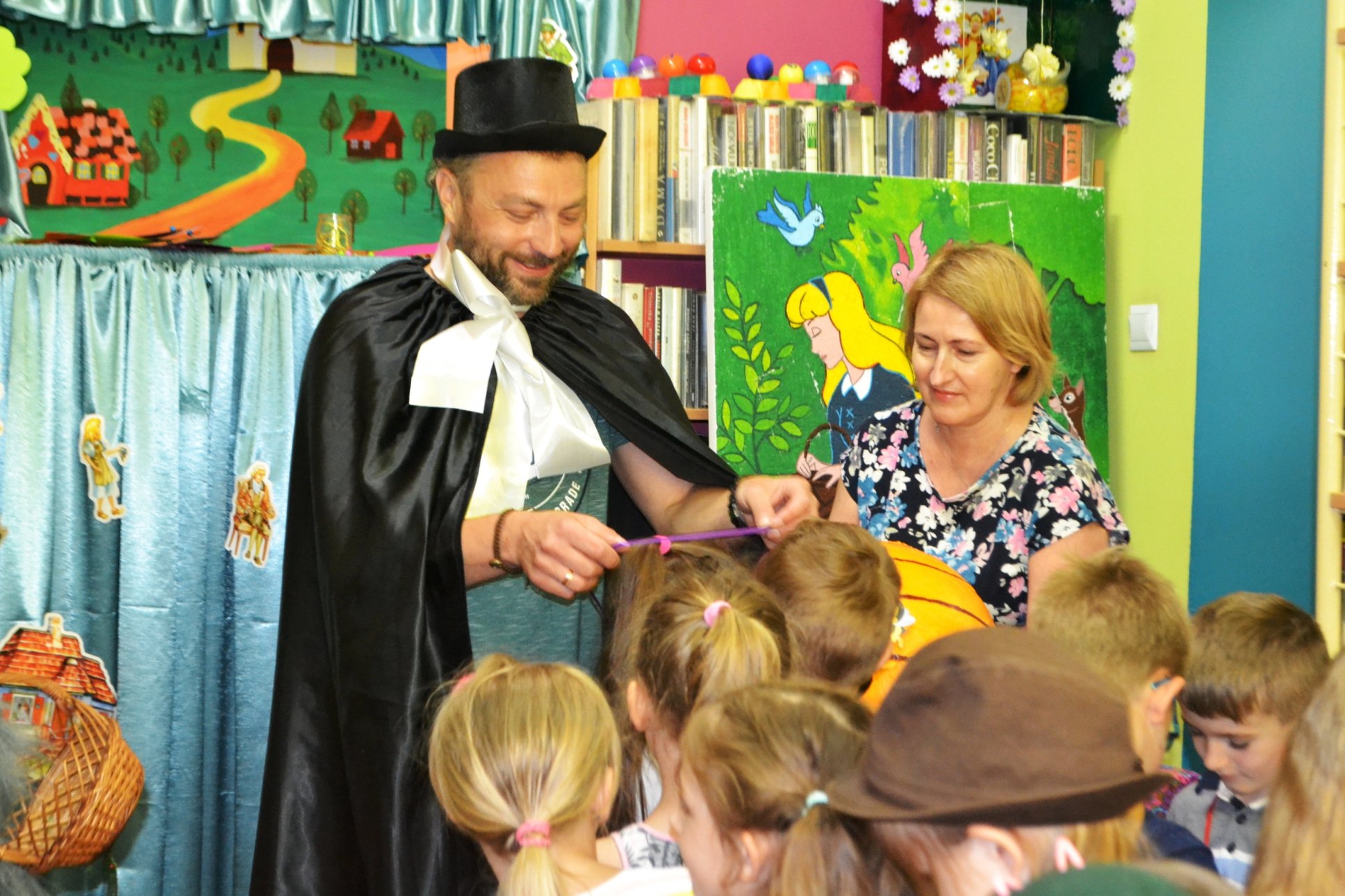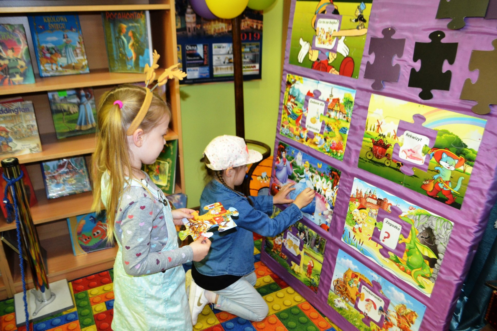 28.05.2019 r. w Filii nr 12 gościliśmy grupę VIII z PS nr 34, która przyjechała do nas specjalnie z osiedla Ślichowice. Mali goście zapoznali się z naszą placówką i udali się w baśniową podróż do krainy Jasia i Małgosi, Czerwonego Kapturka, Królowej Śniegu oraz wielu, wielu innych postaci. Na początku obejrzeli krótki teatrzyk, w którym znane bajki nieco się poplątały, następnie rozpoczęliśmy konkurencję, w której punktem wyjścia były baśniowe puzzle. Dopasowując elementy układanki to danego obrazka dzieciaki jednocześnie otrzymywały odpowiednie dla każdego z nich zadanie lub zagadkę. Dzięki temu niektórzy mogli przeobrazić się w znanych bohaterów z książek i filmów, jak np. kot w butach, rybak, wilk, czarownica czy Alladyn. Na zakończenie każdy uczestnik zabawy otrzymał medal znawcy bajek oraz słodką niespodziankę.