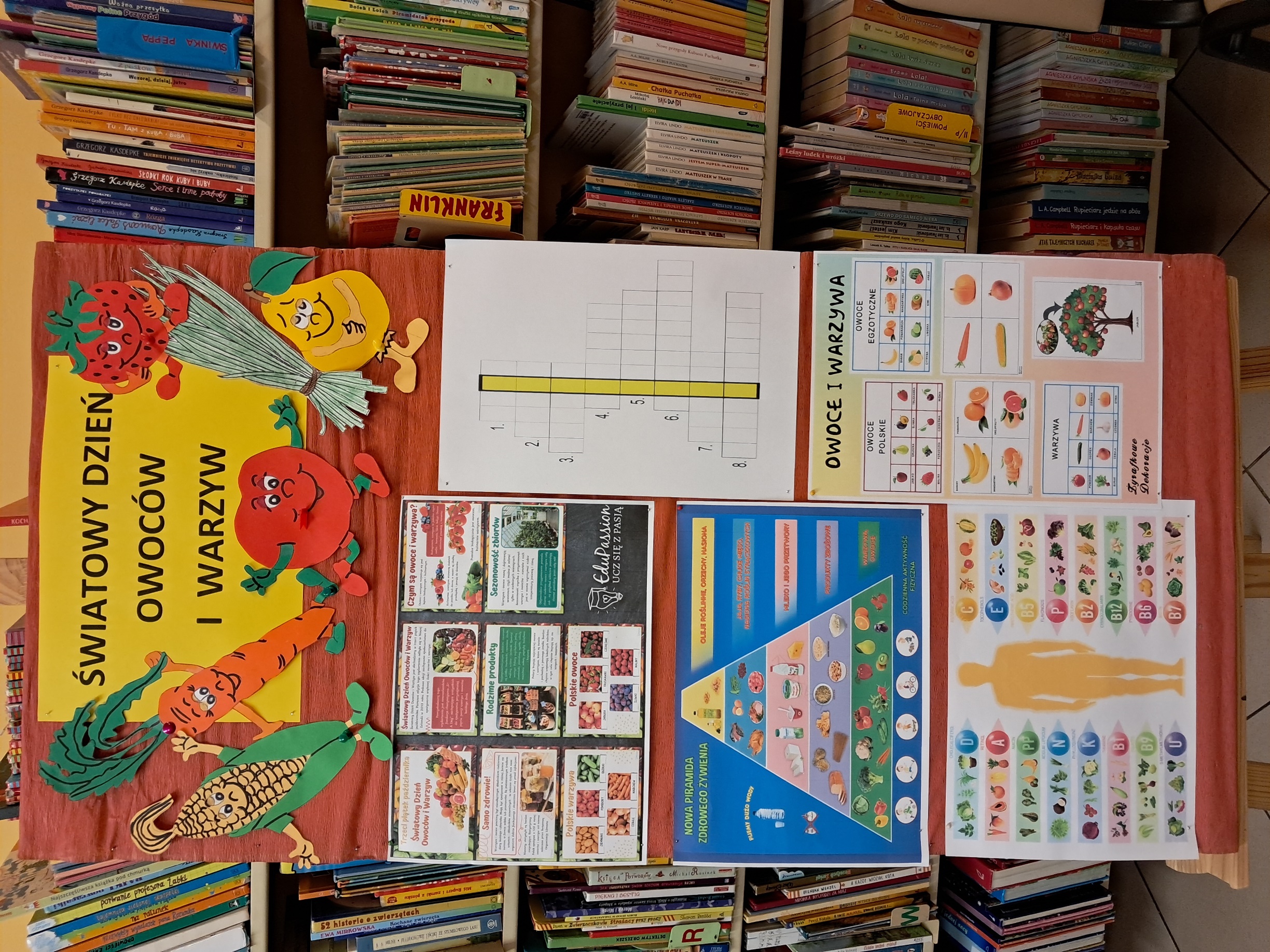 W Filii nr 13 wspólnie z dziećmi z grupy ,,0’’ SP nr 34 obchodziliśmy Światowy Dzień Owoców i Warzyw. Na wstępie spotkania zostały zaprezentowane wiersze J. Brzechwy: ,,Arbuz’’ i „Na straganie’’. W toku zajęć rozmawialiśmy o tym jak rosną i czym się różnią warzywa od owoców. Były zagadki i witaminowa krzyżówka, a na zakończenie prace plastyczne w postaci kolorowych warzyw wykonanych z papierowych rolek.