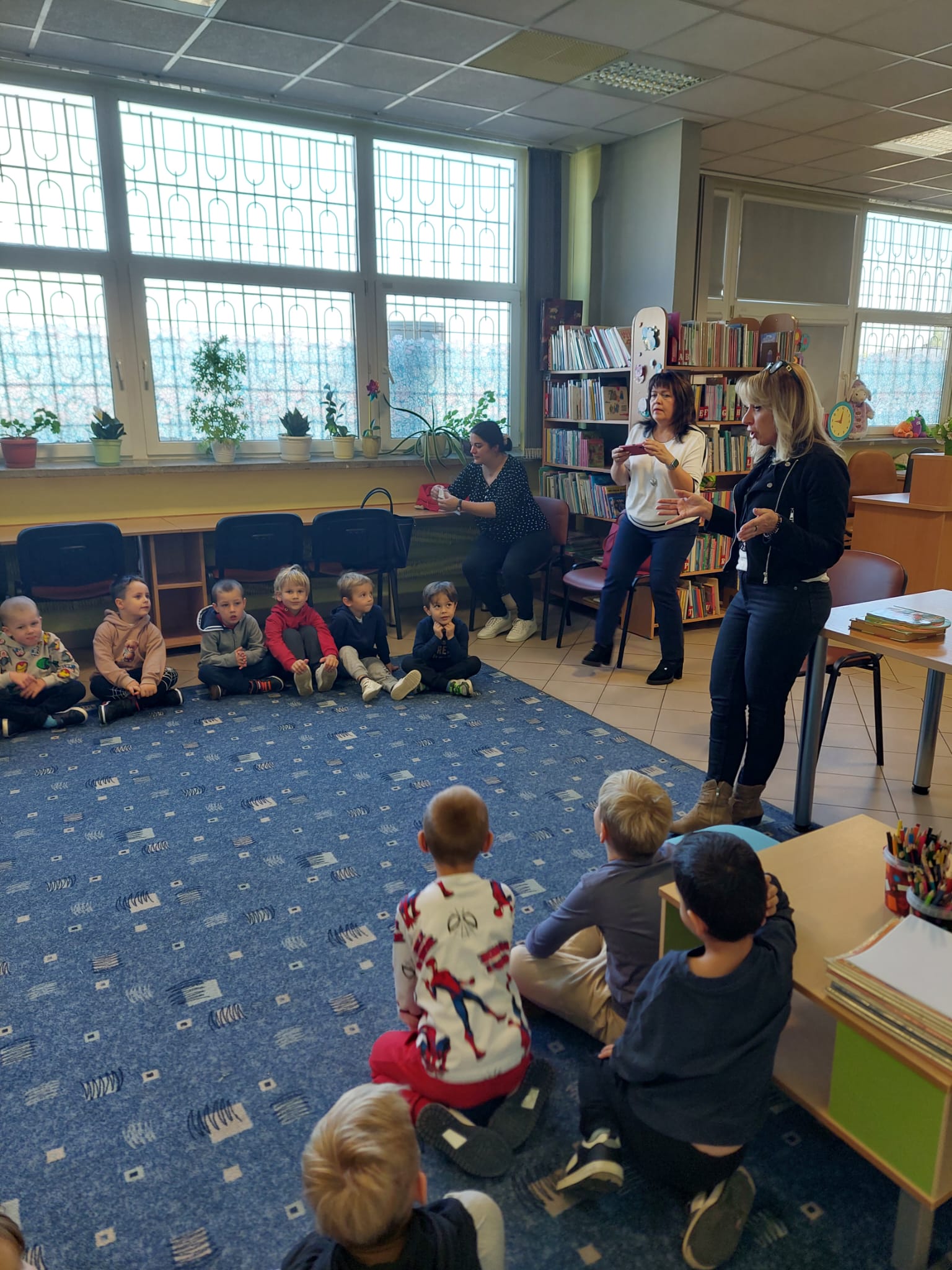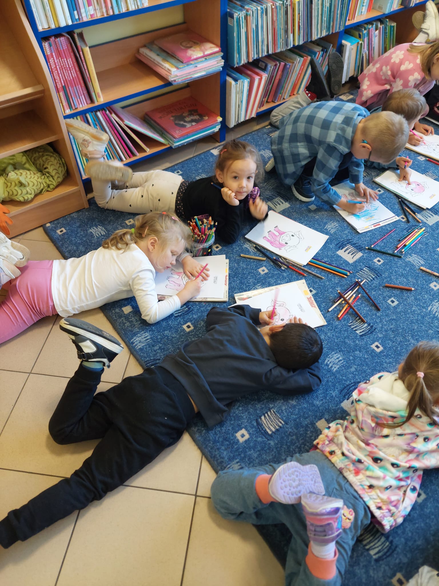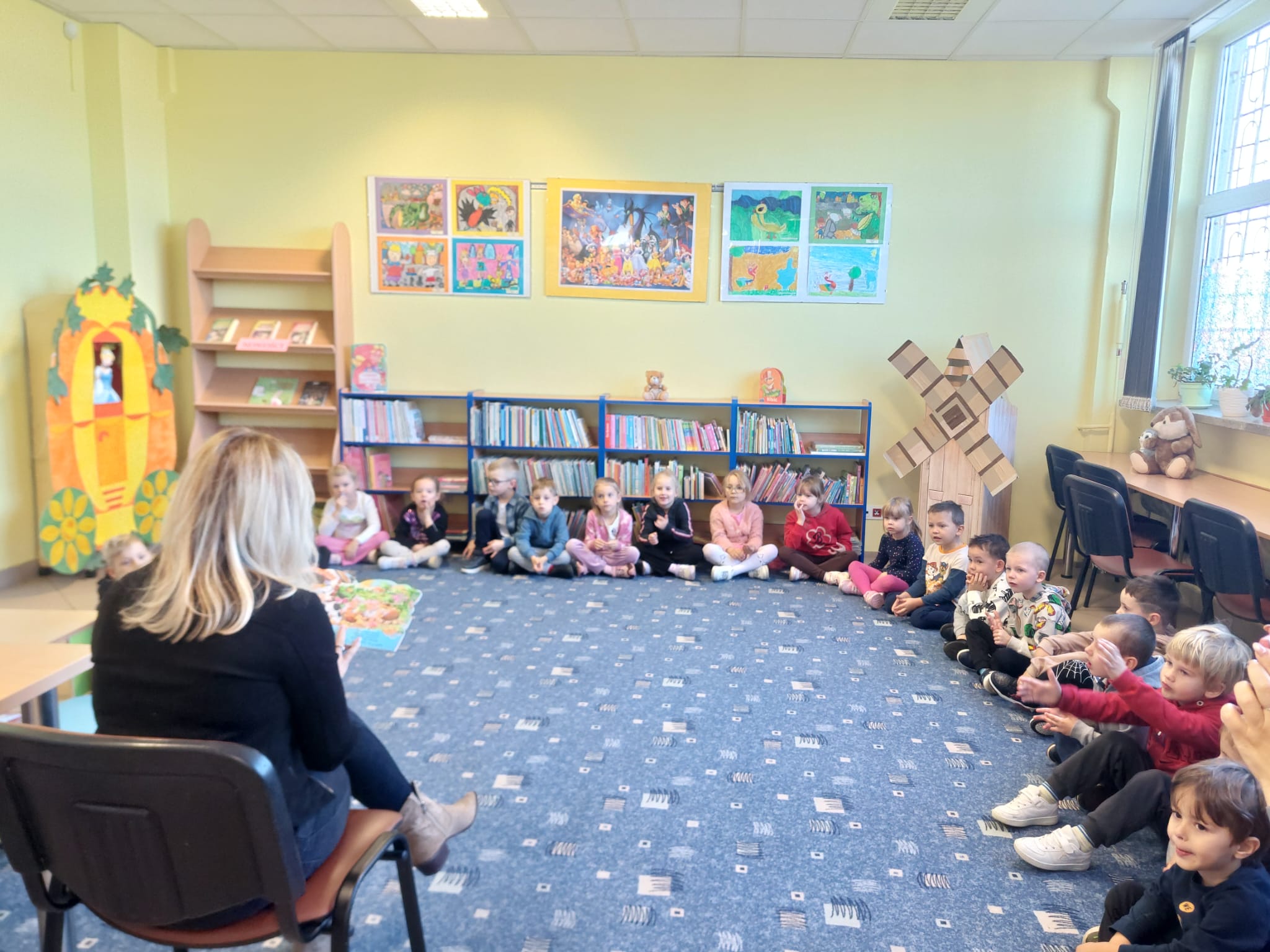 2 października 2025 r. Filię nr 5 odwiedziły przedszkolaki z PS nr 35 w Kielcach. Grupa Różyczek zwiedziła całą bibliotekę i wysłuchała opowieści o „Krówce ślicznotce” i ,,Modnej śwince”, która koniecznie chciała uczestniczyć w pokazie mody dla zwierząt. Okazało się, że dzieci bardzo dobrze odróżniają zwierzęta hodowlane od domowych. Na koniec przedszkolaki dostały zadanie do wykonania, a mianowicie musiały pokolorować i wystroić świnkę, żeby ta mogła wyjść na wymarzony wybieg. Wszystkie prosiaczki były tak śliczne, że mogły wziąć udział w pokazie mody. Na drogę powrotną Różyczki dostały słodką niespodziankę.