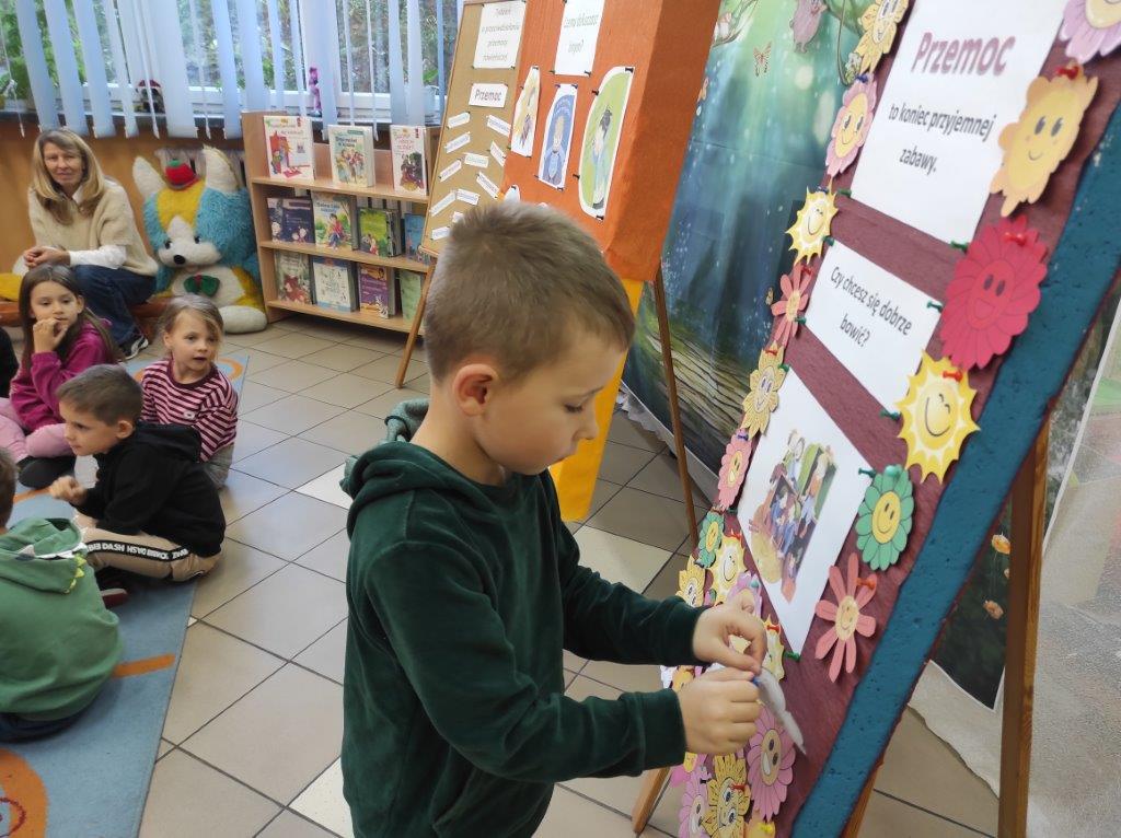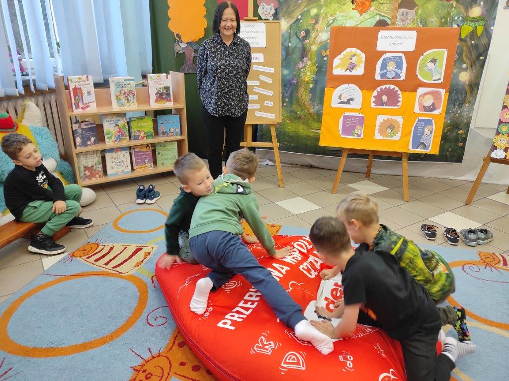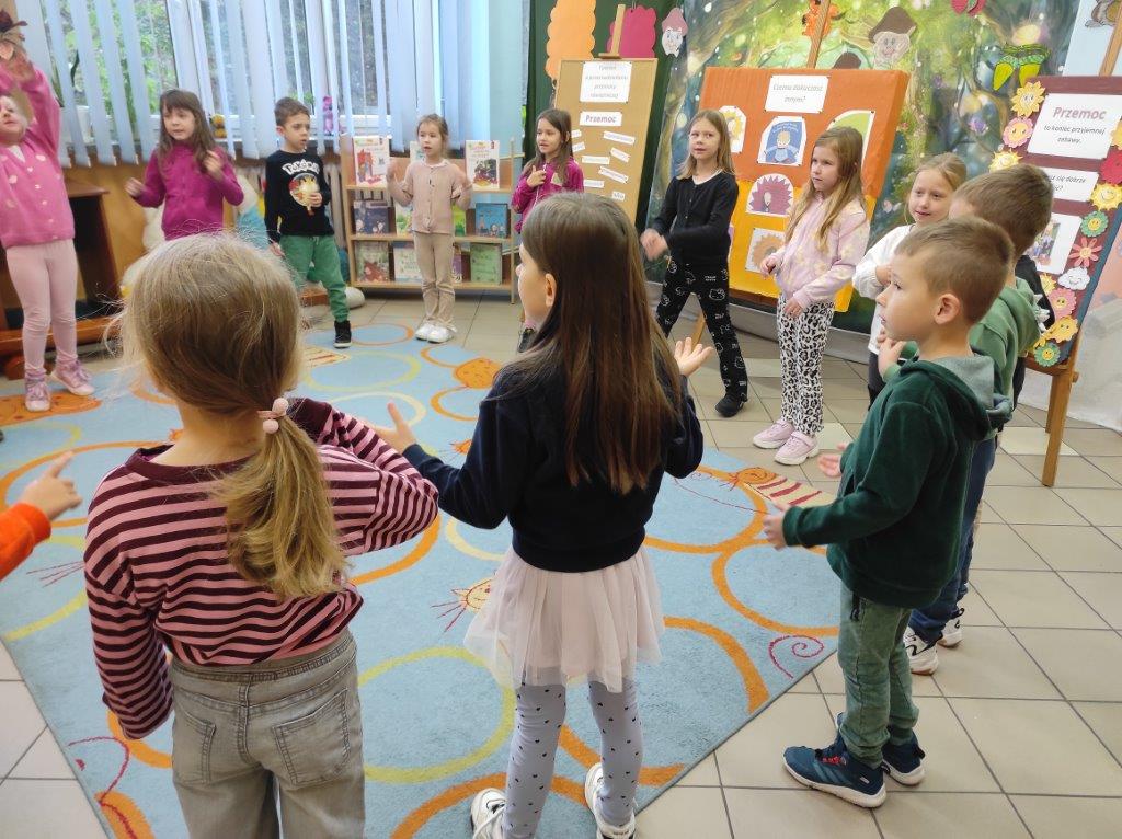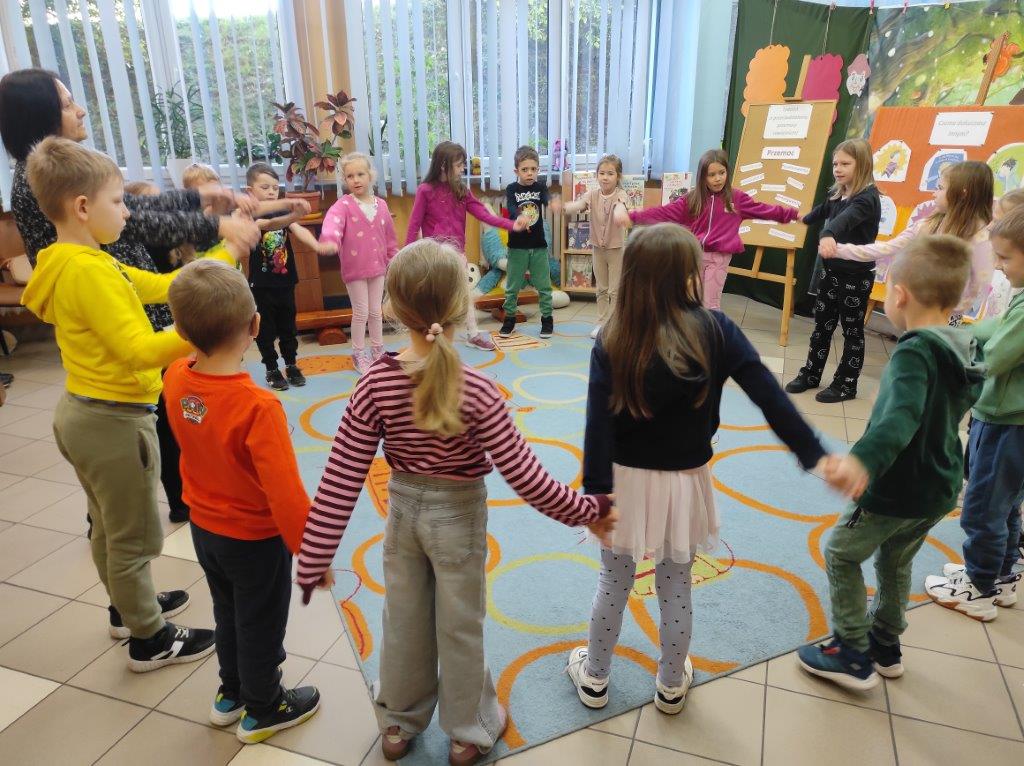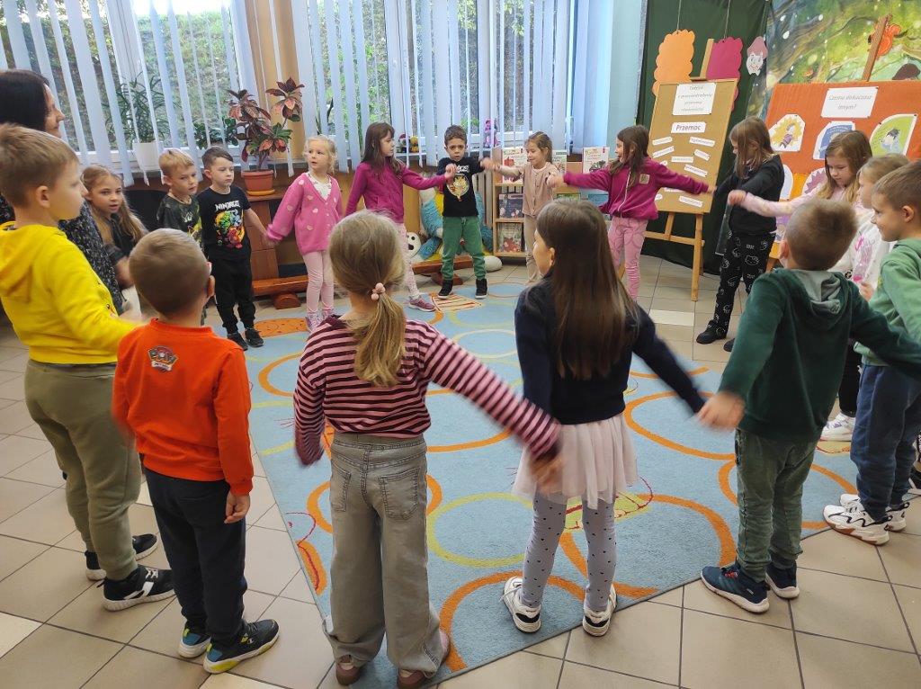 Następnie dzieci wzięły udział w zabawach ruchowych i muzycznych mających budować dobre relacje wśród nich.