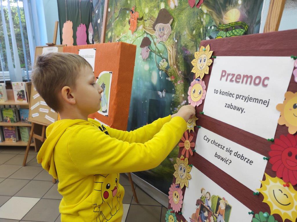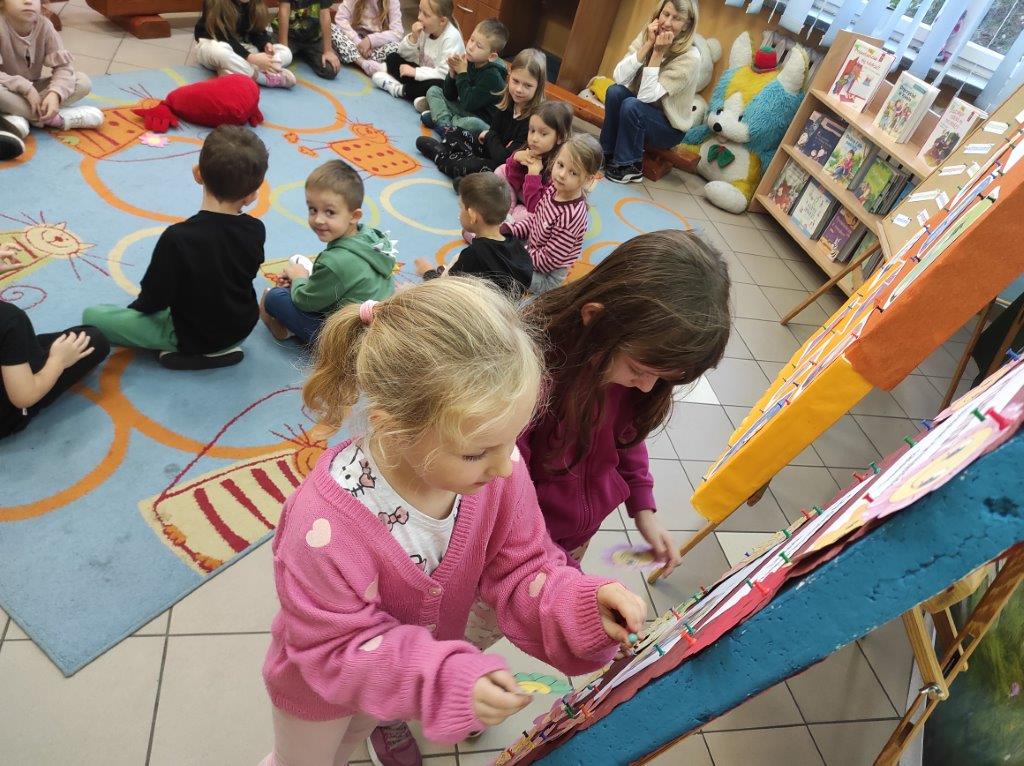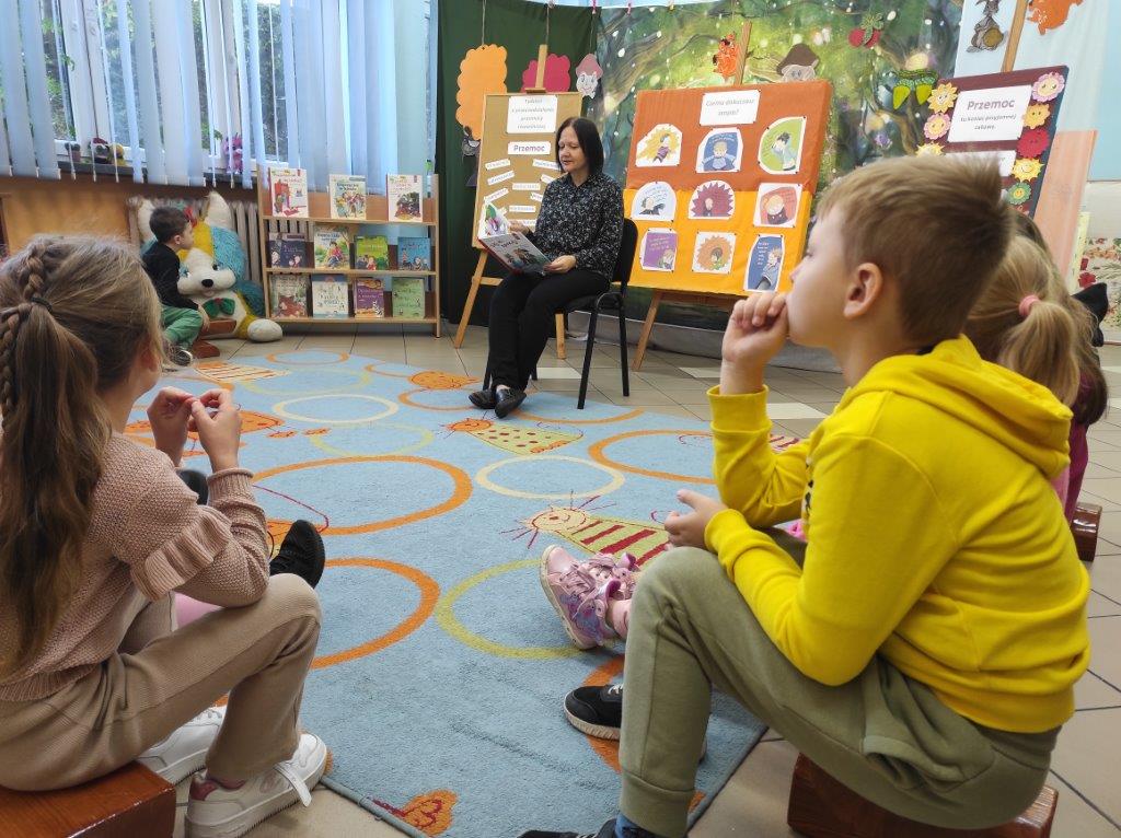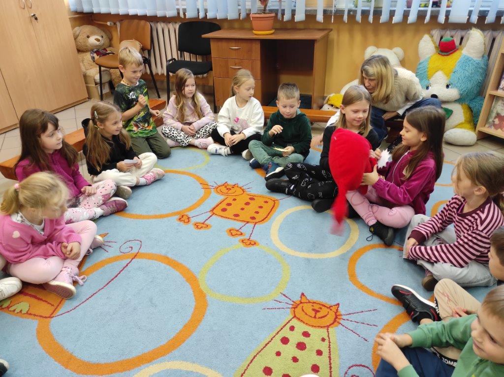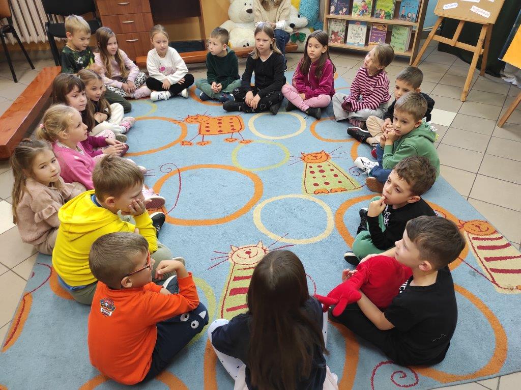 3 października 2025 r. grupa "Misiaczki" z PS nr 19 odwiedziła Filię 11, by wziąć udział w zajęciach dotyczących przemocy rówieśniczej. Na wstępie dzieci wysłuchały książki „Daj mi spokój" Elisabeth Zoller. Opowiadanie to porusza wiele aspektów relacji wśród przedszkolaków, w związku z czym stało się świetnym pretekstem do rozmowy o przemocy rówieśniczej i poczuciu własnej wartości. Choć poruszany temat wydawał się trudny dla 6-latków, to jednak nasi goście chętnie i bardzo dojrzale dzielili się swoimi refleksjami.