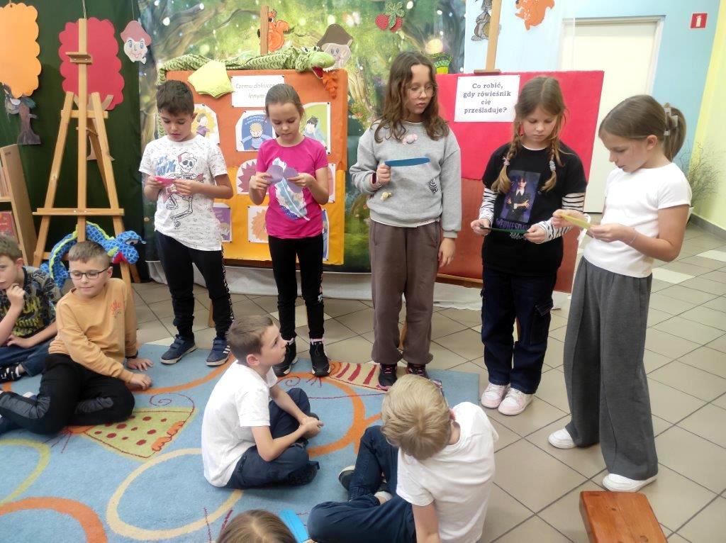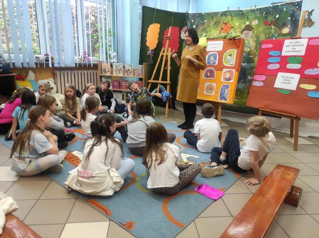 Co to jest przemoc rówieśnicza i jak sobie radzić, gdy jesteśmy jej ofiarami? Czemu zdarza nam się być agresywnymi wobec bliskich nam osób? Jak rozwinąć w sobie empatię i życzliwość wobec innych? Jak to zrobić, by okazywać wszystkim szacunek - nawet tym, z którymi się nie zgadzamy? Nad tymi ważnymi kwestiami zastanawiali się wspólnie z nami uczniowie klasy 3c ze SP nr 33, którzy 30 października odwiedzili Filię 11. Spotkanie przebiegało w miłej atmosferze, a dzieci chętnie dzieliły się z nami swoimi doświadczeniami i przemyśleniami. Mamy nadzieję, że dzięki przeprowadzonym zajęciom uczniowie będą bardziej wrażliwi na potrzeby innych, ale też wzrośnie w nich świadomość tego, iż muszą dbać o własne bezpieczeństwo i nie mogą pozwolić na to, by ktoś stosował wobec nich przemoc fizyczną lub psychiczną.