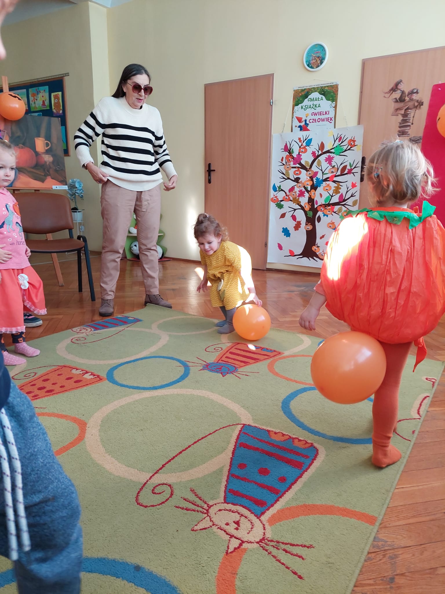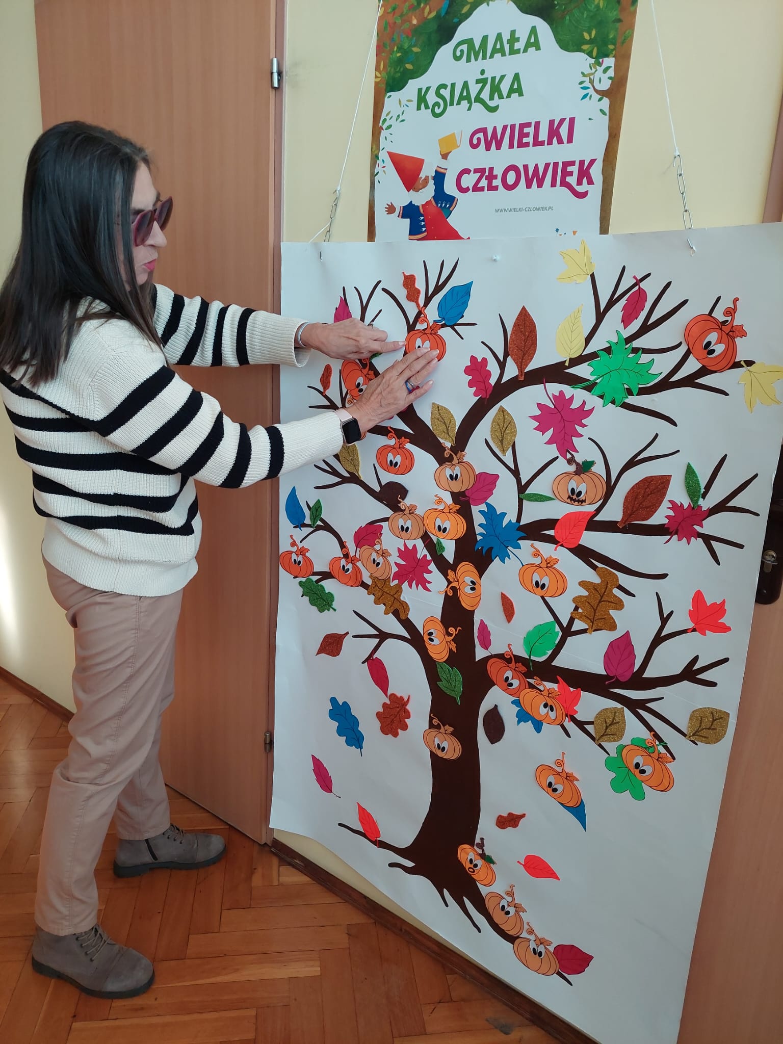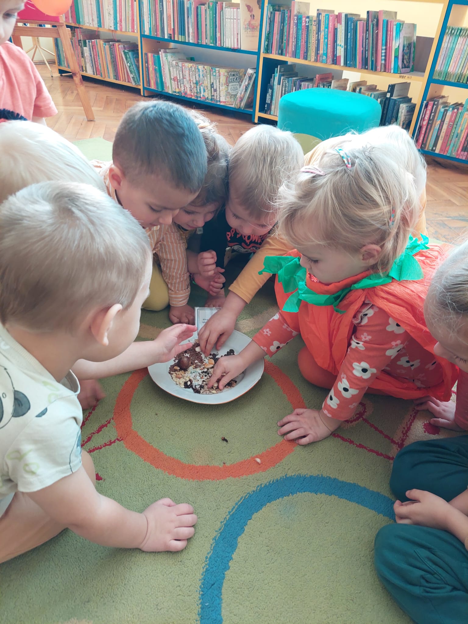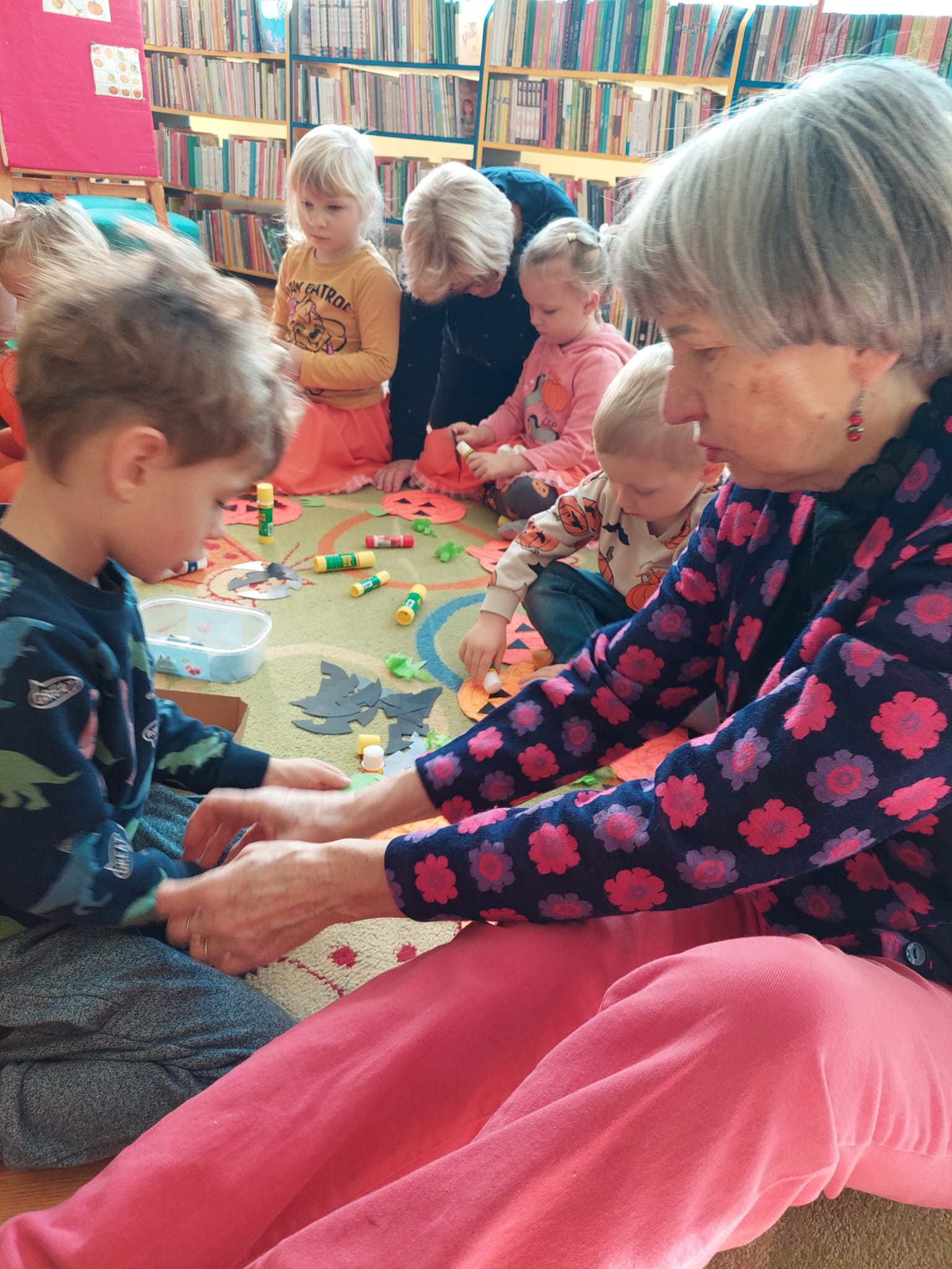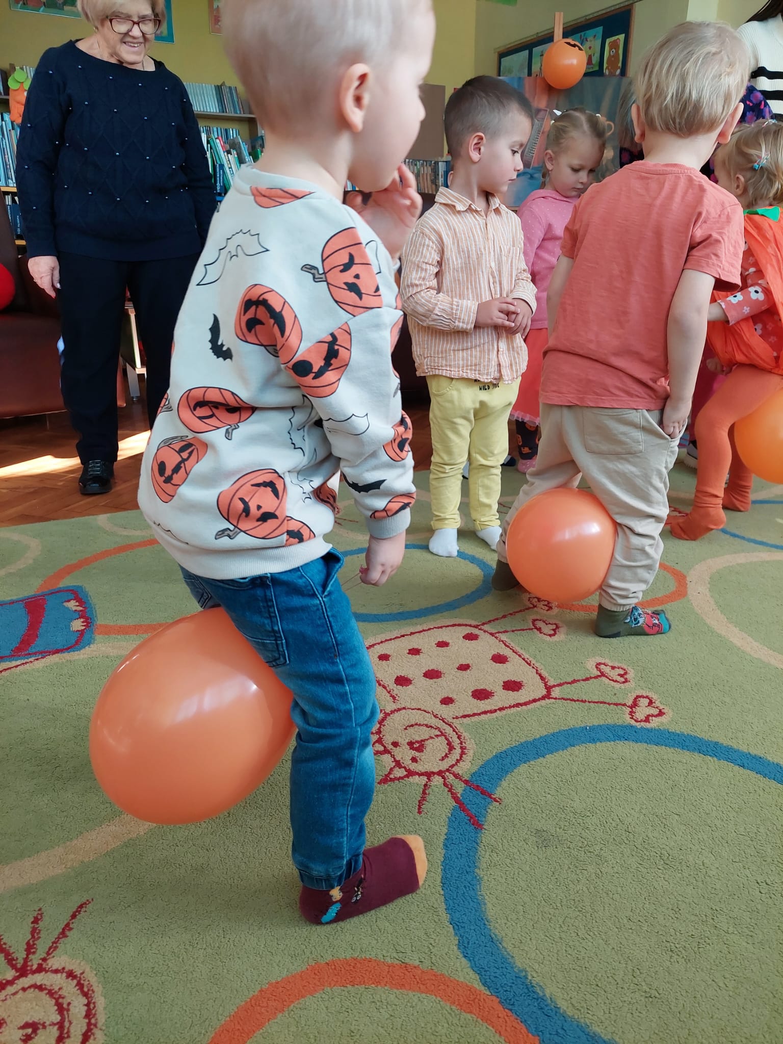 W Filii nr 10 świętowaliśmy Dzień Dyni w wyjątkowym, międzypokoleniowym gronie. Gościliśmy najmłodszych czytelników – grupę 3–4-latków z Przedszkola nr 42 – oraz Seniorów z zaprzyjaźnionego Klubu Seniora. Spotkanie rozpoczęliśmy rozmową o tym, czym jest Dzień Dyni i z czym się kojarzy. Następnie Panie z Klubu Seniora przeczytały maluchom książkę „Franklin i święto duchów”, która wprowadziła wszystkich w radosny, halloweenowy nastrój. Wspólnie stworzyliśmy Drzewo Dyniowe, na którym zawisły kolorowe, sympatyczne dynie. Potem przyszedł czas na zabawę ruchową z balonami, która wywołała mnóstwo uśmiechów – zarówno u dzieci, jak i dorosłych. Nie zabrakło też dyniowych zagadek i łamigłówek. Na zakończenie każdy uczestnik wykonał własną, halloweenową dynię. To było radosne, pełne energii i wzruszeń spotkanie, które pokazało, jak pięknie można łączyć pokolenia poprzez wspólną zabawę i twórczość. Dziękujemy wszystkim uczestnikom za cudowny czas i wspólną, jesienną przygodę!