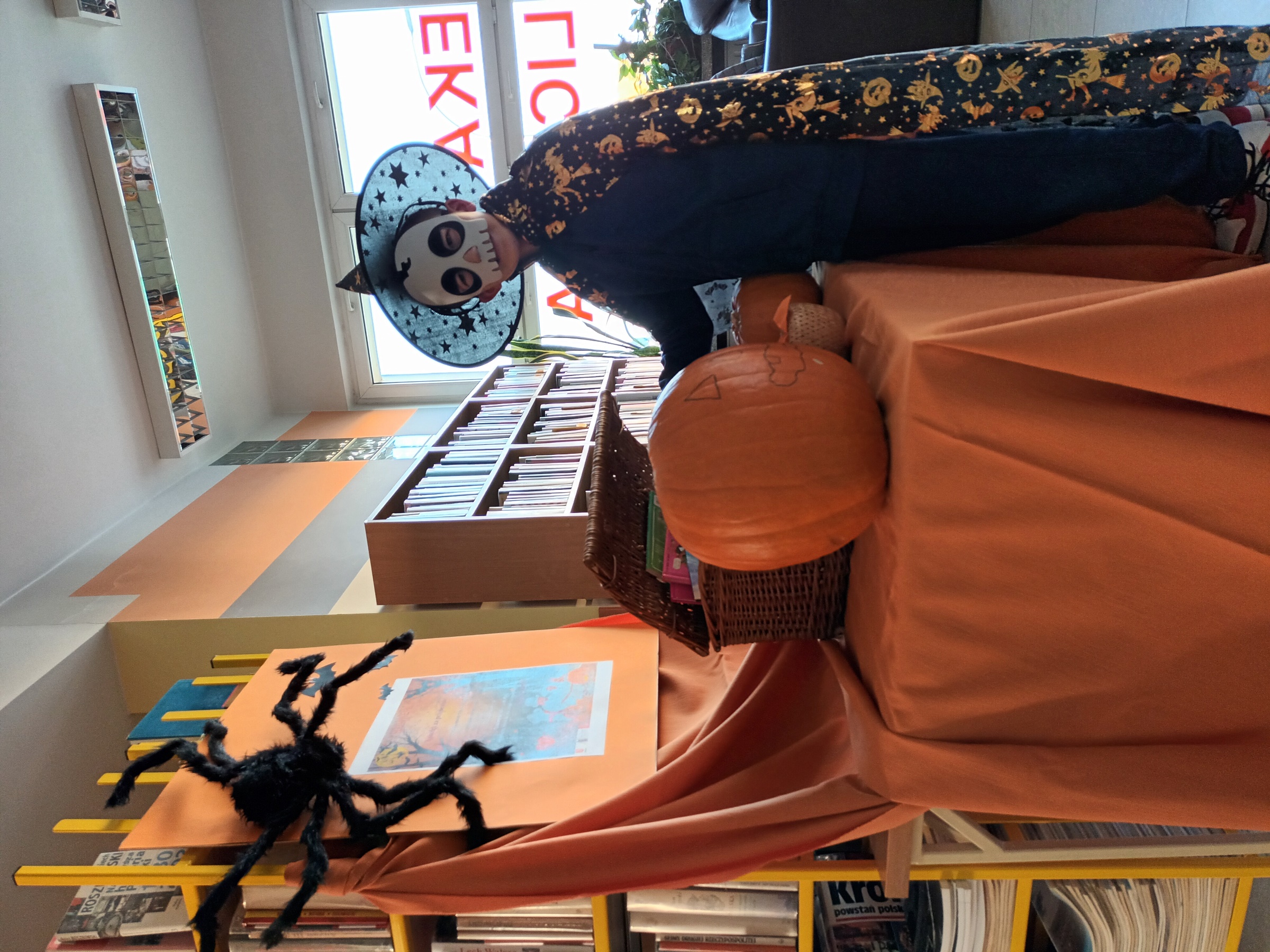 31 października – w przeddzień Dnia Wszystkich Świętych – Filia nr 8 postanowiła zorganizować dla swoich czytelników anglosaskie święto Halloween, dzięki któremu w filii na Barwinku zrobiło się gwarno i wesoło. Zabawa polegała na odwiedzeniu biblioteki w halloweenowym przebraniu i wypożyczenie przynajmniej jednej książki. Na czytelników biorących udział w zabawie czekał prezent – książka, którą można było sobie wybrać z wiklinowego kuferka, ustawionego w tematycznym sąsiedztwie dyń, pająka i nietoperzy. Dorośli i dzieci w tym dniu świetnie się bawili.