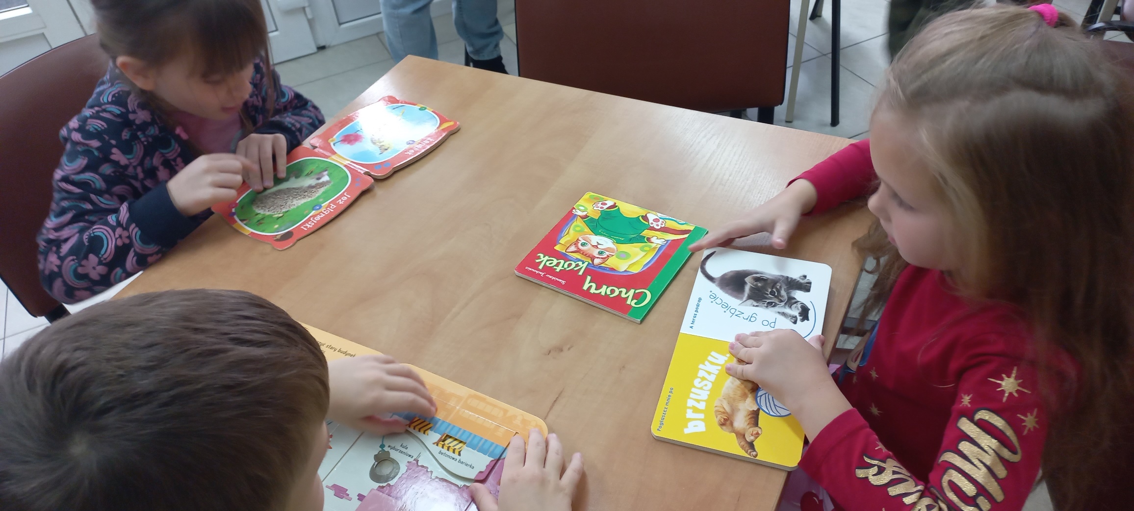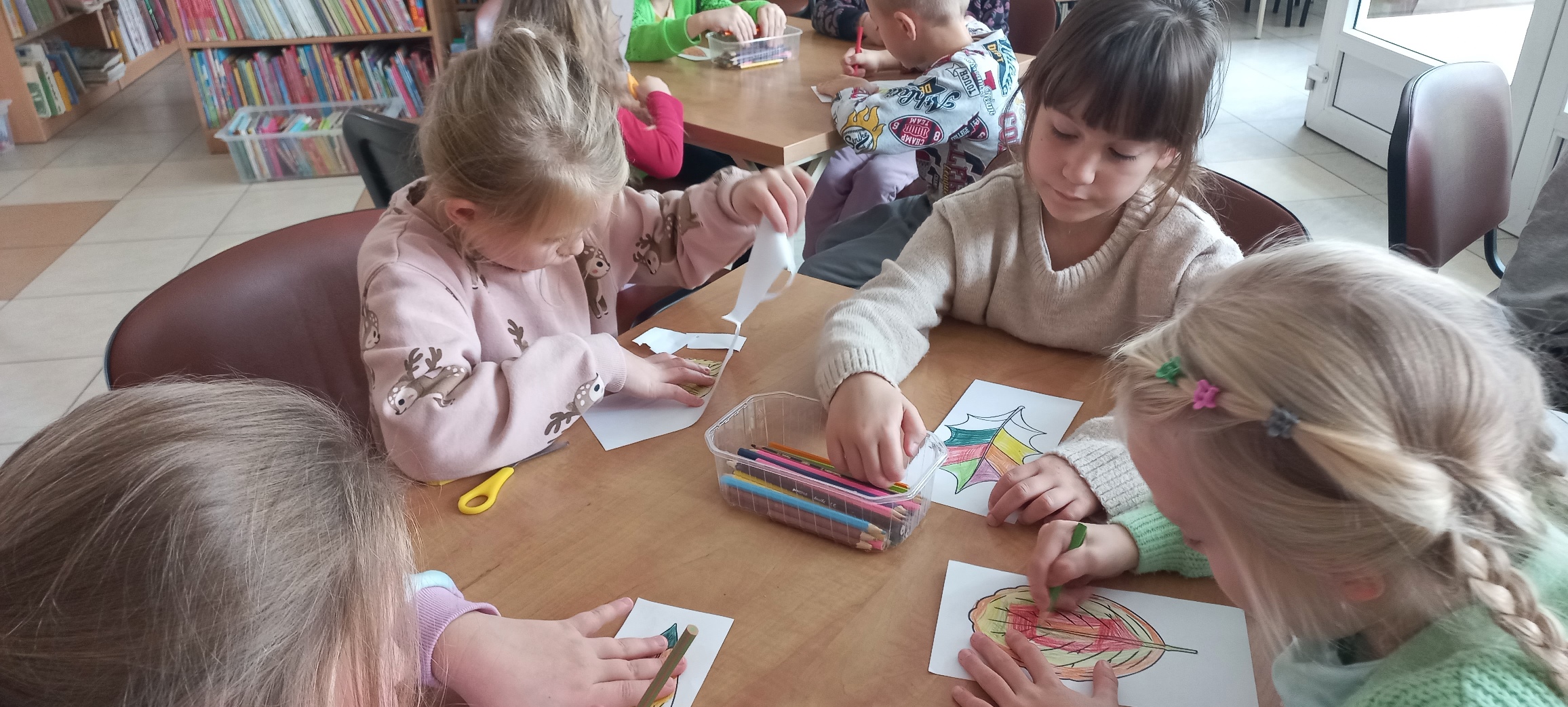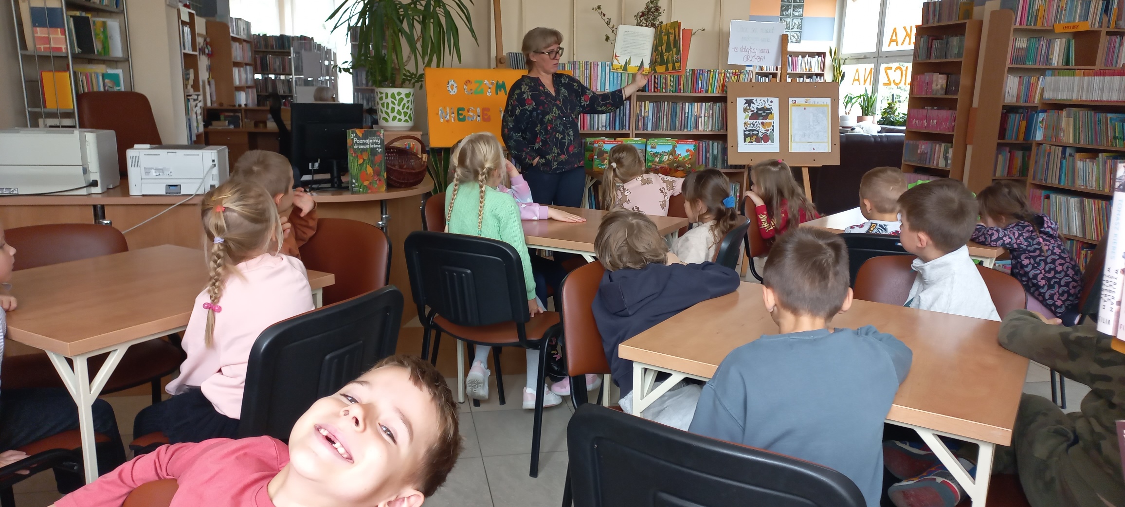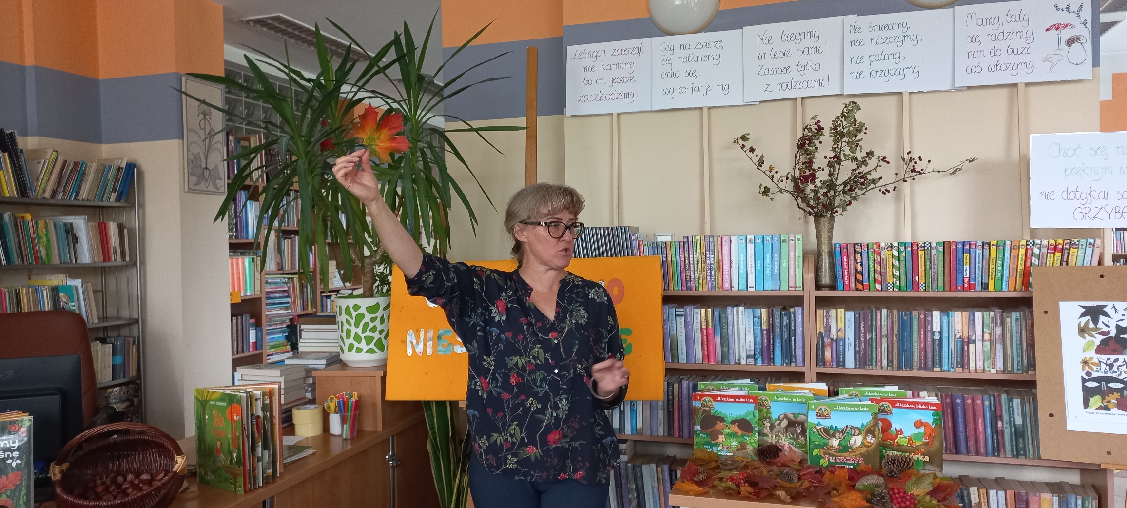 Pierwsze powakacyjne spotkanie w Filii nr 8 odbyło się w towarzystwie grupy Krasnoludków z PS nr 39 w Kielcach. Starszaki poznały przygody „Poli w lesie” G. Rzepeckiej - Weis, co pomogło przypomnieć i uporządkować zasady zachowania się podczas wizyty w lesie. Dzieci doskonale wiedziały, że w nim nie hałasujemy, nie śmiecimy, nie niszczymy roślin i nie zbliżamy się do dzikiej zwierzyny. Każdy winien uważać na trujące grzyby i inne nieznane rośliny leśne. Zajęcia zakończyły się wykonaniem przez dzieci jesiennych ilustracji – pokolorowanych liści/drzewek.