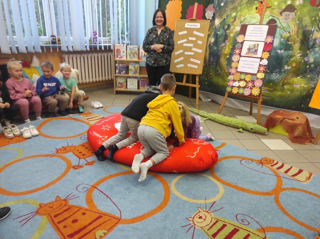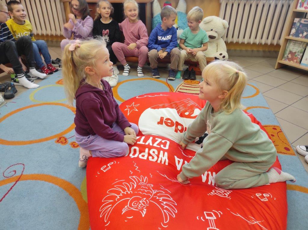 Każdy człowiek, duży czy mały, chciałby mieć przyjaciela. Czy jednak potrafimy być przyjaciółmi? Nad tym ważnym problemem zastanawialiśmy się z grupą "Liski" z Przedszkola Samorządowego nr 19, która 8 października 2025 r. odwiedziła Filię 11. Podstawę do naszej rozmowy stanowiła książka "Chcę mieć przyjaciela" E. Zubrzyckiej. Historii skomplikowanej relacji krokodyla z dziewczynką dzieci wysłuchały z wielkim zaciekawieniem i sekundowały głównej bohaterce opowiadania, gdy ta szukała prawdziwego przyjaciela. Następnie przedszkolaki zastanawiały się, jak powinniśmy się zachowywać, by być dla innych dobrymi przyjaciółmi, ale też dobrymi kolegami. Dużo czasu poświęciliśmy kwestii życzliwości i uśmiechu, które sprawiają, że w grupie lepiej się czujemy i lepiej bawimy. Na koniec dzieci pełne radości i entuzjazmu wzięły udział w zabawach ruchowych i edukacyjnych.