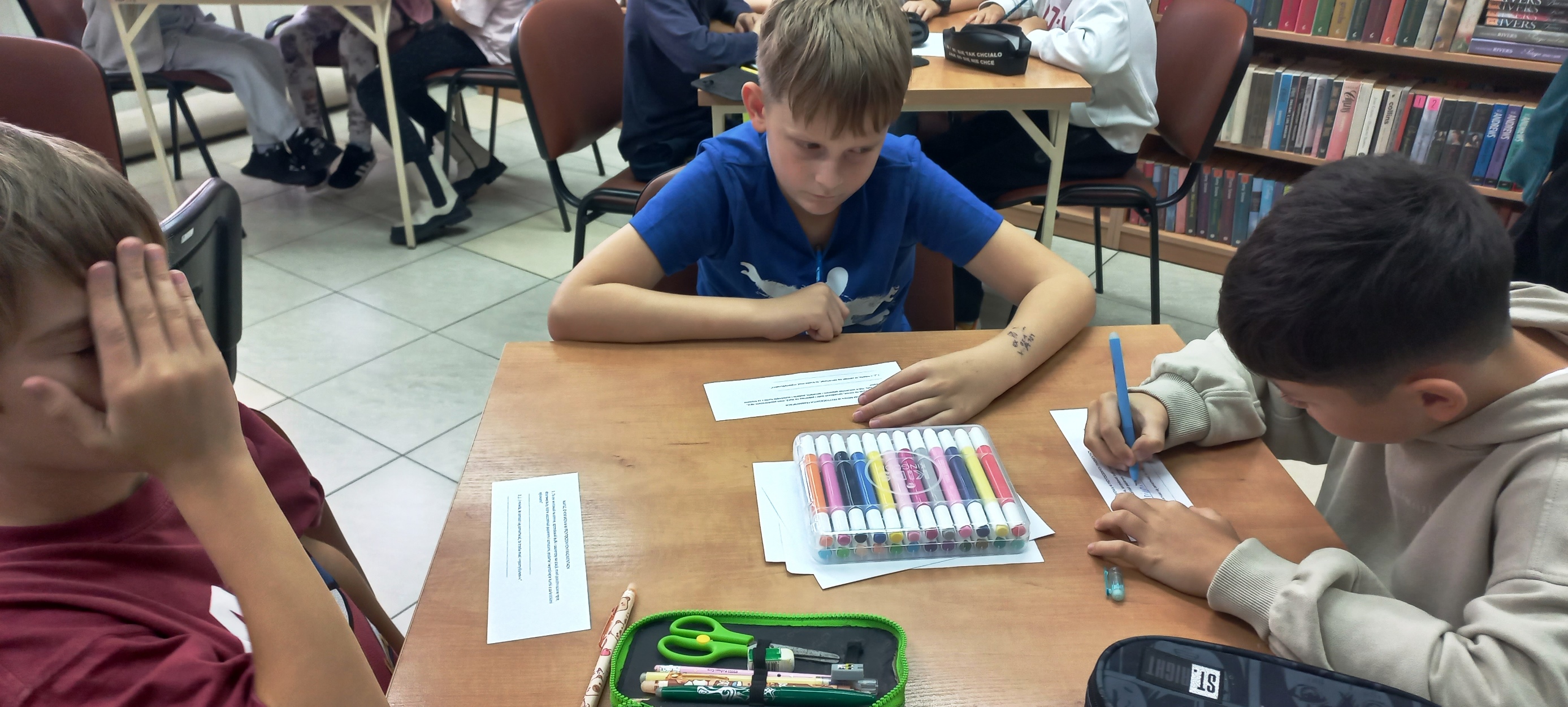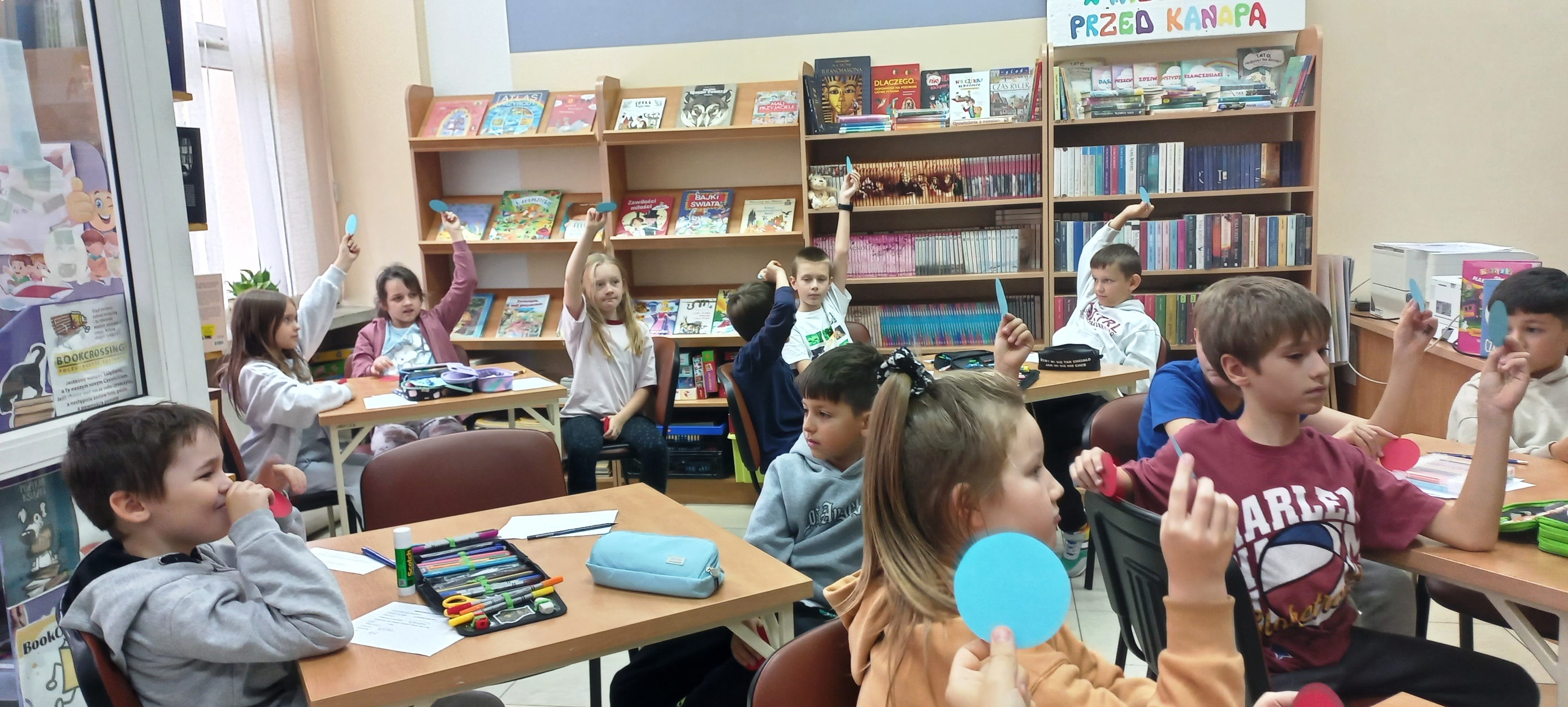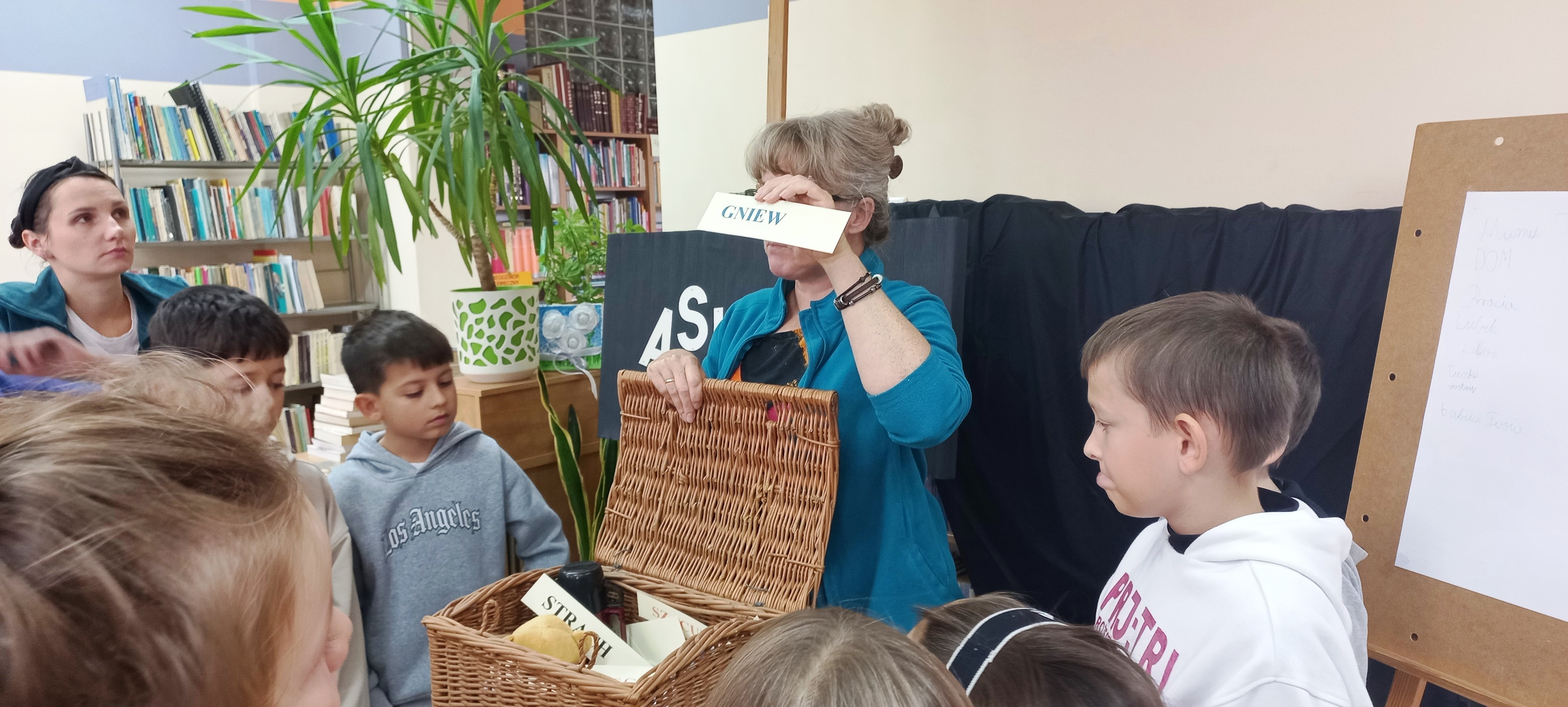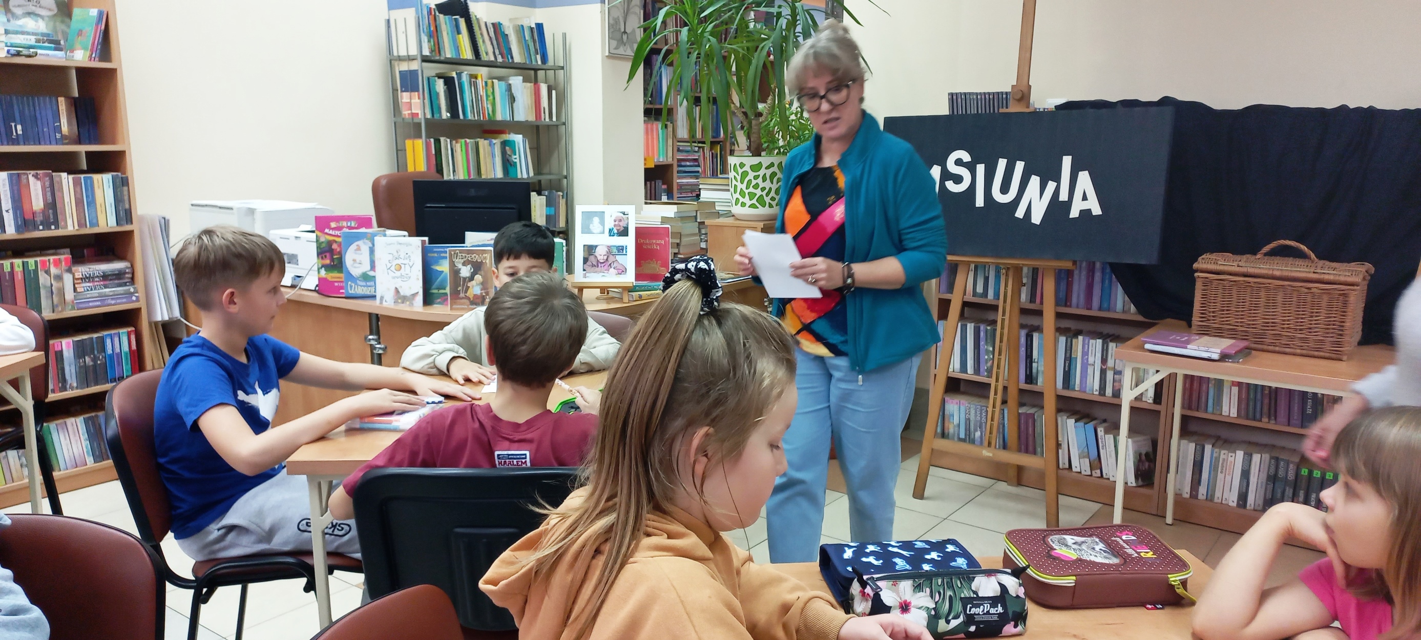 Trudny temat wojny widzianej oczami dziecka w przystępny, prosty sposób ukazała w autobiograficznej „Asiuni” Joanna Papuzińska. I o tej właśnie lekturze rozmawialiśmy z klasą III d z SP nr 32 w Kielcach. Najpierw było przybliżenie biografii autorki, potem każdy uczeń miał do wypełnienia karty pracy, podsumowujące treść książki. Jedno z zadań wymagało grupowej odpowiedzi Prawda/Fałsz. Inne wypisania osób i rzeczy utraconych przez małą Asiunię podczas wojny. Najwięcej emocji wywołało ostatnie zadanie - dzieci wybierały przedmioty i wartości (opisane na kartkach) najpotrzebniejsze podczas ucieczki czy przedłużającego się ukrywania. Okazuje się, że niełatwo uzasadnić swoje wybory, a jeszcze trudniej dobrze wczuć się w emocje osób przeżywających straszliwy czas wojny…