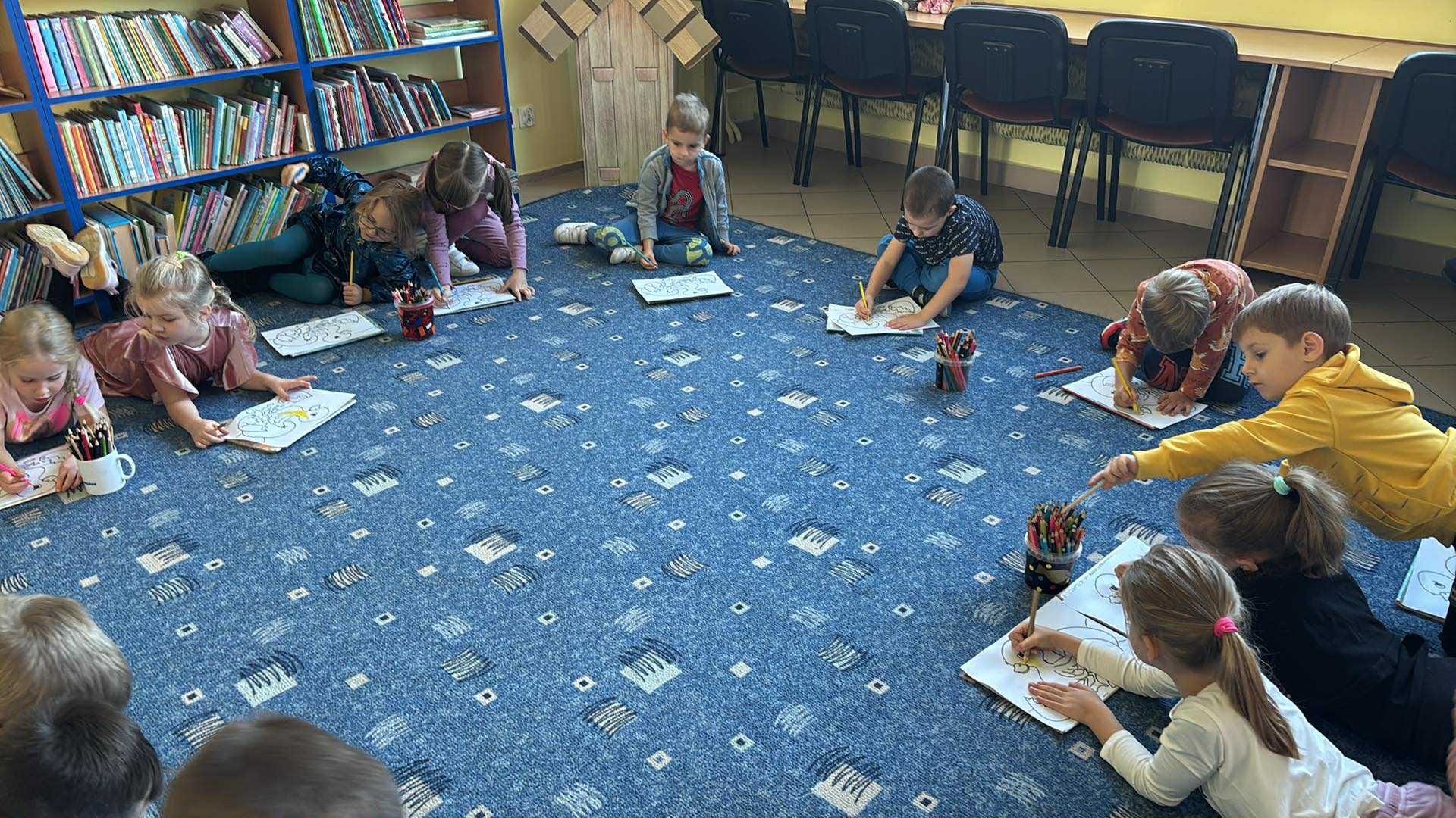 Do Filii nr 5 przybyły „Różyczki” z SP nr 35. Zajęcia dotyczyły wiersza Jana Brzechwy pt. „Kaczka Dziwaczka”. Dzieci wysłuchały znanego utworu, który później został wspólnie zaśpiewany. Okazało się, że przedszkolaki znakomicie sobie z tym poradziły, a na zakończenie każdy pokolorował własną „Dziwaczkę”. Ze śpiewem na ustach dzieci wyruszyły w drogę powrotną do przedszkola.