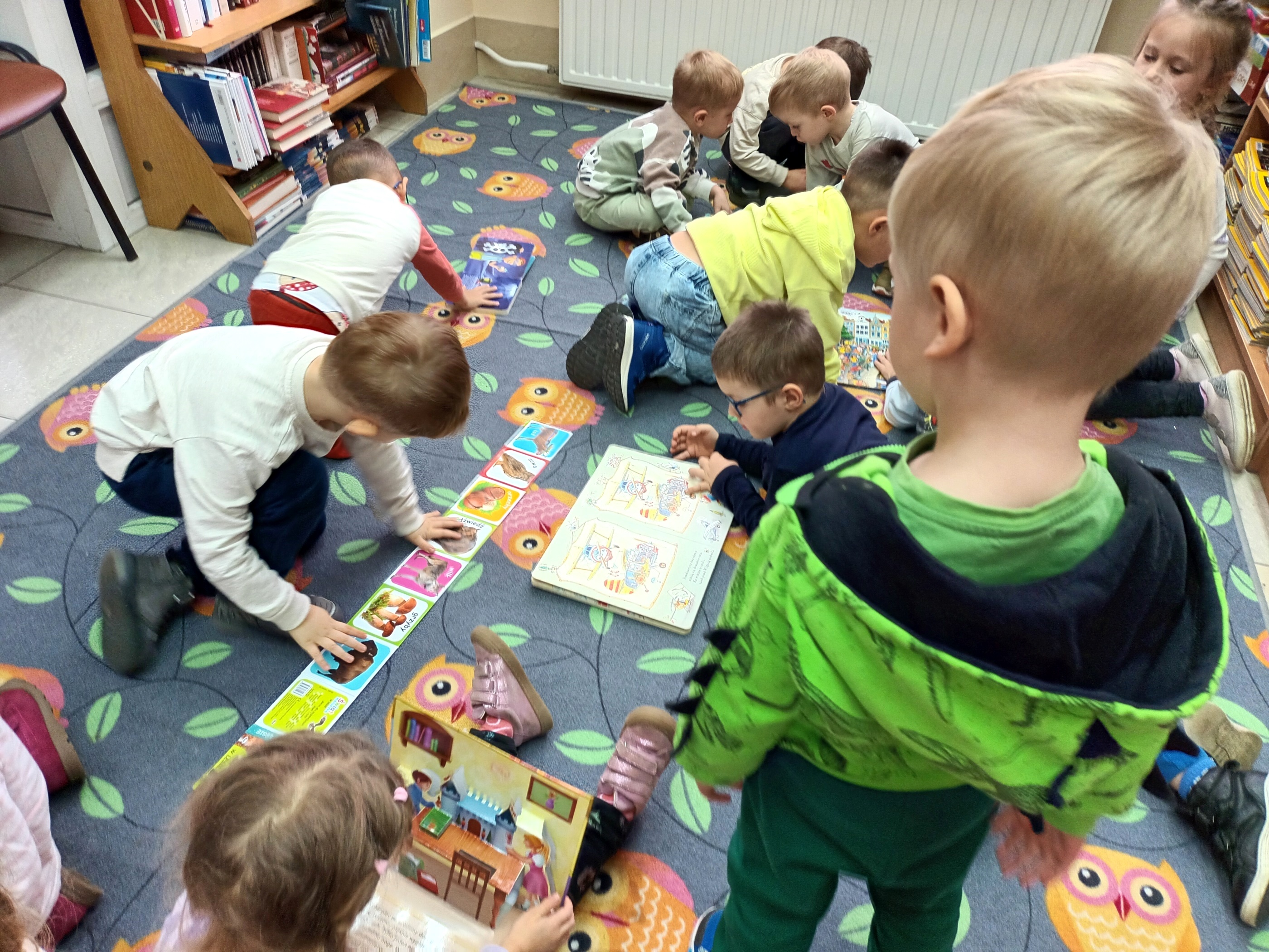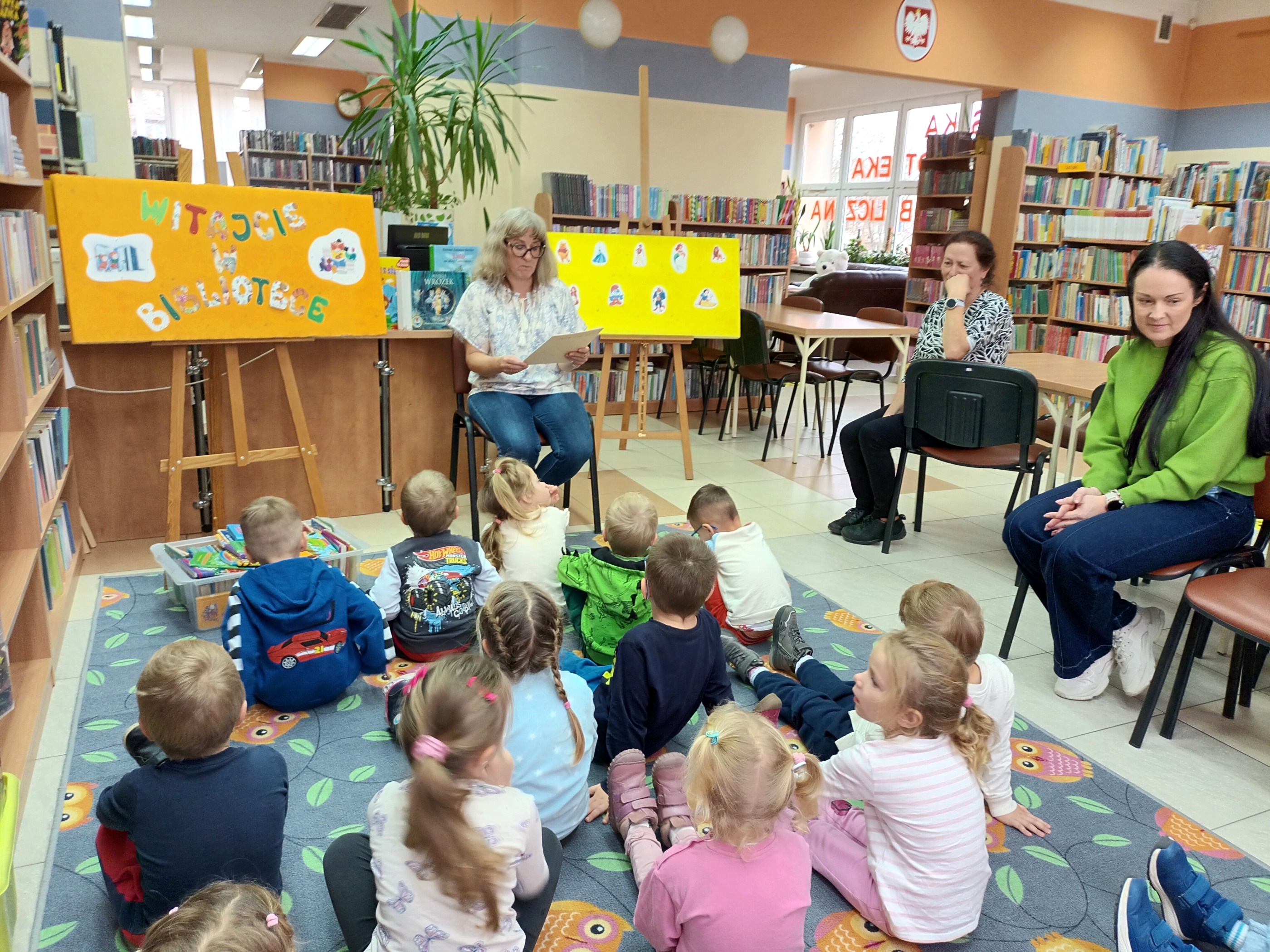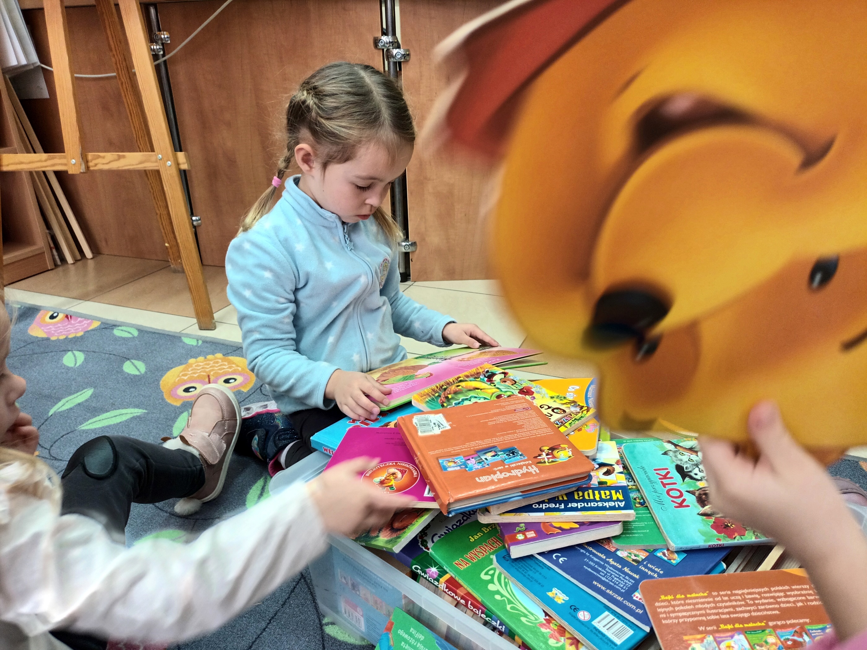 W piątkowe przedpołudnie po raz pierwszy do naszej biblioteki zawitała grupa Tęczowe Rybki z PS nr 3 w Kielcach. Czterolatki poznały różnicę między biblioteką a księgarnią, odpowiedziały na kilkanaście bajkowych zagadek, po czym wyruszyły w podróż po naszej filii. Dzieci zachwyciły się ilością książek, szczególnie w magazynie. Przy ladzie bibliotecznej zapoznały się z zasadami korzystania z naszych zbiorów, ale też zaprosiliśmy wszystkie dzieci do udziału w akcji "Mała książka - wielki człowiek". Przyszedł też czas na uzupełnienie na planszy bohaterów baśni o brakujące postaci. Nie było to łatwe zadanie - przedszkolakom czasem brakowało wiedzy... Dlatego już szykujemy się do kolejnego - tym razem czysto baśniowego - spotkania z "Rybkami". Czytania książek nigdy dosyć.