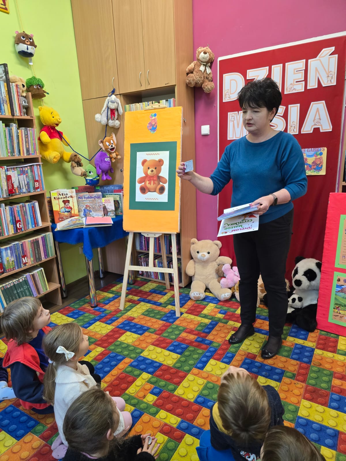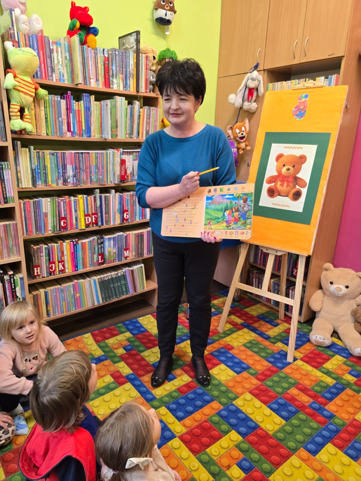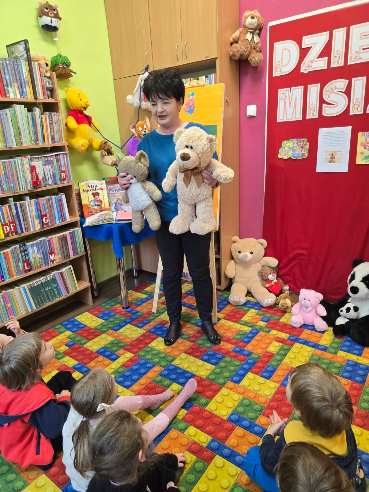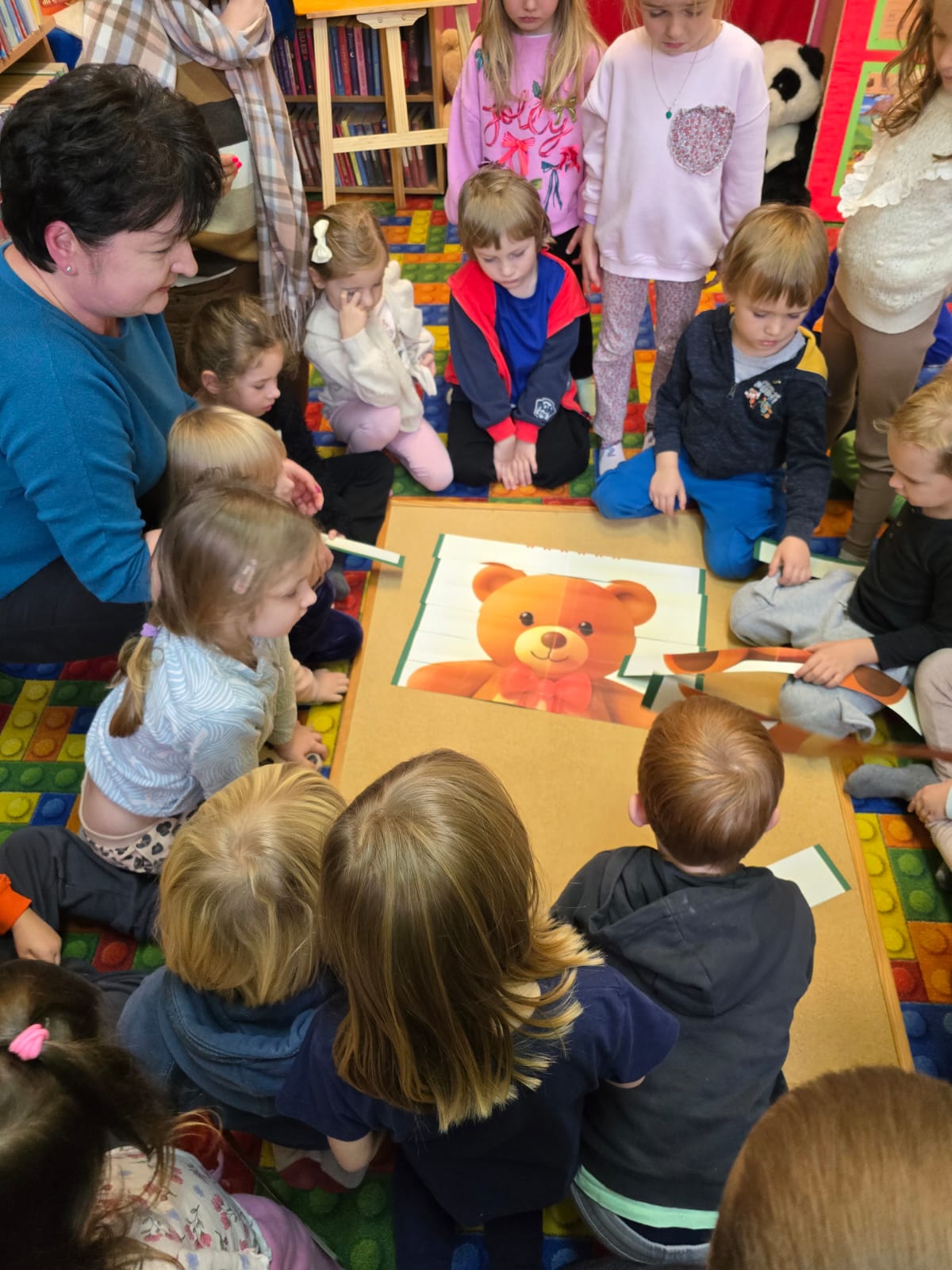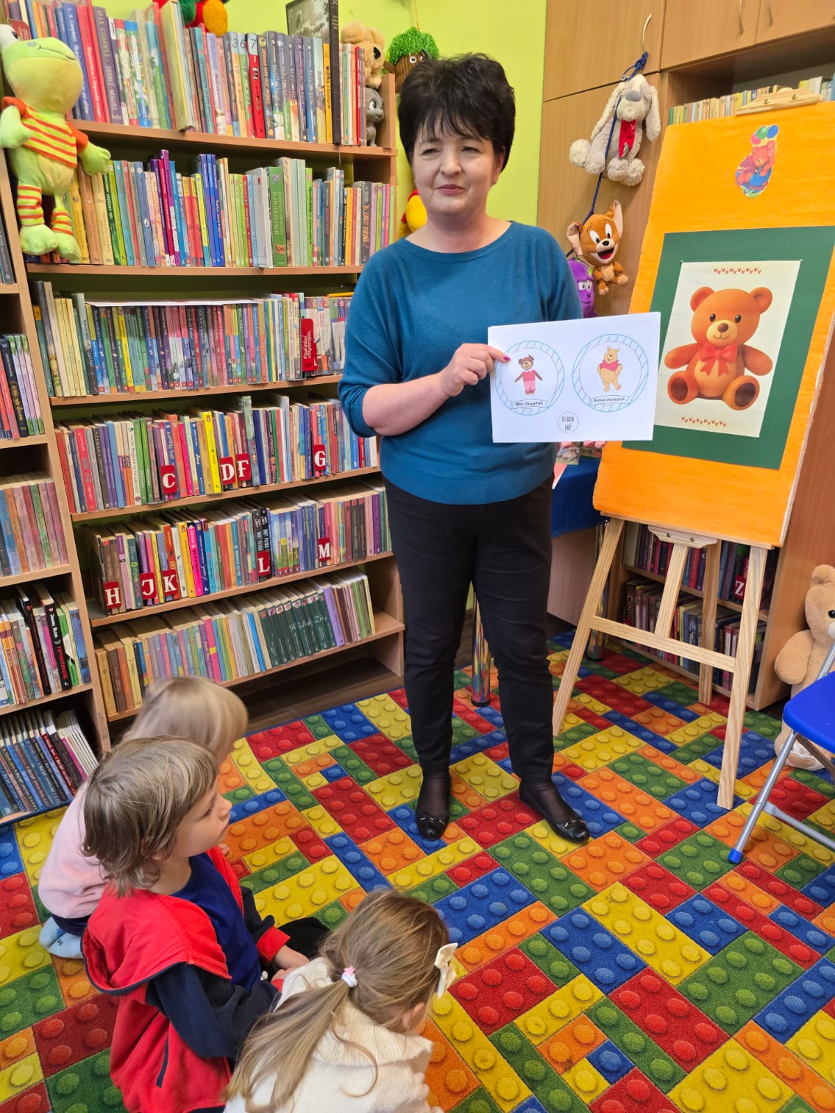 17 listopada 2025 r. odwiedziły nas przedszkolaki z grupy "Sówki” z Freblowskiego Przedszkola i Żłobka Kreatywne Maluchowo w Kielcach. Spotkanie odbyło się z okazji Światowego Dnia Pluszowego Misia, który obchodzony jest 25 listopada. Dzieci zobaczyły jak wyglądał miś dawniej, a jak wygląda obecnie. Dowiedziały się również wielu ciekawych rzeczy o niedźwiadkach. Poznały historię Pluszowego Misia. Wspólnie przeczytaliśmy fragment książki „Miś Gabryś” Iwony Krynickiej, w której treść przeplatała się z obrazkami, co dodatkowo angażowało najmłodszych uczestników. Następnie przedszkolaki wysłuchały książki „Jesteś jednym z nas" - Julii Volmert, wprowadzającej dzieci w temat akceptacji, przyjaźni i wzajemnego wsparcia. Dzieci doszły do wniosku, że przyjaźń ze swoją ukochaną maskotką jest bardzo ważna, ponieważ misiowi można powierzyć wszystkie swoje sekrety, te smutne i te radosne. Podczas zajęć okazało się, że maluszki bardzo dobrze znają różne misie: Paddingtona, Kubusia Puchatka, Misia Coralgola, Pandę, Gumisie i wiele innych. Pod koniec zajęć „Sówki” odgadywały zagadki, nauczyły się wierszyka o misiu oraz wesoło bawiły się podczas zabawy ruchowej „Stary niedźwiedź mocno śpi", która była radosnym podsumowaniem „misiowego” spotkania w Filii nr 12.