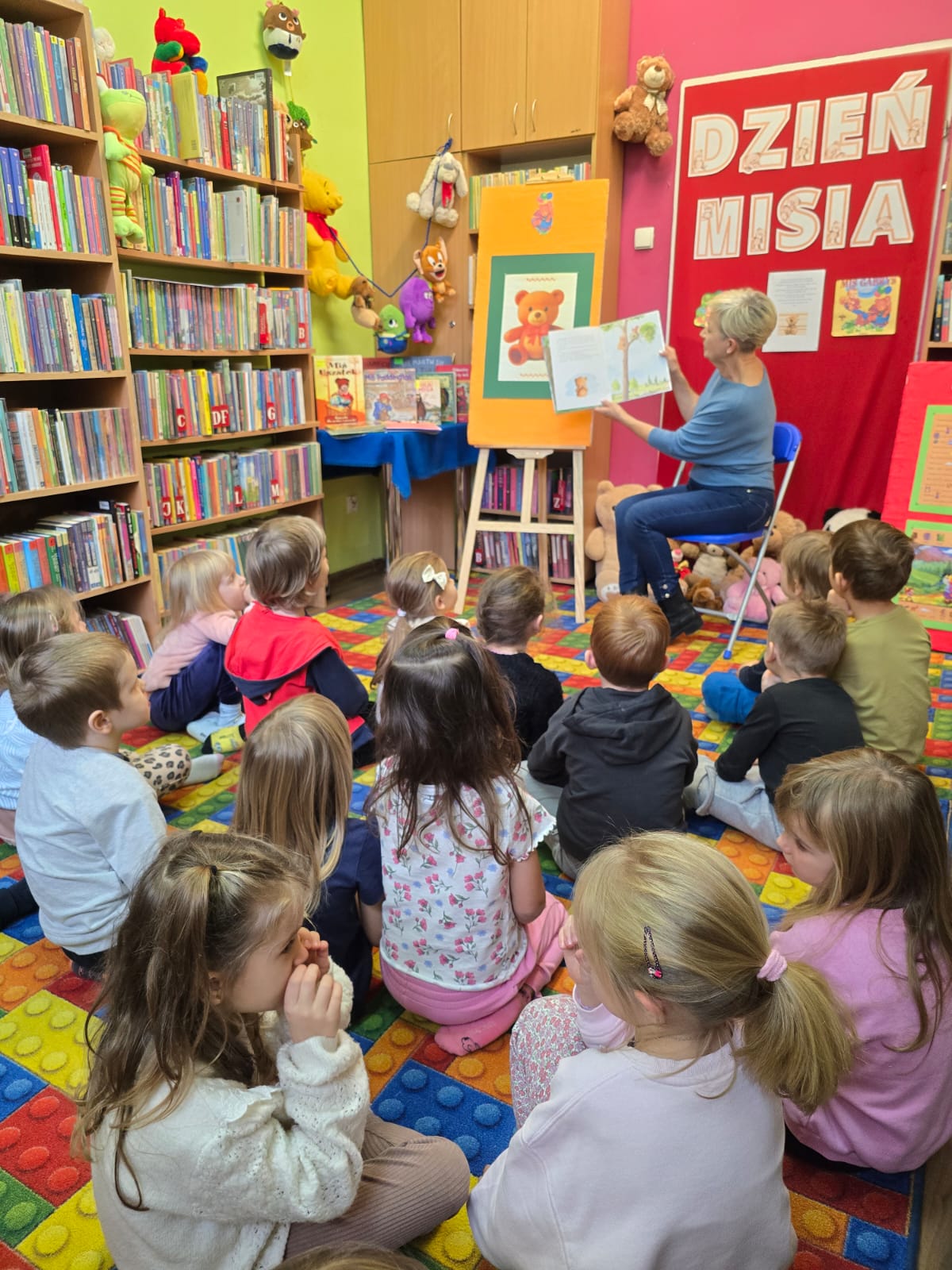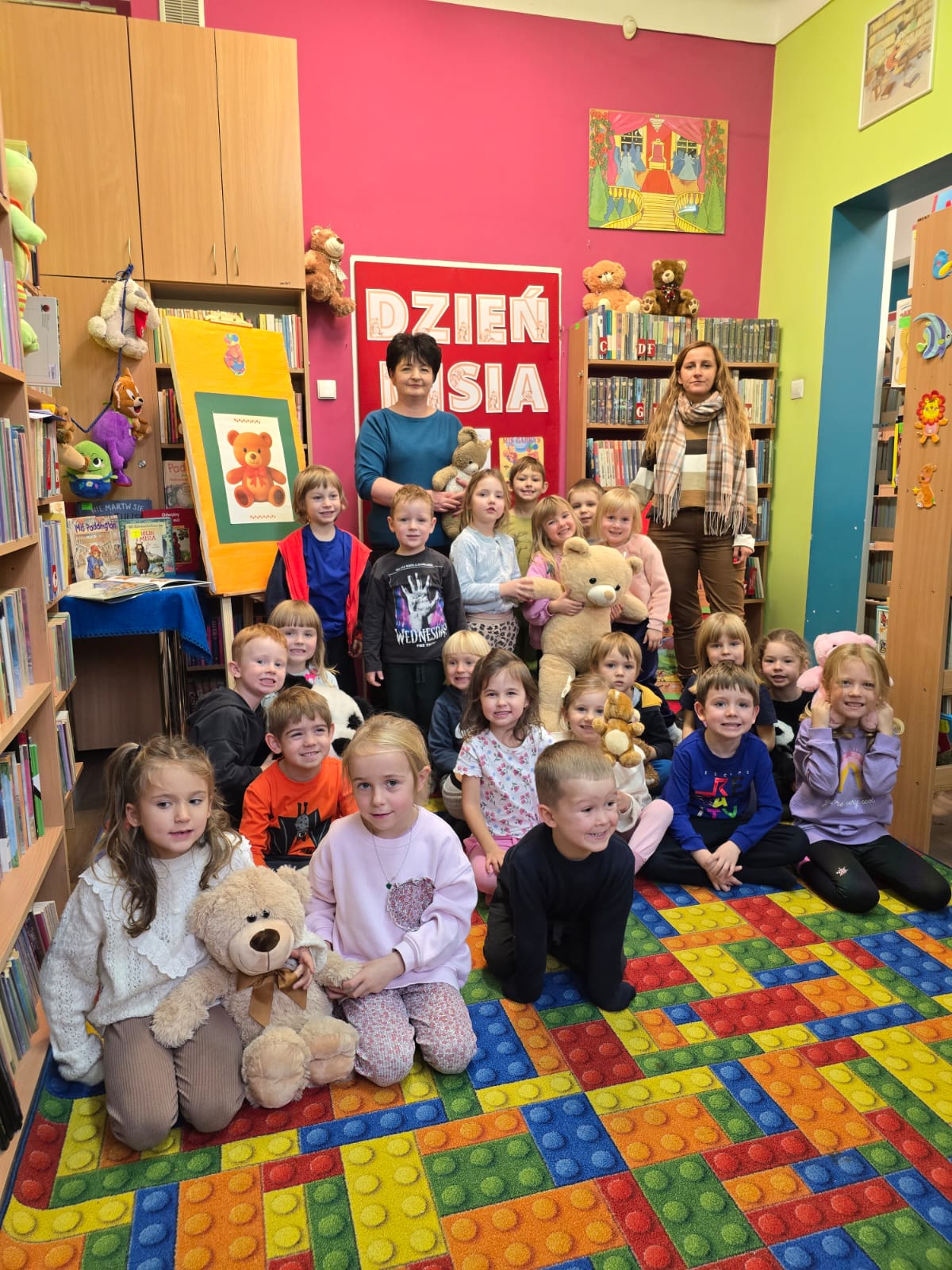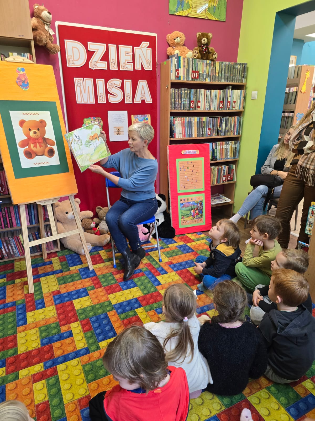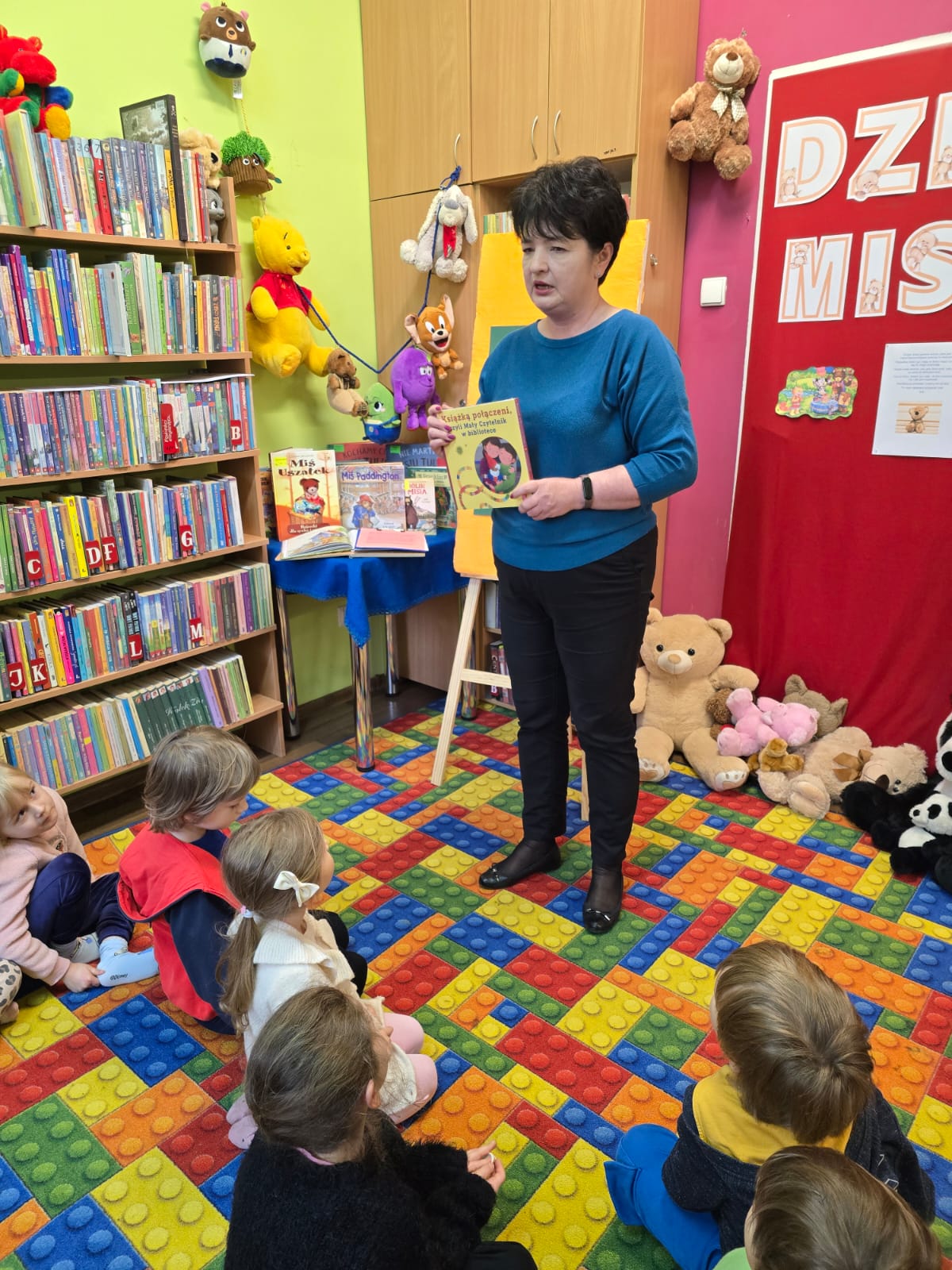 17 listopada 2025 r. odwiedziły nas przedszkolaki z grupy "Sówki” z Freblowskiego Przedszkola i Żłobka Kreatywne Maluchowo w Kielcach. Spotkanie odbyło się z okazji Światowego Dnia Pluszowego Misia, który obchodzony jest 25 listopada. Dzieci zobaczyły jak wyglądał miś dawniej, a jak wygląda obecnie. Dowiedziały się również wielu ciekawych rzeczy o niedźwiadkach. Poznały historię Pluszowego Misia. Wspólnie przeczytaliśmy fragment książki „Miś Gabryś” Iwony Krynickiej, w której treść przeplatała się z obrazkami, co dodatkowo angażowało najmłodszych uczestników. Następnie przedszkolaki wysłuchały książki „Jesteś jednym z nas" - Julii Volmert, wprowadzającej dzieci w temat akceptacji, przyjaźni i wzajemnego wsparcia. Dzieci doszły do wniosku, że przyjaźń ze swoją ukochaną maskotką jest bardzo ważna, ponieważ misiowi można powierzyć wszystkie swoje sekrety, te smutne i te radosne. Podczas zajęć okazało się, że maluszki bardzo dobrze znają różne misie: Paddingtona, Kubusia Puchatka, Misia Coralgola, Pandę, Gumisie i wiele innych. Pod koniec zajęć „Sówki” odgadywały zagadki, nauczyły się wierszyka o misiu oraz wesoło bawiły się podczas zabawy ruchowej „Stary niedźwiedź mocno śpi", która była radosnym podsumowaniem „misiowego” spotkania w Filii nr 12.