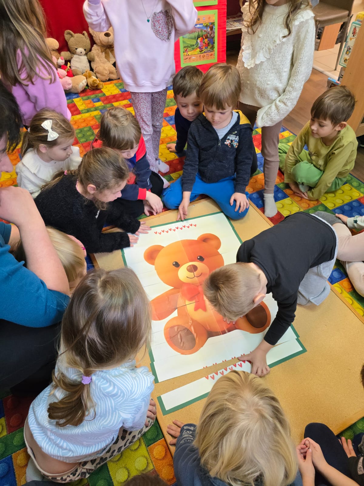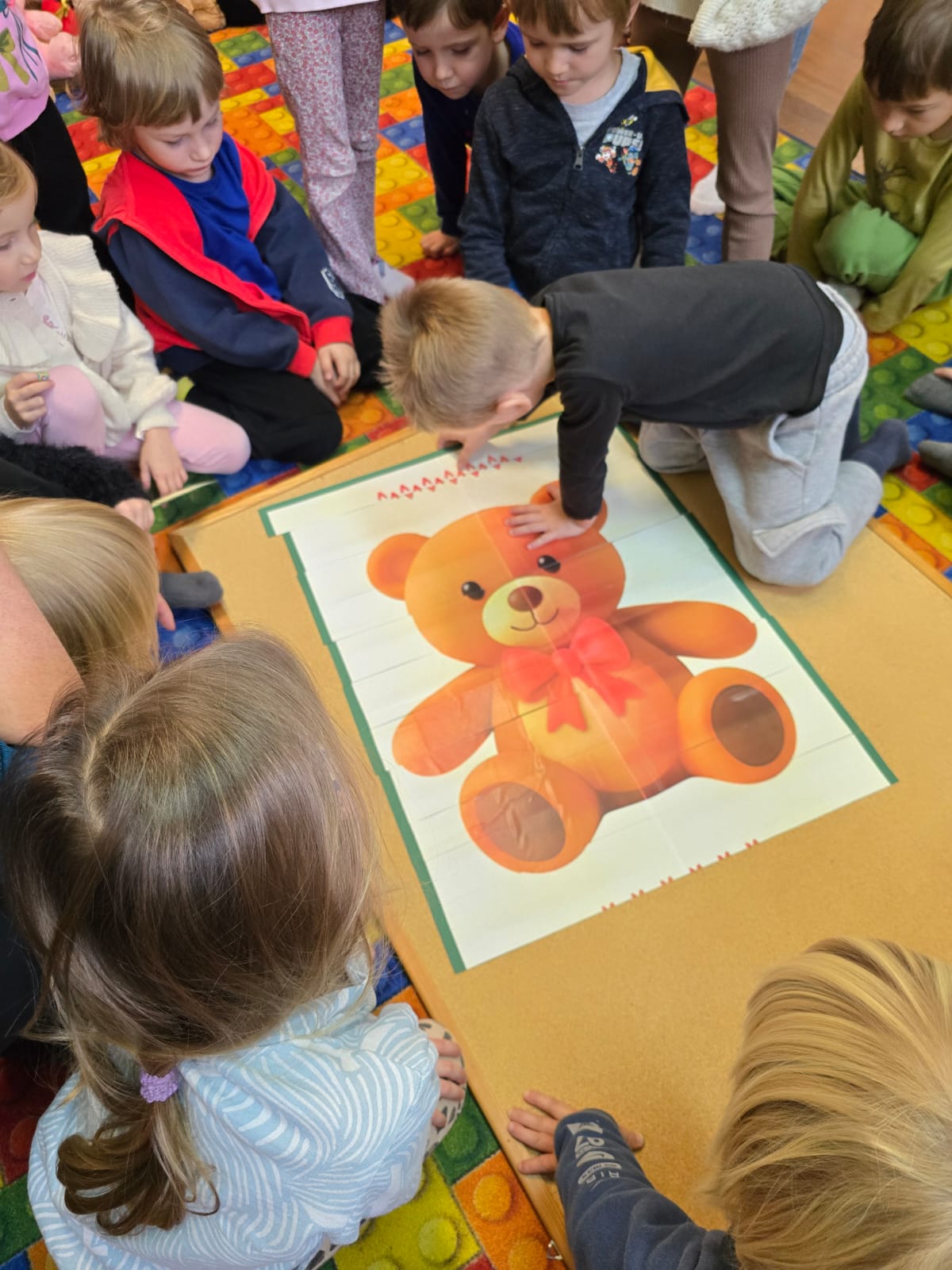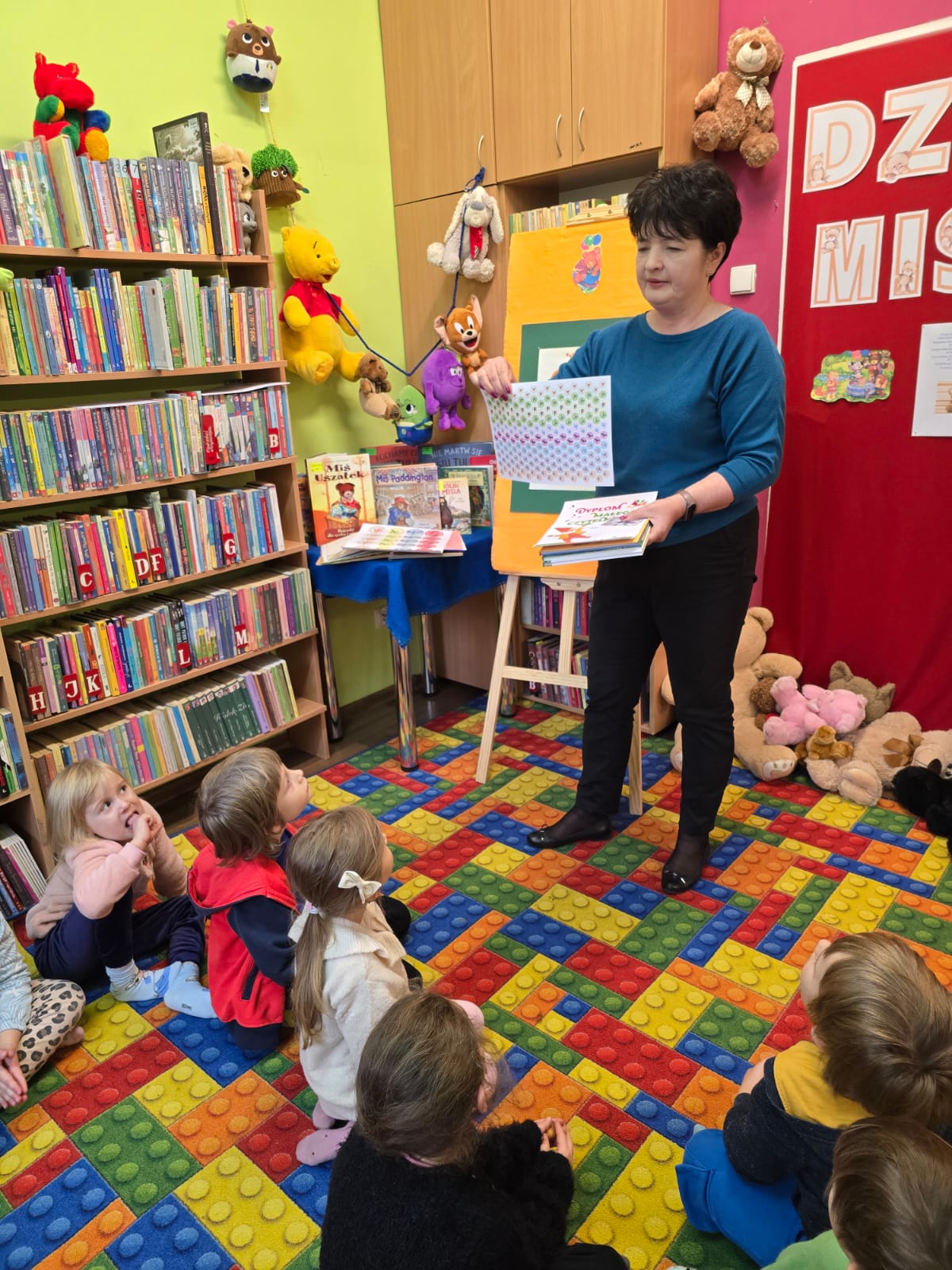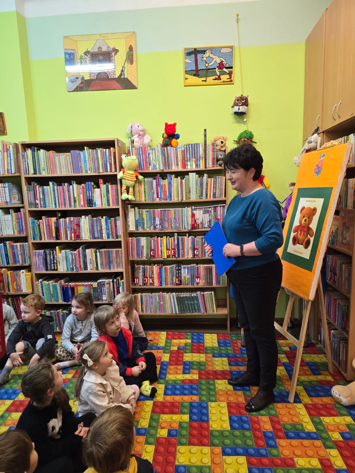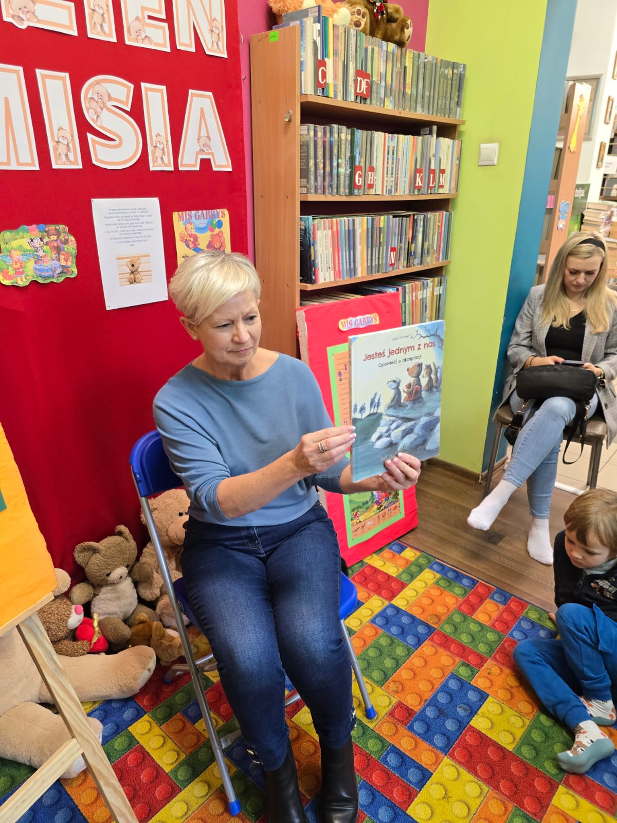 17 listopada 2025 r. odwiedziły nas przedszkolaki z grupy "Sówki” z Freblowskiego Przedszkola i Żłobka Kreatywne Maluchowo w Kielcach. Spotkanie odbyło się z okazji Światowego Dnia Pluszowego Misia, który obchodzony jest 25 listopada. Dzieci zobaczyły jak wyglądał miś dawniej, a jak wygląda obecnie. Dowiedziały się również wielu ciekawych rzeczy o niedźwiadkach. Poznały historię Pluszowego Misia. Wspólnie przeczytaliśmy fragment książki „Miś Gabryś” Iwony Krynickiej, w której treść przeplatała się z obrazkami, co dodatkowo angażowało najmłodszych uczestników. Następnie przedszkolaki wysłuchały książki „Jesteś jednym z nas" - Julii Volmert, wprowadzającej dzieci w temat akceptacji, przyjaźni i wzajemnego wsparcia. Dzieci doszły do wniosku, że przyjaźń ze swoją ukochaną maskotką jest bardzo ważna, ponieważ misiowi można powierzyć wszystkie swoje sekrety, te smutne i te radosne. Podczas zajęć okazało się, że maluszki bardzo dobrze znają różne misie: Paddingtona, Kubusia Puchatka, Misia Coralgola, Pandę, Gumisie i wiele innych. Pod koniec zajęć „Sówki” odgadywały zagadki, nauczyły się wierszyka o misiu oraz wesoło bawiły się podczas zabawy ruchowej „Stary niedźwiedź mocno śpi", która była radosnym podsumowaniem „misiowego” spotkania w Filii nr 12.