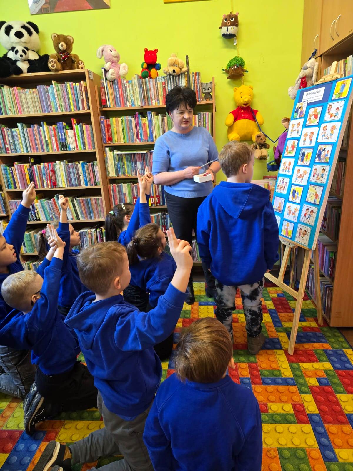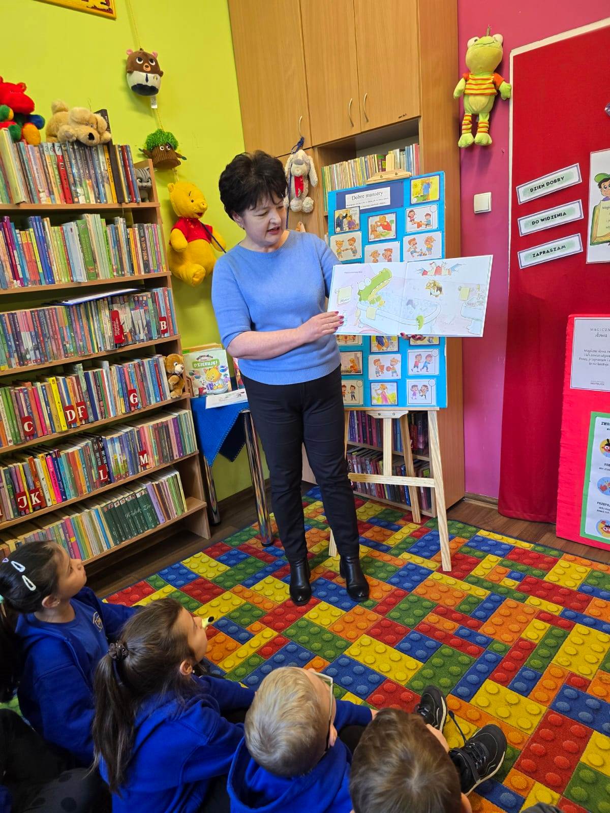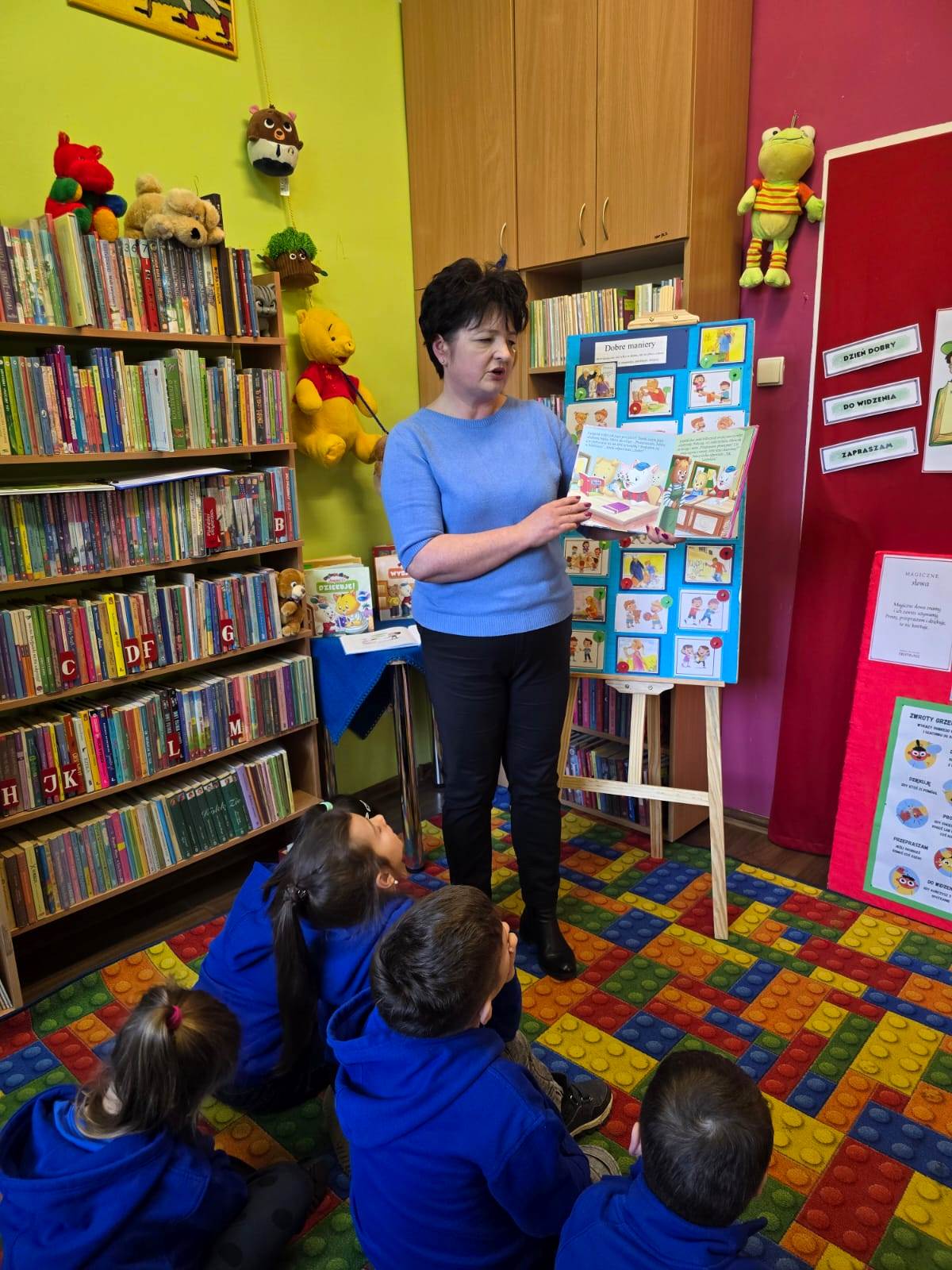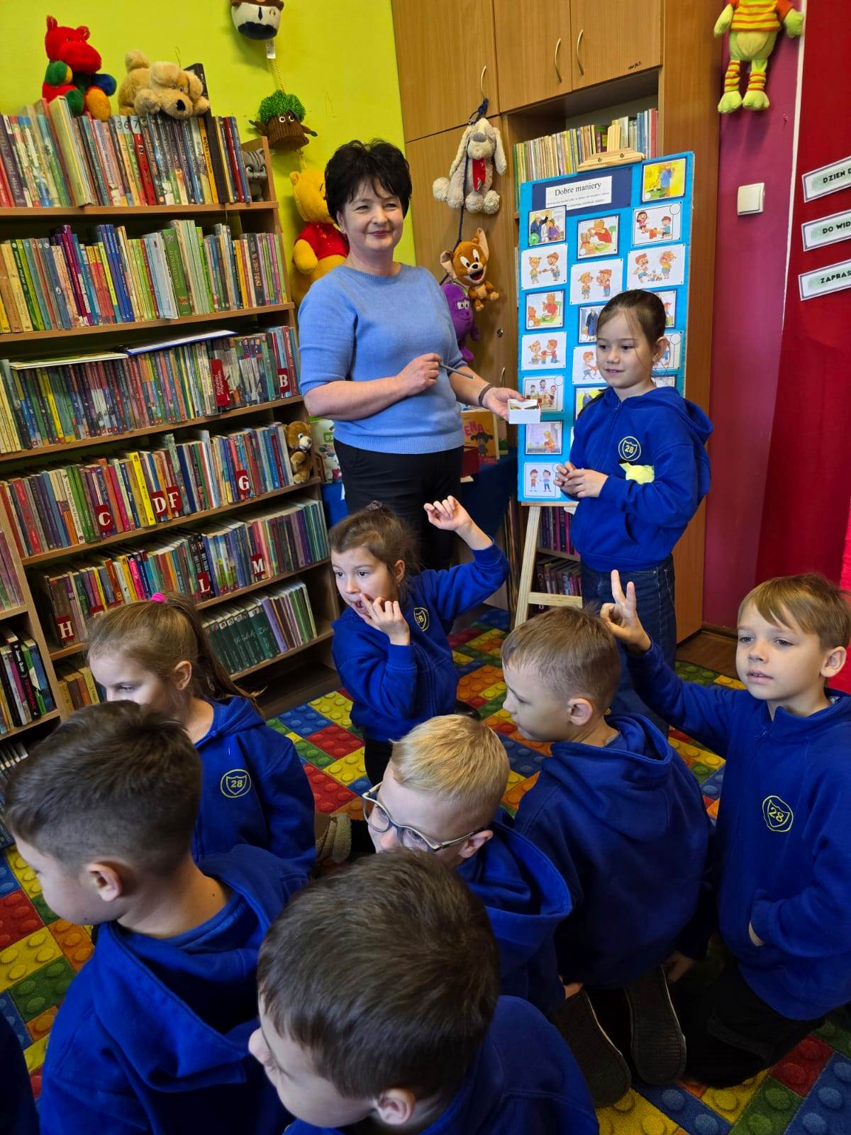 19 listopada 2025 r. Filię nr 12 odwiedzili uczniowie kl. I a i II b ze Szkoły Podstawowej nr 28 w Kielcach. Zajęcia poświęcone były kulturze osobistej. Dobre maniery obowiązują nas nie tylko w domu, ale także w szkole, w autobusie, w sklepie i nie tylko. Dzieci dowiedziały się, jak ważne jest dobre wychowanie, co można robić a czego nie wypada. W jakich sytuacjach używamy słów: PROSZĘ, DZIĘKUJĘ, PRZEPRASZAM, DZIEŃ DOBRY i DO WIDZENIA. Najtrudniej jest zawsze przeprosić. Każdy - bez wyjątku - popełnia błędy. I nic w tym strasznego. Ale nie każdy wie, jak za te błędy przeprosić. Na podstawie książki "Jak przepraszać" - D. LaRochelle uczniowie zrozumieli, że przeprosiny mogą być szczere lub nieszczere. Nie muszą być skomplikowane, po prostu trzeba przyznać, że jest nam przykro. Książka z serii "Magiczne słowa Leopolda" - PRZEPRASZAM zachęciła dzieci, do tego aby ładnie się zachowywały i aby dowiedziały się, jak przyjemnie używać magicznych słów. Jak witać się z dorosłym, a jak z kolegą.