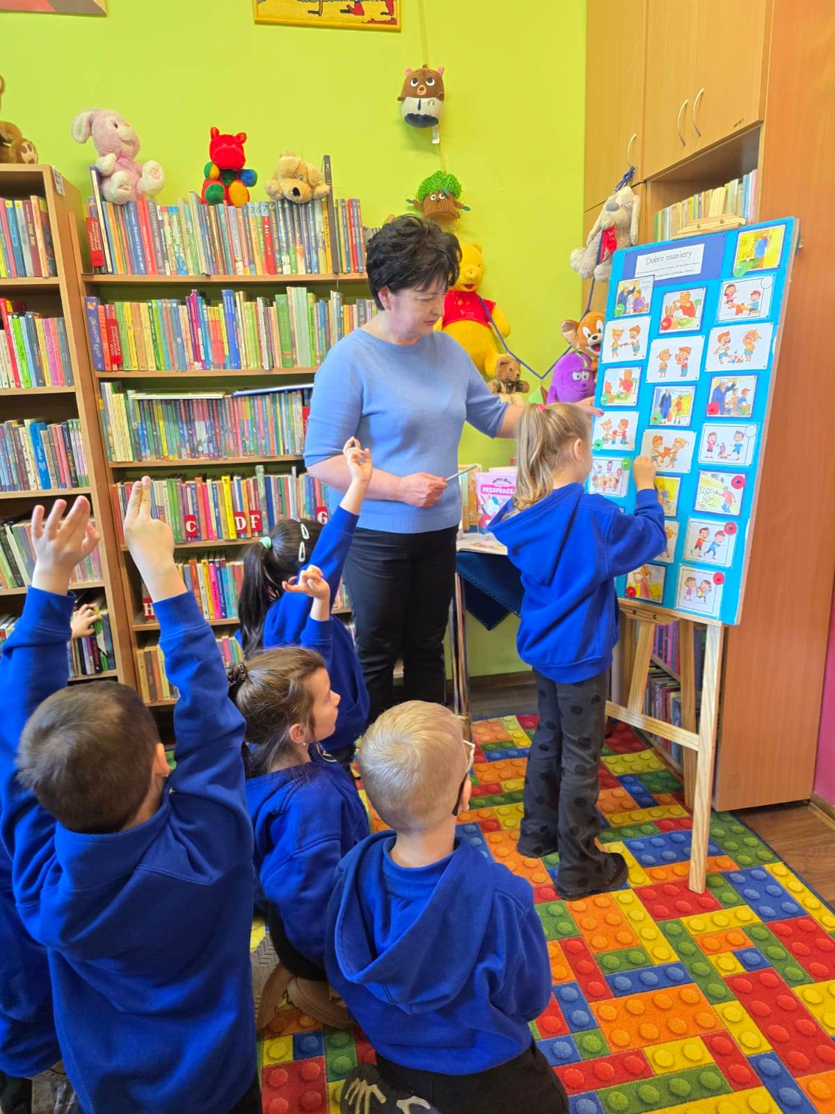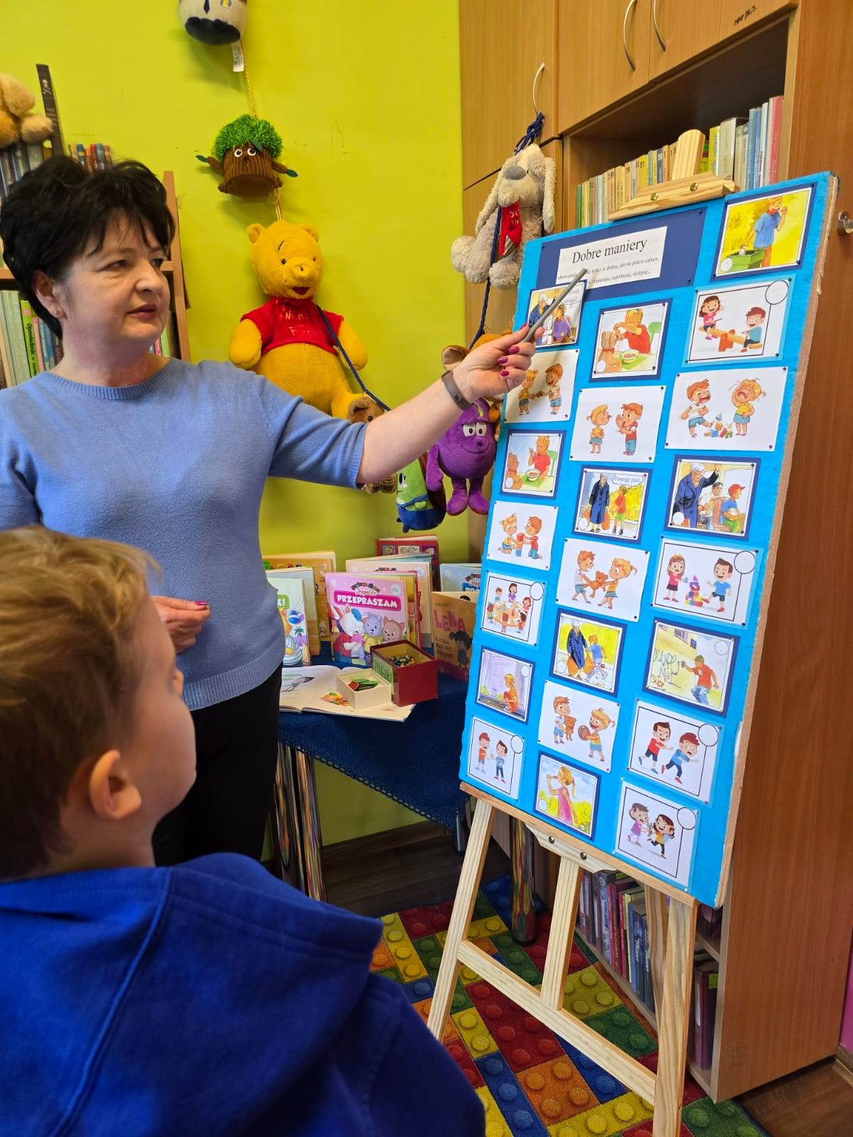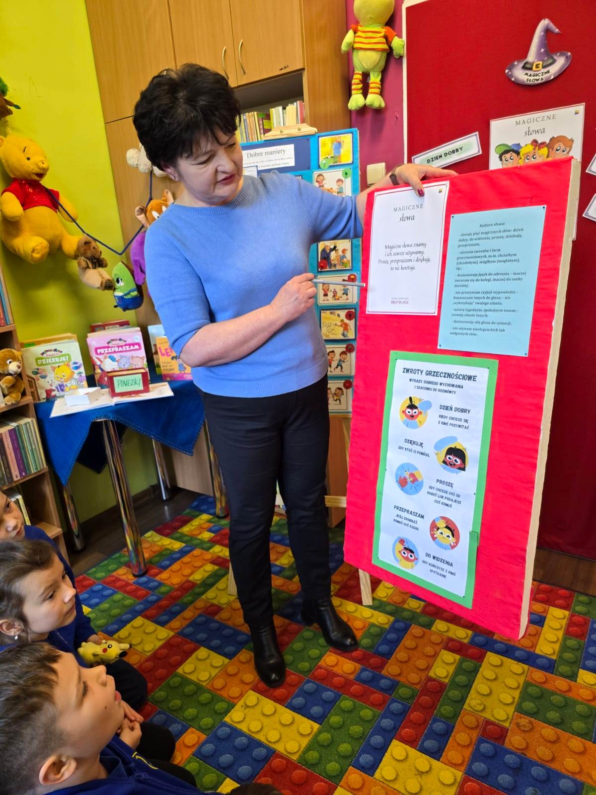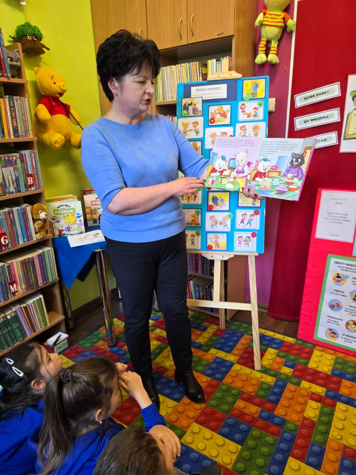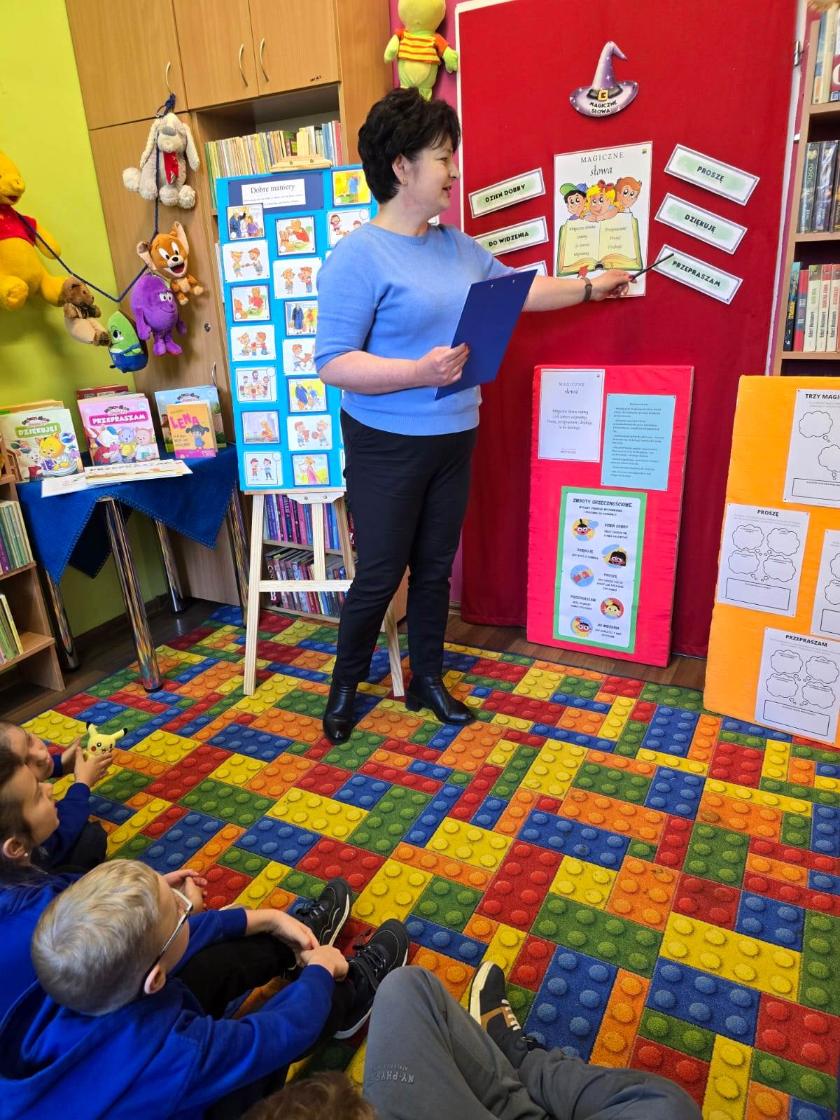 19 listopada 2025 r. Filię nr 12 odwiedzili uczniowie kl. I a i II b ze Szkoły Podstawowej nr 28 w Kielcach. Zajęcia poświęcone były kulturze osobistej. Dobre maniery obowiązują nas nie tylko w domu, ale także w szkole, w autobusie, w sklepie i nie tylko. Dzieci dowiedziały się, jak ważne jest dobre wychowanie, co można robić a czego nie wypada. W jakich sytuacjach używamy słów: PROSZĘ, DZIĘKUJĘ, PRZEPRASZAM, DZIEŃ DOBRY i DO WIDZENIA. Najtrudniej jest zawsze przeprosić. Każdy - bez wyjątku - popełnia błędy. I nic w tym strasznego. Ale nie każdy wie, jak za te błędy przeprosić. Na podstawie książki "Jak przepraszać" - D. LaRochelle uczniowie zrozumieli, że przeprosiny mogą być szczere lub nieszczere. Nie muszą być skomplikowane, po prostu trzeba przyznać, że jest nam przykro. Książka z serii "Magiczne słowa Leopolda" - PRZEPRASZAM zachęciła dzieci, do tego aby ładnie się zachowywały i aby dowiedziały się, jak przyjemnie używać magicznych słów. Jak witać się z dorosłym, a jak z kolegą.