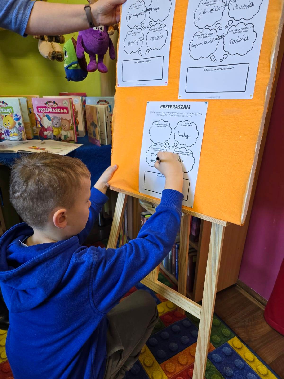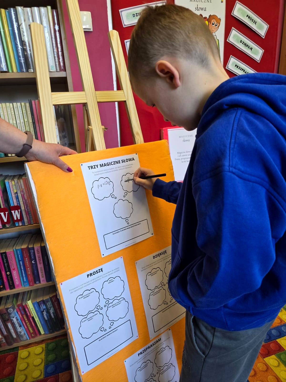 Na przykładach z życia wziętych dzieci oceniły zachowania ludzi i podzieliły na te pozytywne i negatywne. W scenkach odnalazły sytuacje, w których mogły zastosować nasze magiczne słowa. Magiczne słowa to fundament relacji z ludźmi, ale także nasza wizytówka świadcząca o kulturze osobistej i dobrych manierach. Proszenie o coś nie jest oznaką słabości i powodem do wstydu, ale najwyższym wyrazem uprzejmości. Proszę - wyraża zaufanie. Słowo dziękuję - sprawia, że doceniamy osobę za trud, jaki włożyła w zrobienie czegoś dla nas. Dziękuję - wyraża wdzięczność. Słowo przepraszam - to odwaga przyznania się do błędu, który mamy prawo popełnić. Przepraszam wyraża skruchę. Używanie tych słów nic nie kosztuje, a więc trzeba pamiętać o nich, a nasze życie stanie się radośniejsze i przyjemniejsze. Do tego wniosku doszli uczniowie na zakończenie zajęć.
