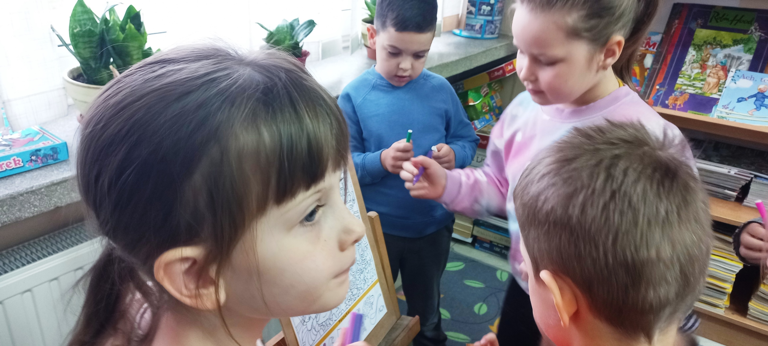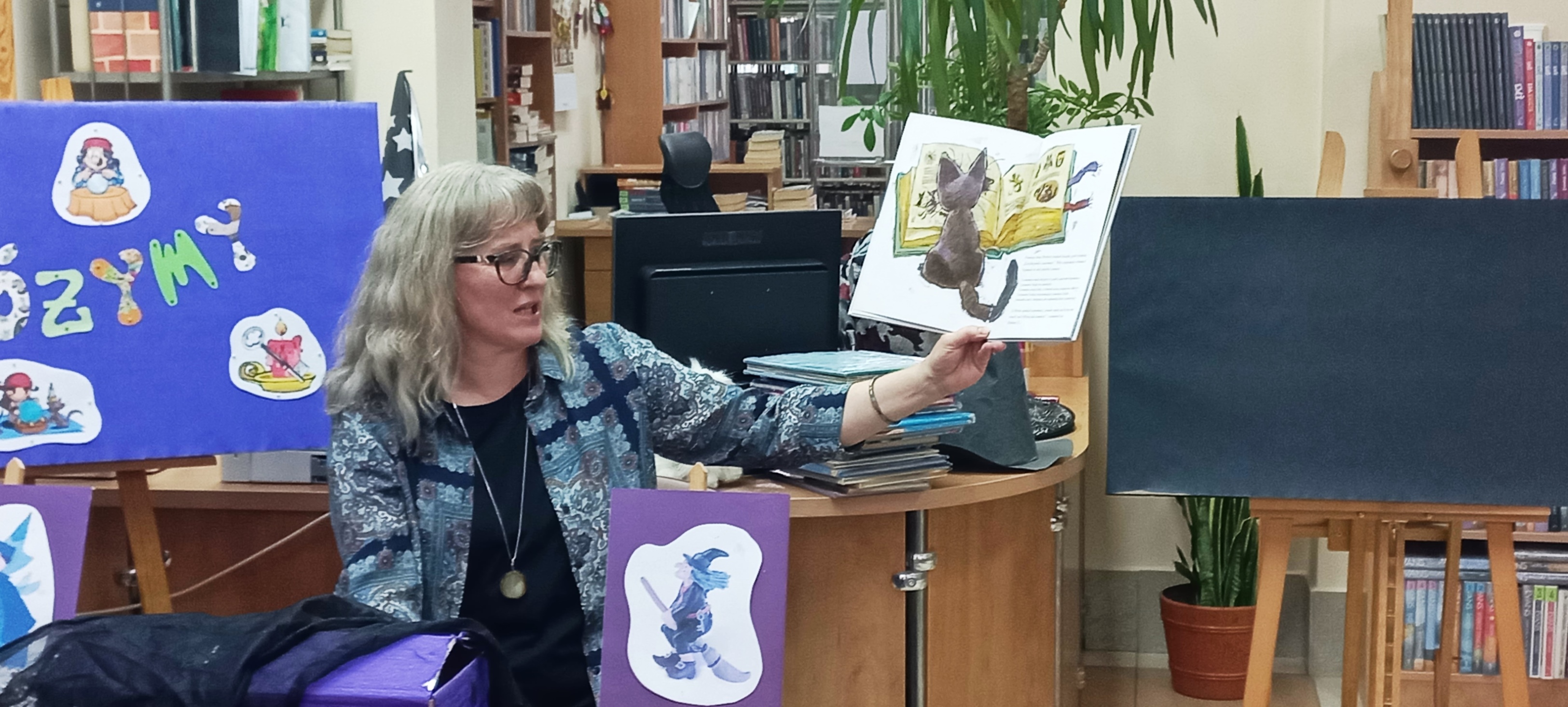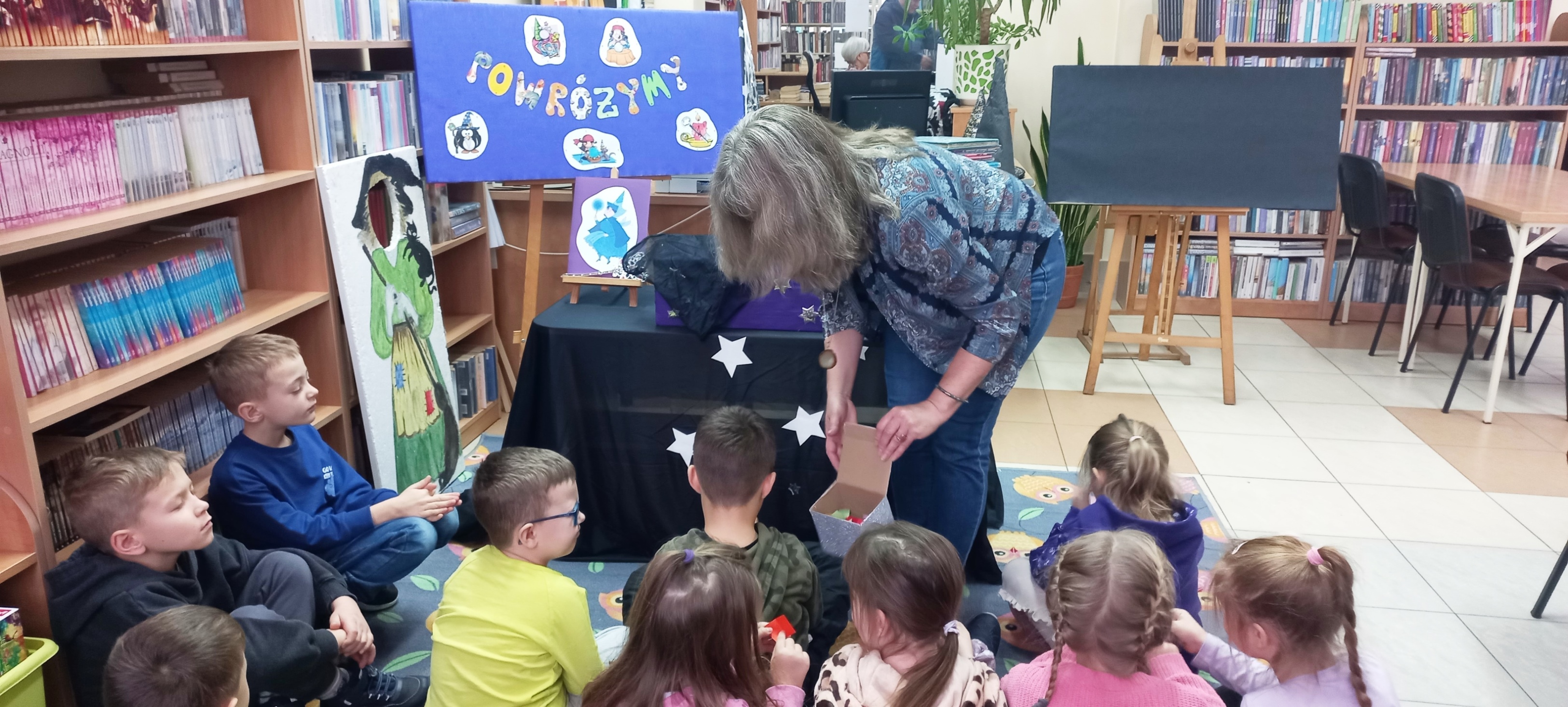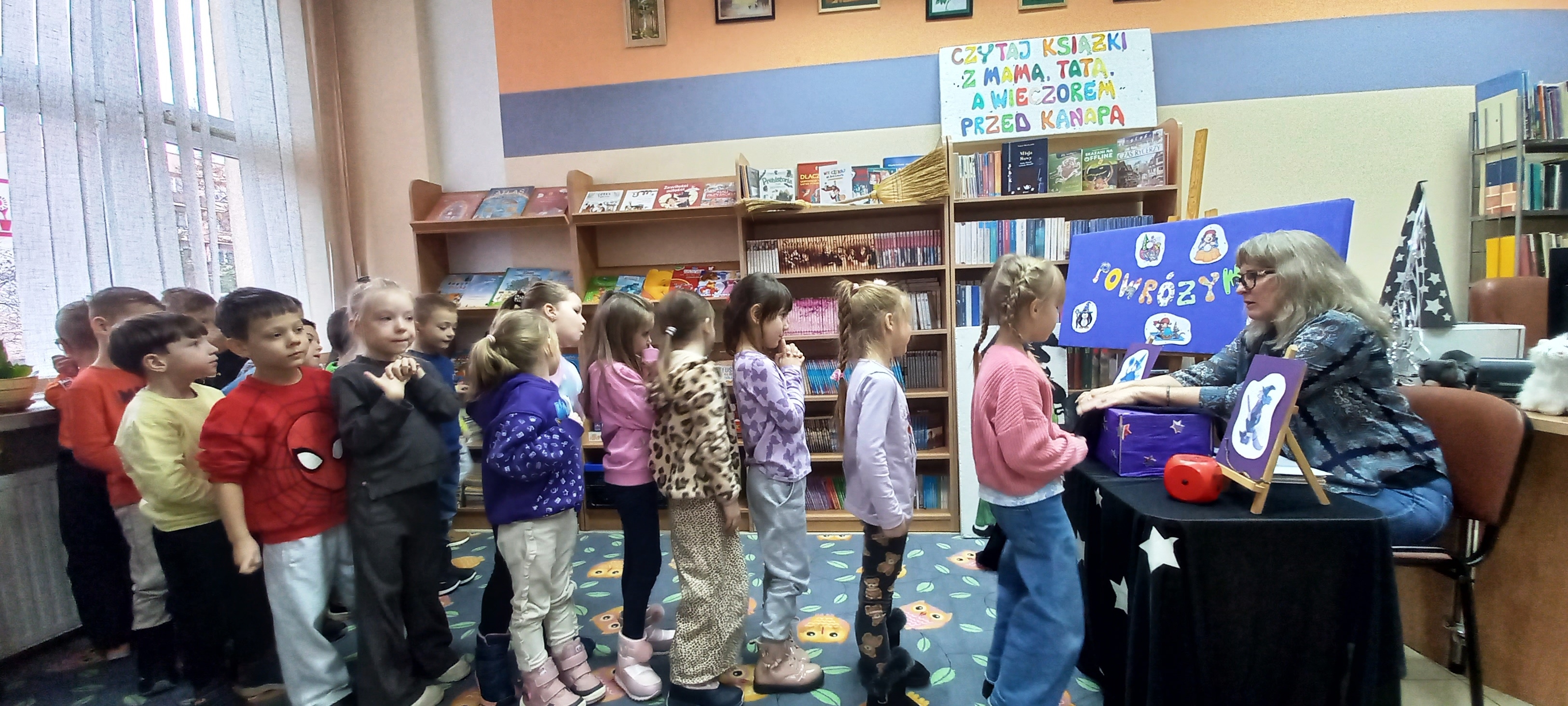 Kolejne spotkanie poświęcone wróżbom odbyło się z udziałem grupy Krasnoludków z PS nr 39 w Kielcach. Sześciolatki zostały wprowadzone w świat czarownic dzięki książce E. Horn „Przepraszam, czy jesteś czarownicą?”. Dowiedziały się, że czarownicę poznajemy po spiczastej czapie, pasiastych rajstopach, miotle i oczywiście czarnym kocie. W literaturze nie brakuje czarownic, czarodziejów i wróżek - o czym też rozmawialiśmy z przedszkolakami. Najwięcej frajdy - jak wiadomo - przyniosła jednak zabawa we wróżenie: z kolorowych karteczek, rzutu kostką i losowania przedmiotów symbolizujących zawód, który nasi goście mogliby wykonywać w przyszłości. Na koniec Krasnoludki podzielone na dwie grupy miały do wykonania tematyczne zadania: obrazek z gwiazdek i wyszukanie ukrytych przedmiotów na rysunku.