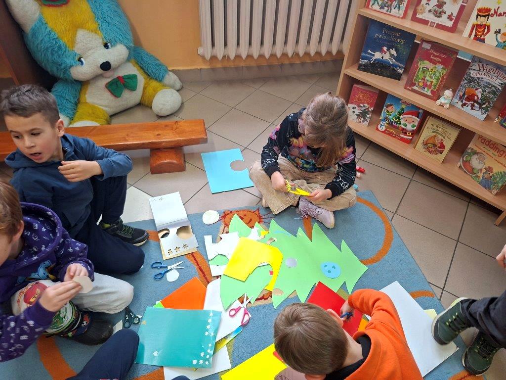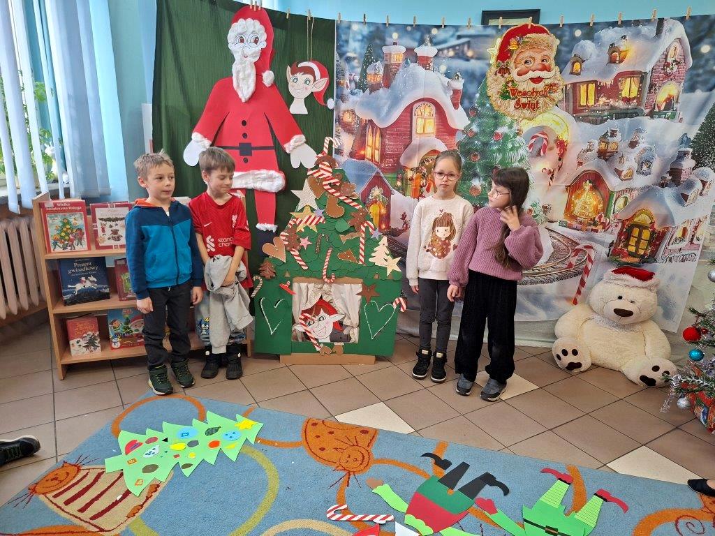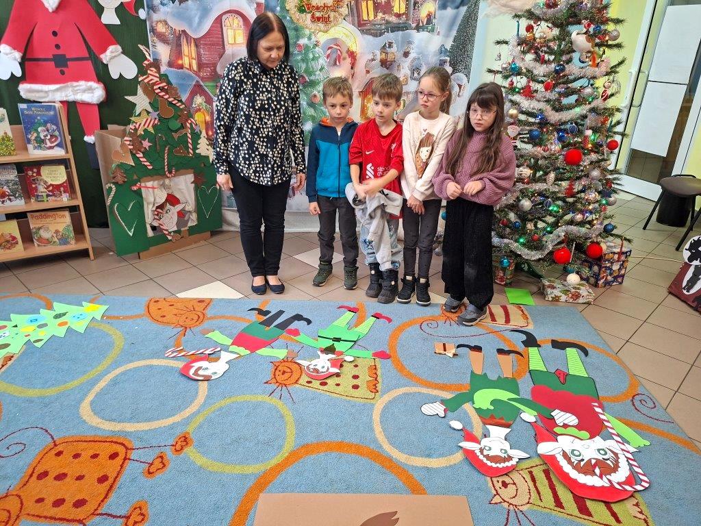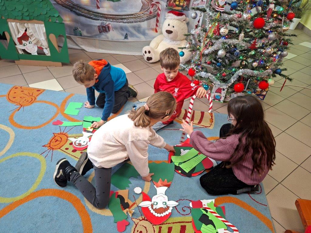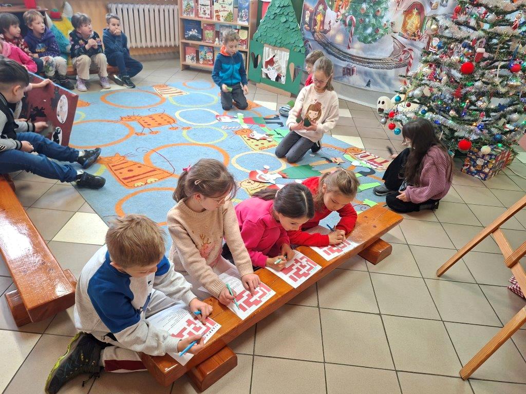 Dzieci chętnie wysłuchały też opowieści o dawnych tradycjach bożonarodzeniowych i z wielkim zapałem wykonały różne świąteczne zadania.