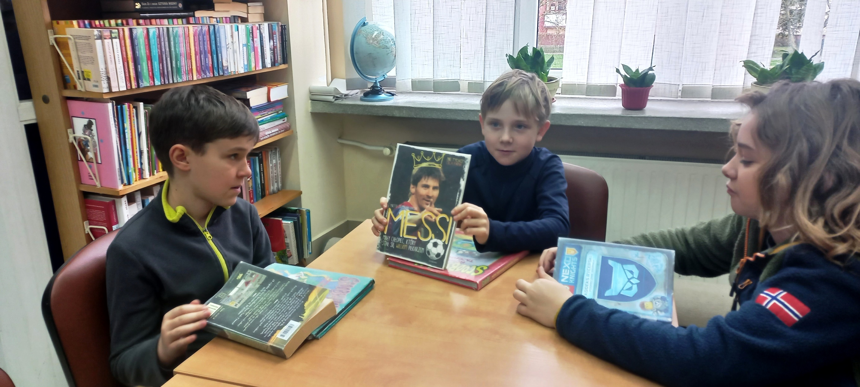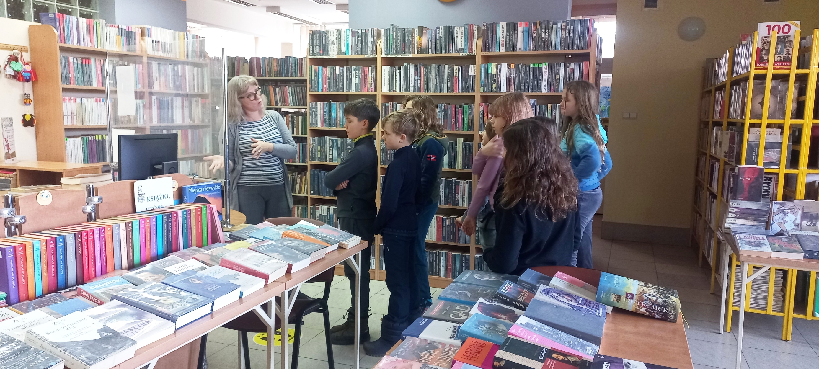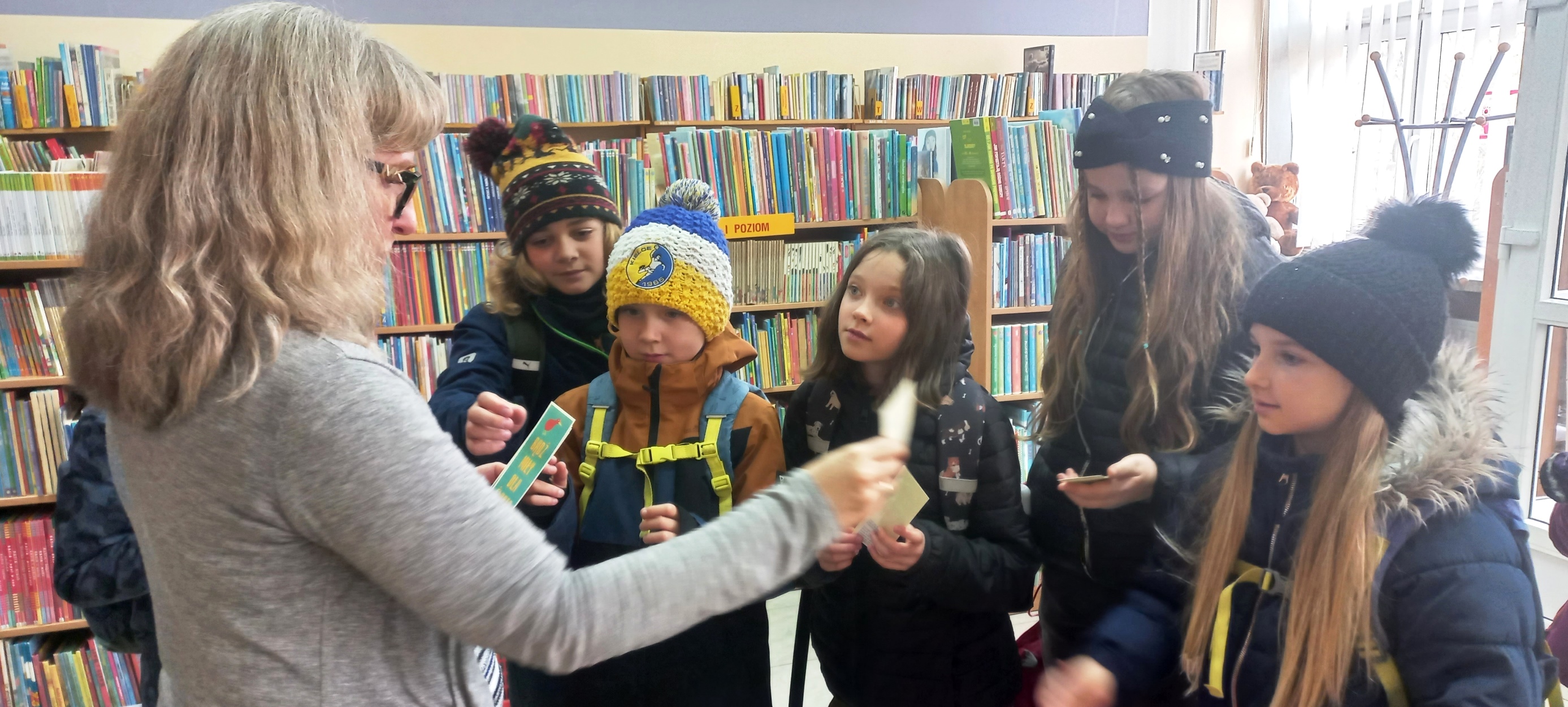Po raz pierwszy gościliśmy uczniów klas IV-V z Leśnej Szkoły w Kielcach. Młodzi ludzie zwiedzili naszą filię, zapoznali się z zasadami zapisu i korzystania z jej zbiorów. My poprosiliśmy o wybór książek, które potem każdy „reklamował” reszcie grupy jako warte przeczytania. Nie dla każdego było to proste zadanie, ale mamy nadzieję, że to spotkanie było zwiastunem kolejnych odwiedzin w naszych progach. Na pamiątkę każdy z gości otrzymał od nas zakładkę.