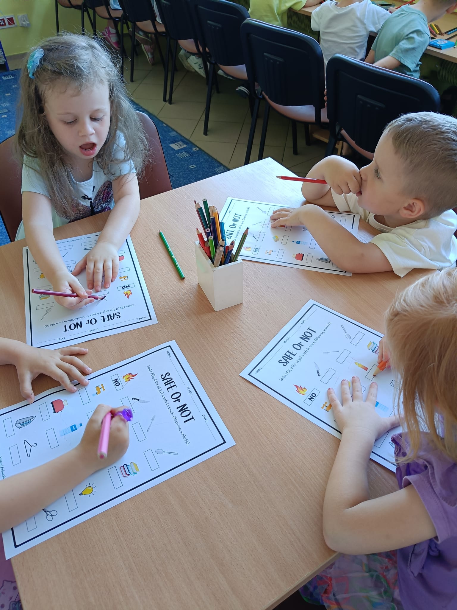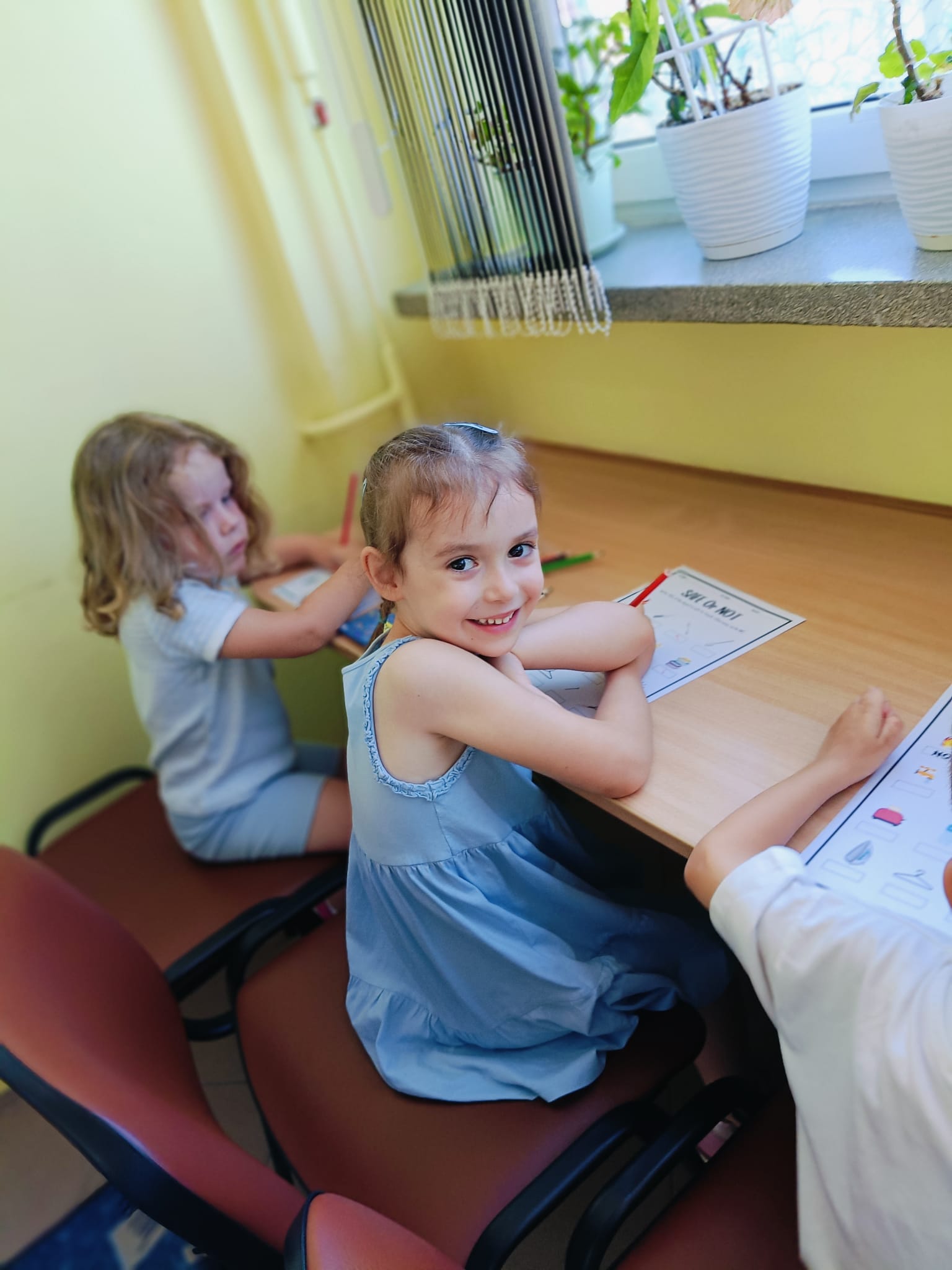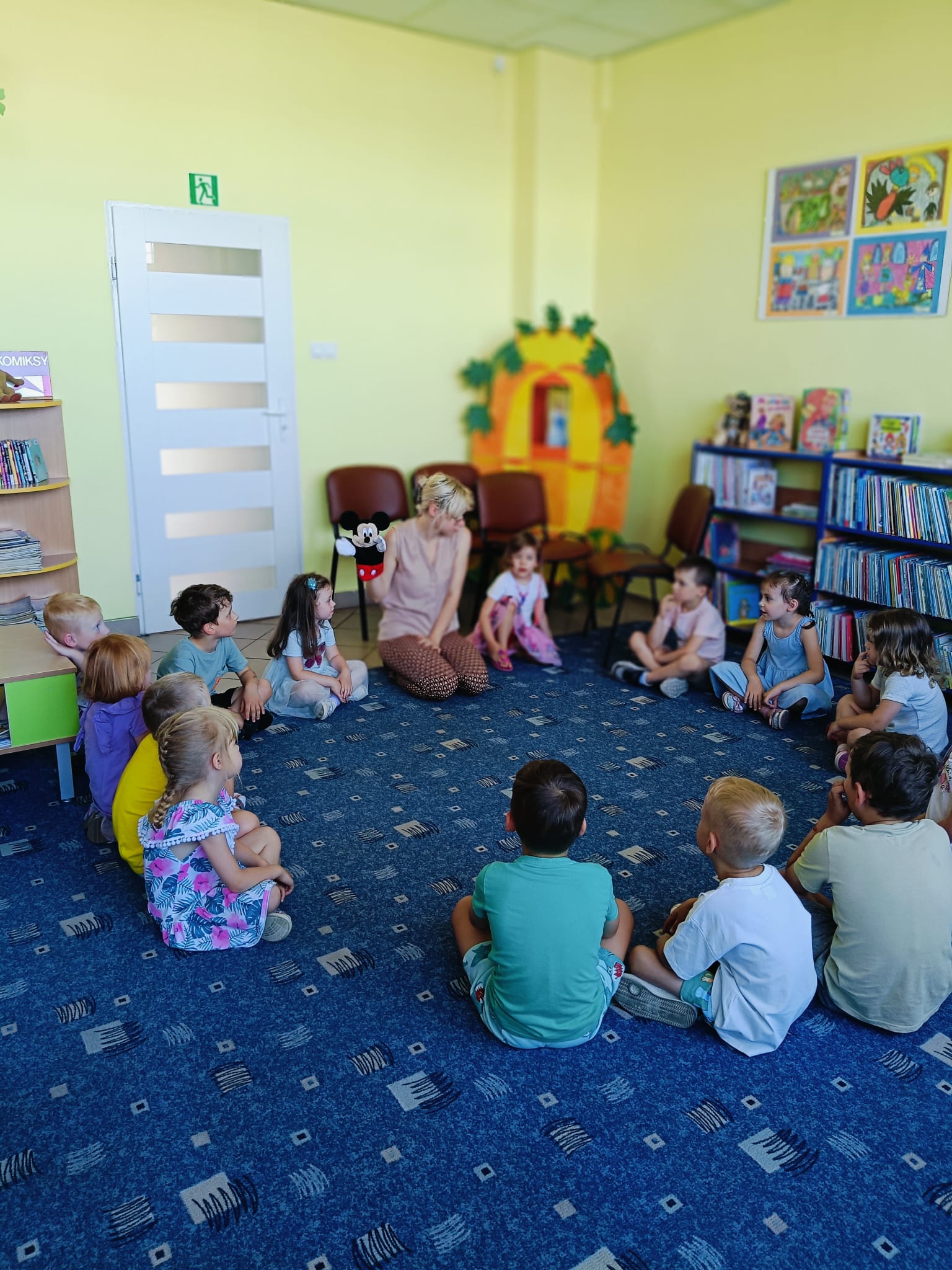 W ramach Akcji Lato Filię nr 5 odwiedziło Przedszkole Sunny Kids. Zajęcia prowadziła Pani Zuzanna ze Szkoły Językowej ProfiLingua. Dzieci rozwiązywały łamigłówki i zagadki związane z bezpieczeństwem, słuchały z zaciekawieniem jak Myszka Minnie opowiada w języku angielskim o zasadach bezpieczeństwa.