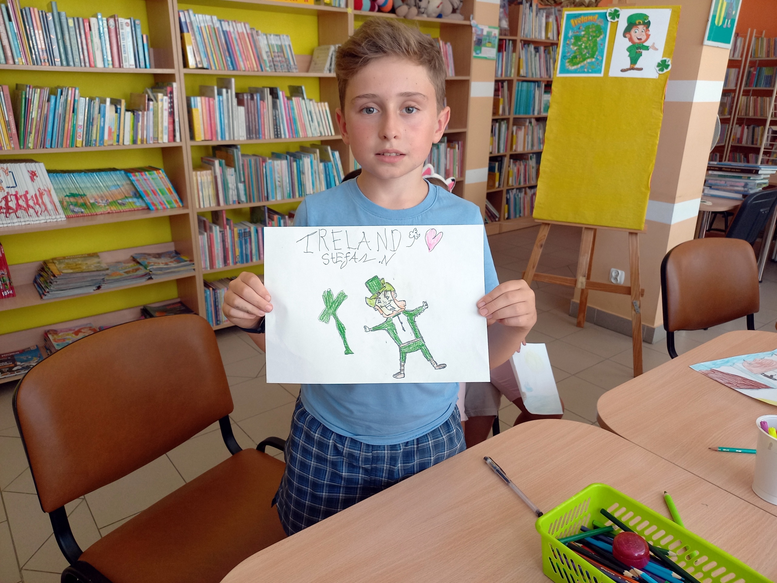 20 sierpnia odbyła się kolejna wakacyjna impreza, na której dzieci poznały Irlandię i „ Legendę o świętym Patryku”. Według legendy święty Patryk urodził się w Brytanii za panowania rzymskiego. Jako młodzieniec został porwany przez korsarzy i sprzedany do niewoli w Irlandii. W tym czasie dużo się modlił i medytował. Po 6 latach udało mu się uciec i wrócić do domu. Zdecydował się wstąpić do zakonu i przyjąć święcenia kapłańskie. Jako biskup misyjny wrócił na zieloną wyspę. To dzięki niemu Irlandia otrzymała chrzest. W trakcie nauczania przedstawiał Trójcę Świętą jako trójlistną koniczynę, która stała się jego symbolem. Wiedza zdobyta podczas spotkania przydała się do wykonania kolorowych ilustracji.