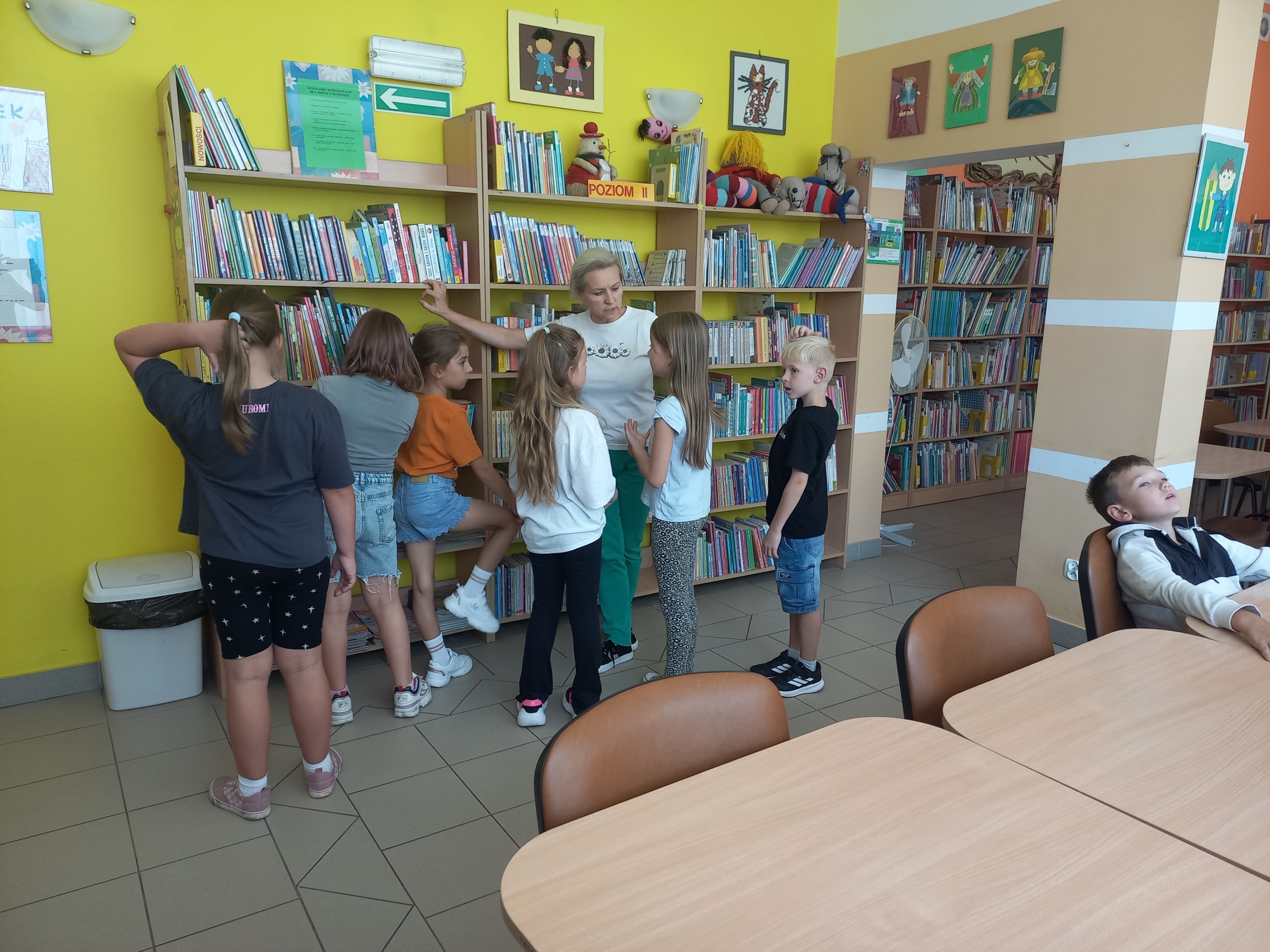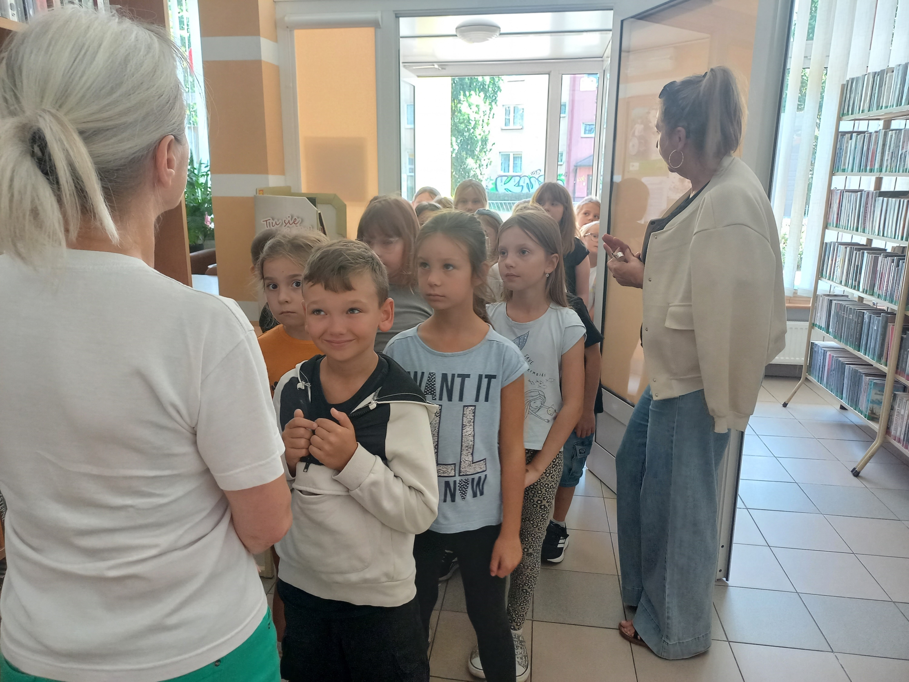 Po wakacjach biblioteka ponownie wypełniła się dziecięcym gwarem. Odwiedziły nas dzieci z klasy II „b” SP nr 18 w Kielcach. Była to ich pierwsza wspólna wizyta po letniej przerwie, więc panowała atmosfera ciekawości i lekkiego podekscytowania. Na początku przypomniano uczniom o zasadach korzystania z biblioteki i księgozbioru, a następnie przedstawiono nowości, które pojawiły się w czasie wakacji. Najbardziej wyczekiwaną częścią spotkania było swobodne przeglądanie półek, wybieranie książek i szaleństwo w kąciku zabawek.