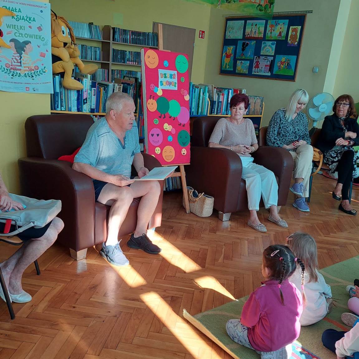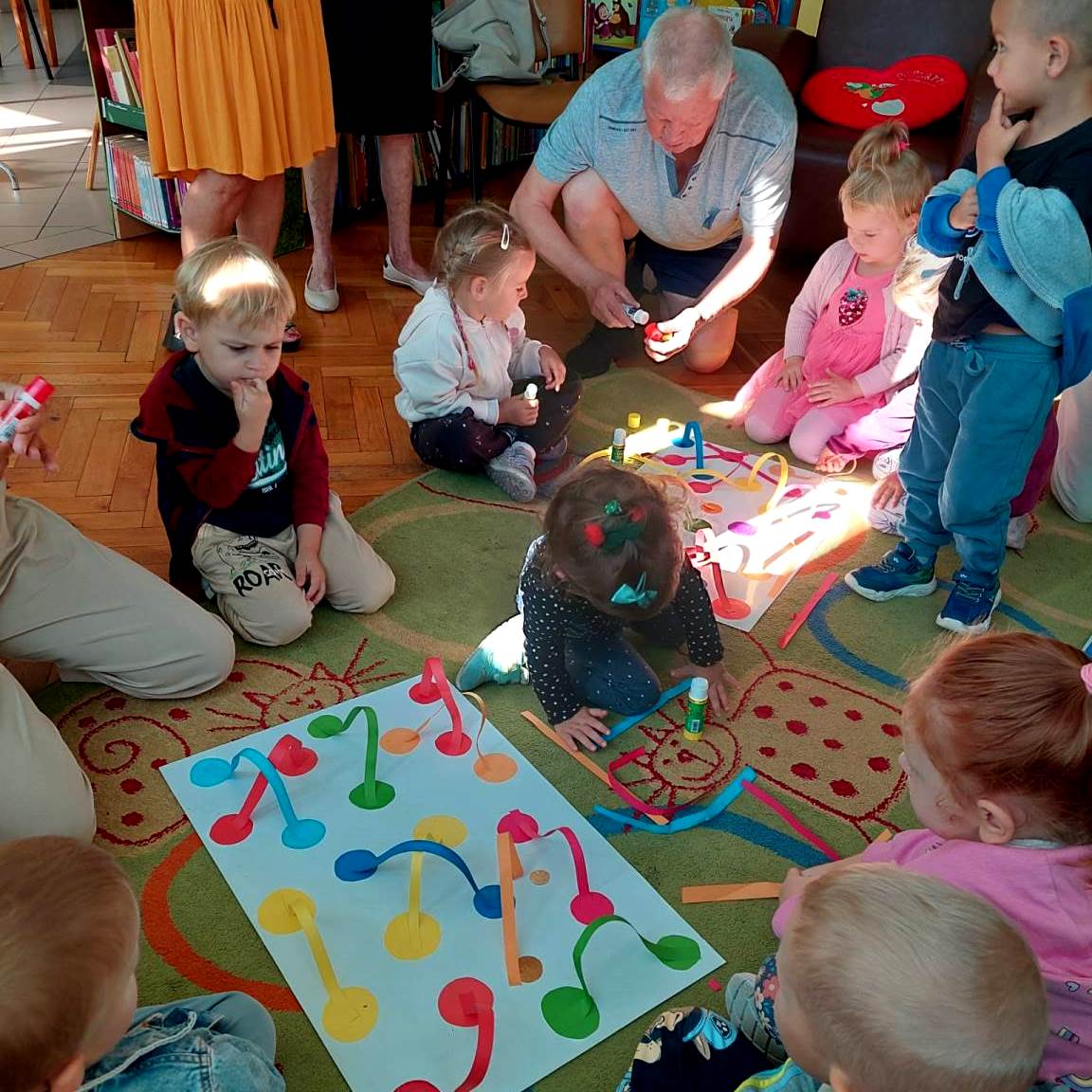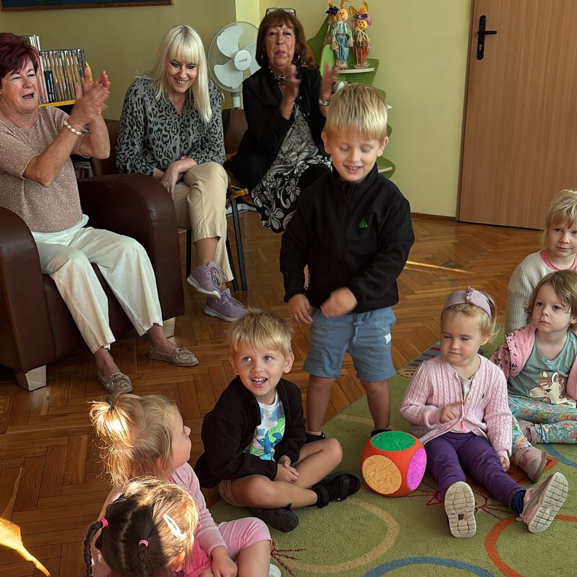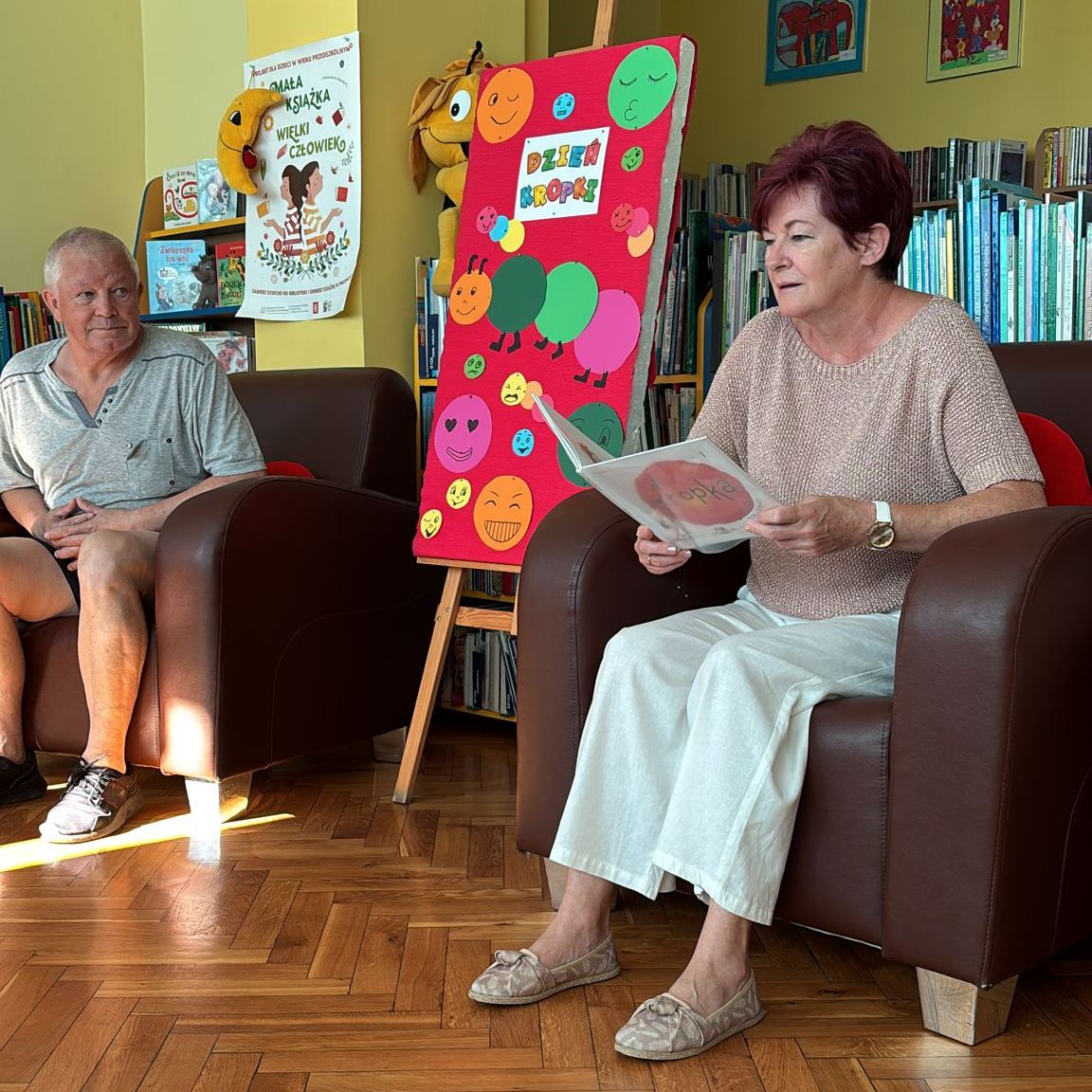 15 września obchodzimy Dzień Kropki. W filii nr 10 świętowaliśmy trzy dni wcześniej. Wyjątkowe zajęcia, bo z udziałem seniorów z Klubu Seniora Bocianek i przedszkolaków z grupy „Motylki” z Przedszkola Samorządowego nr 42. Goście z Klubu Seniora przeczytali maluchom książkę „Kropka” Petera H. Reynoldsa. Po wspólnym czytaniu dzieci wzięły udział w wesołej gimnastyce z kolorową kostką do gry, gdzie każdy kolor kropki oznaczał inne zadanie do wykonania. Podczas pracy plastycznej dzieciaki rozwijały swoją kreatywność łącząc kropki w pary kolorowymi paskami. Spotkanie przebiegło w radosnej atmosferze, łącząc wspólne czytanie, ruch i twórczą zabawę seniorów z maluchami. Zachęciliśmy dzieci do udziału w akcji „Mała książka – wielki człowiek”, a na zakończenie każdy uczestnik obdarowany został kropką- emotikonem i słodką niespodzianką.