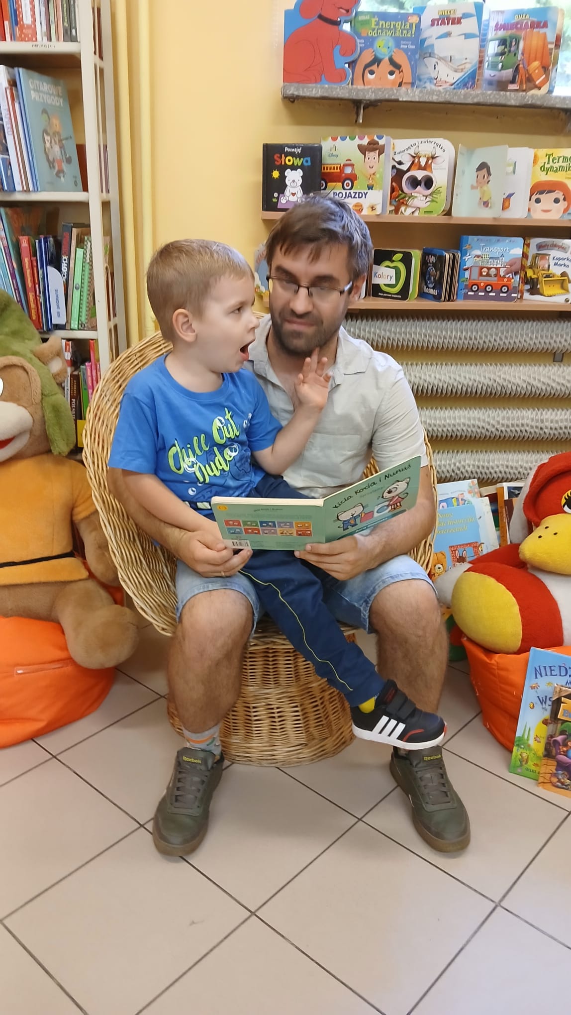 W sobotę 20 września 2025 r. w Filii nr 13 rozpoczęliśmy cykl pod hasłem „Czytaj z tatą”. Na pierwszym spotkaniu zostały przeczytane książki: „O duszku Eugeniuszku”, „Niedźwiadku Mały, jesteś wspaniały!”, „Kicia Kocia i Nunuś”, Sprzątamy” oraz „Tata Oli nie chce być dorosły”.