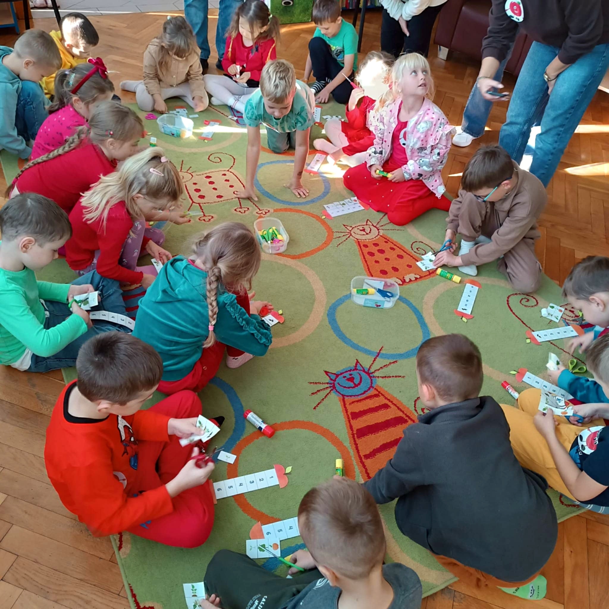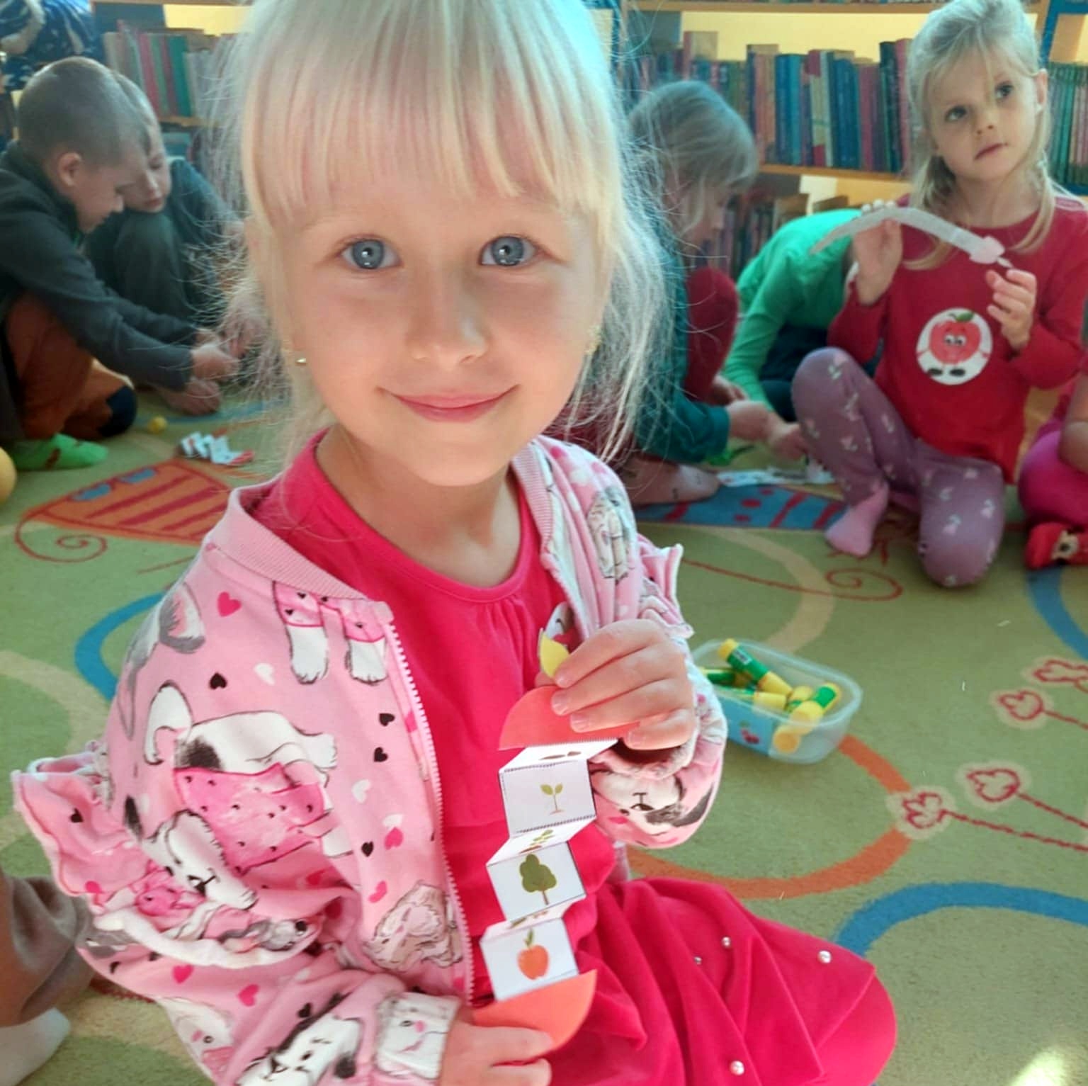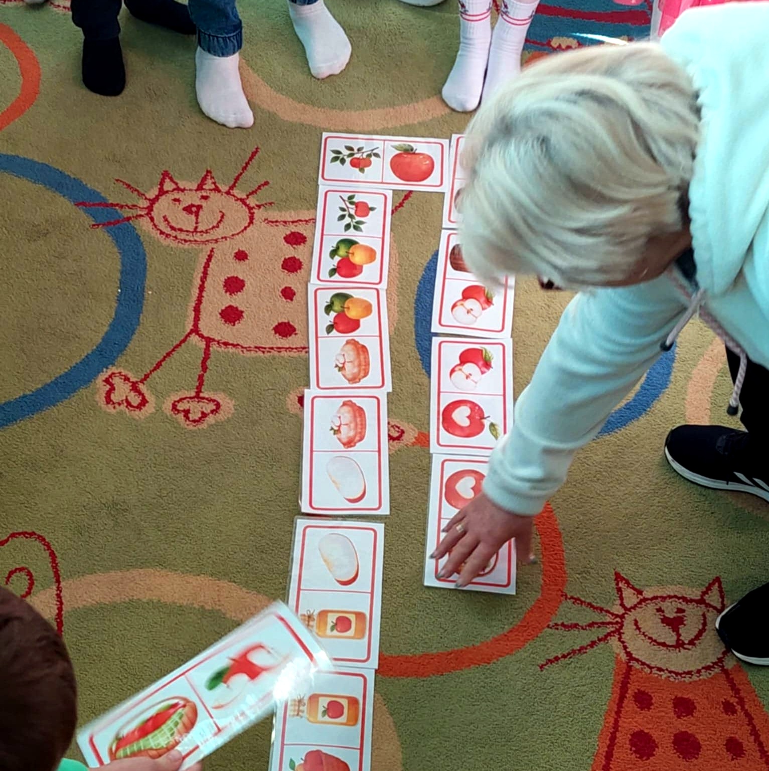 Spotkanie rozpoczęli seniorzy czytaniem fragmentu Królewny Śnieżki, w którym pojawia się słynne zatrute jabłko. Następnie rozmawialiśmy o tym, skąd biorą się jabłka, jakie znamy odmiany i jakie wartości odżywcze kryje w sobie ten owoc. Nie zabrakło też zabawy – wszyscy razem zagraliśmy w jabłkowe domino, dopasowując obrazki z jabłkami i świetnie się przy tym bawiąc. W części plastycznej dzieci i seniorzy wspólnie wykonali cykl życia jabłka – od nasionka, przez kwiat, aż po dojrzały owoc. Na zakończenie każdy został poczęstowany świeżym, soczystym jabłkiem. Serdecznie dziękujemy za ten smakowity upominek Panu Januszowi, właścicielowi sklepu owocowo-warzywnego z ul. Zagórskiej.