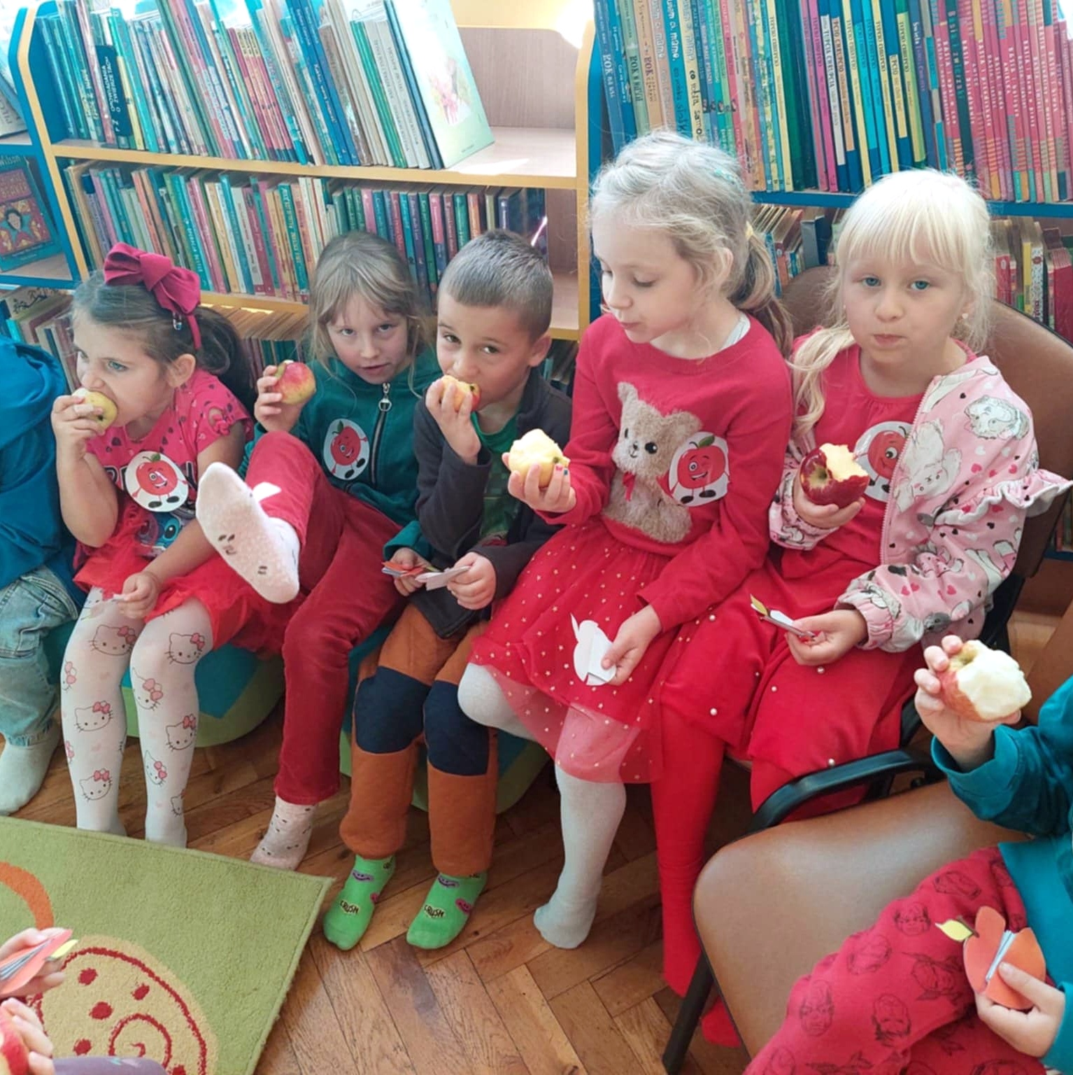 Dziś w naszej filii wspólnie z dziećmi z grupy „Biedroneczki” z PS nr 42 oraz Seniorami z Klubu Seniora Bocianek świętowaliśmy Dzień Jabłka.