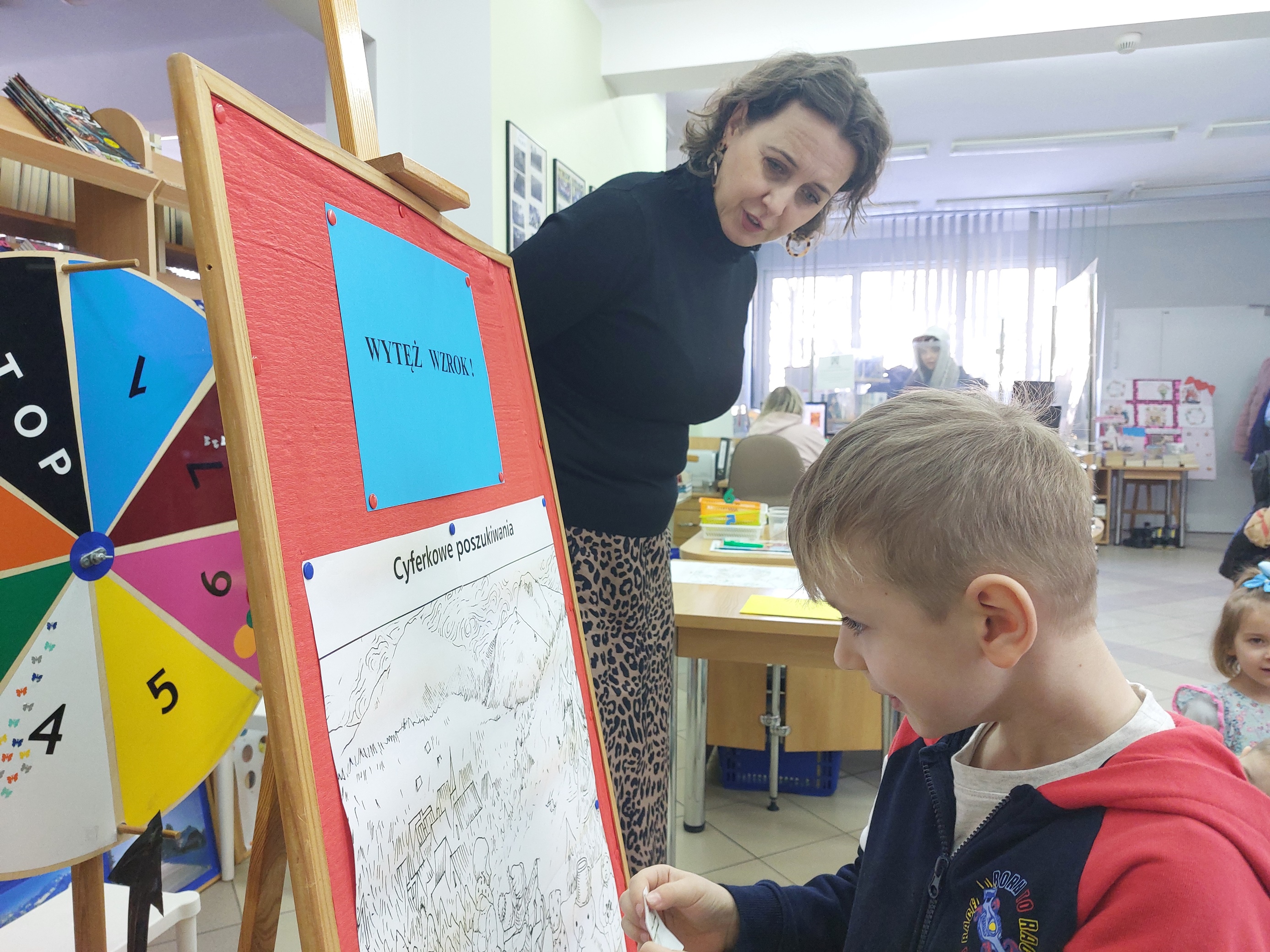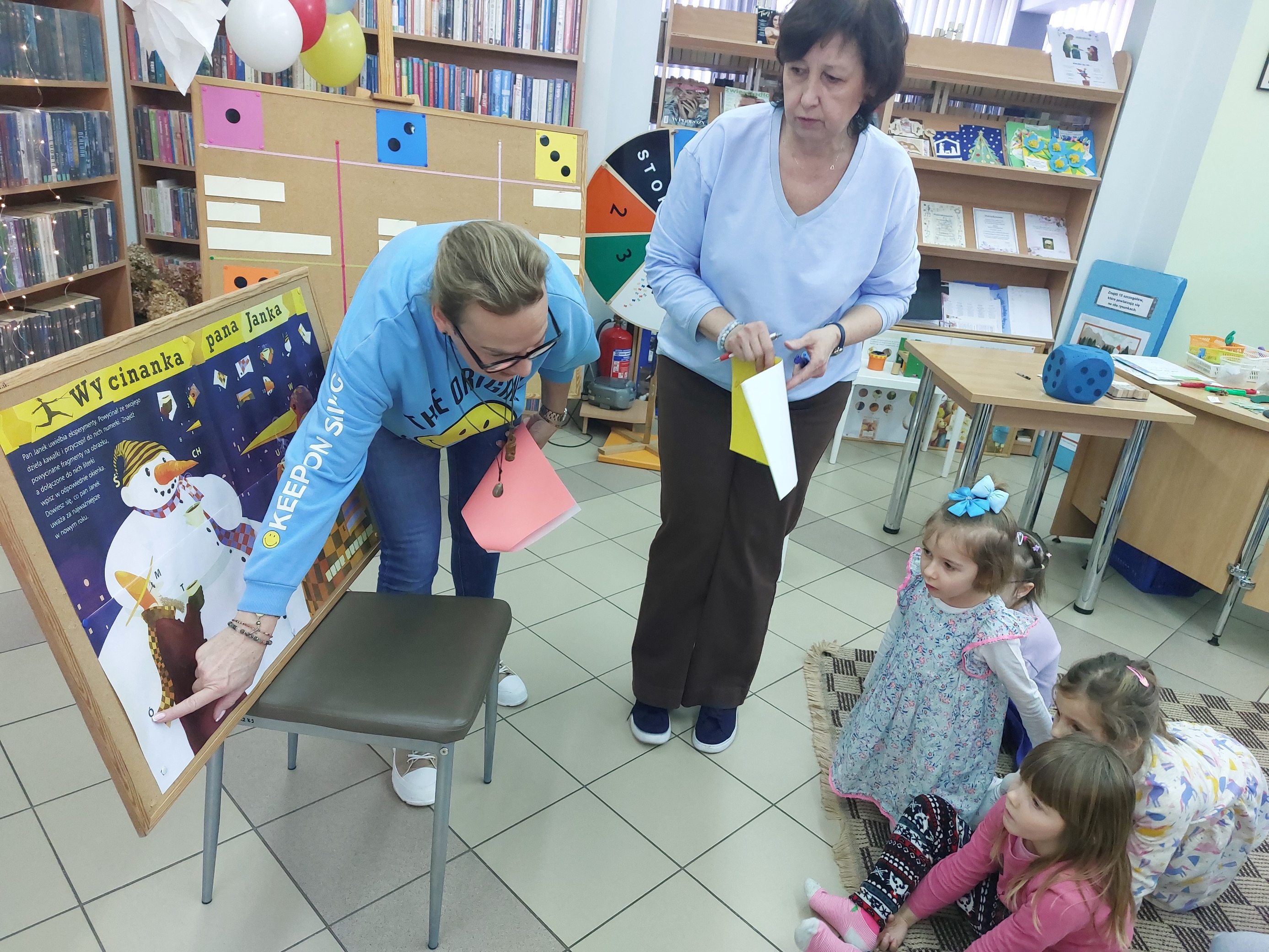 Ferie wystartowały! Aby fajnie się pobawić oraz zaczerpnąć inspirującej wiedzy, w środowe przedpołudnie w podwoje naszej filii zawitali podopieczni z PS nr 14 ze swoimi paniami. A tu czekała na nich moc atrakcji. Dzieci nie trzeba było zachęcać do wspólnej zabawy, pełne werwy i zapału przystąpiły do przygotowanych zadań. Za oknami srogi mróz nie odpuszcza, więc zimowe zajęcia pod dachem cieszą się dużą popularnością. Rywalizacja w grupach i zdobywanie pieczątek za poprawne pokonywanie torów przeszkód bez reszty pochłonęły naszych uczestników. Nowy rok to dobra pora na zmiany i podsumowanie starego, co zapewniły zabawa w wycinankę Pana Janka i przeczytane opowiadanie „Świetny rok”. Endorfiny wyzwolone w trakcie gimnastyki sprawnościowej wpłynęły na wesoły nastrój naszych gości, którzy opuszczali mury biblioteki z uśmiechami na ustach. Dziękujemy i życzymy fantastycznych ferii!