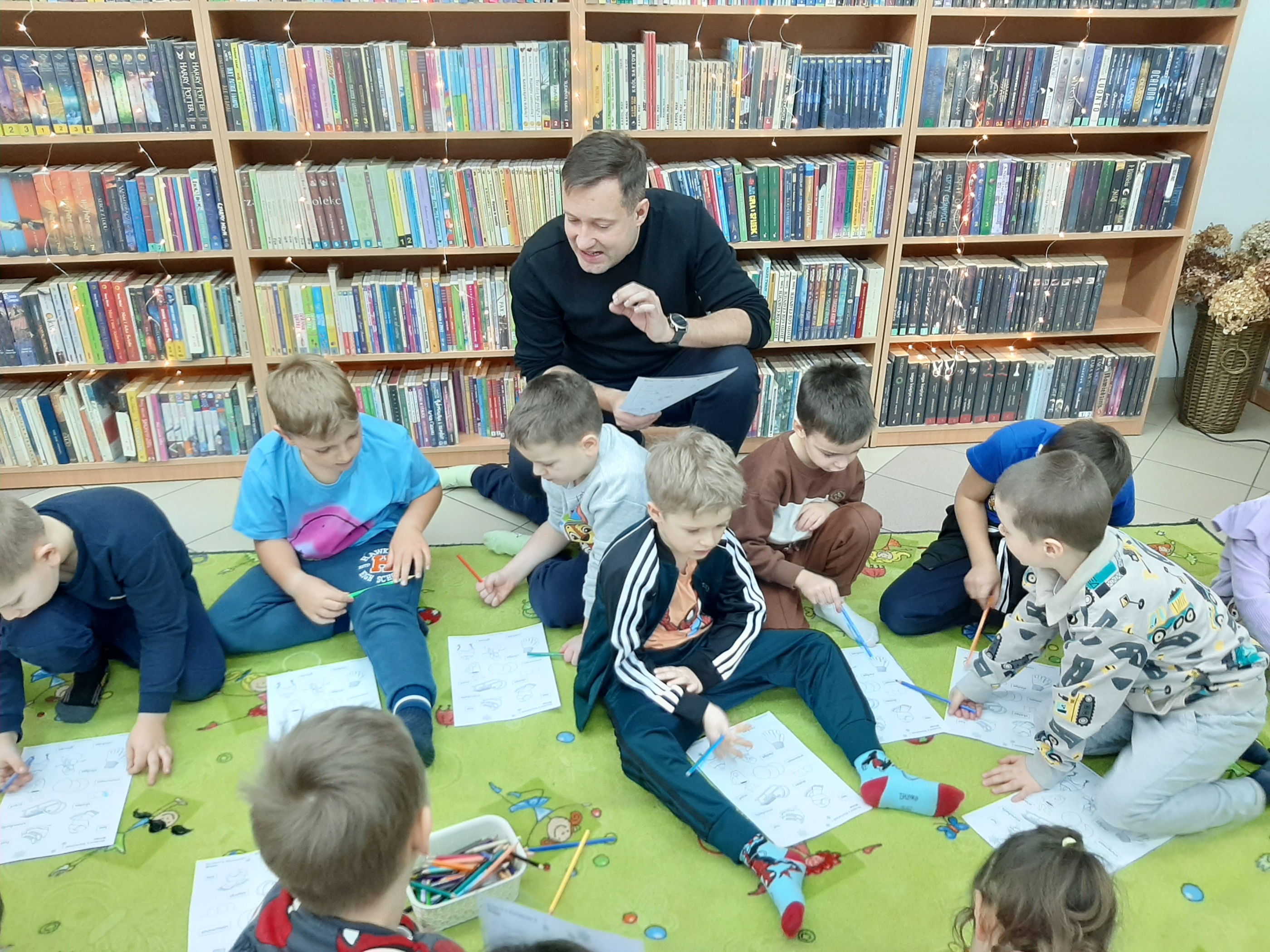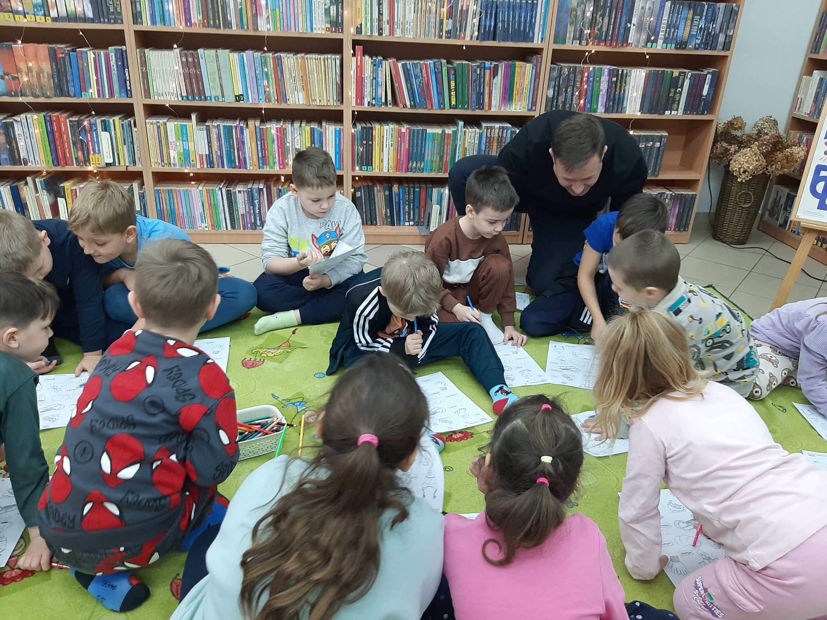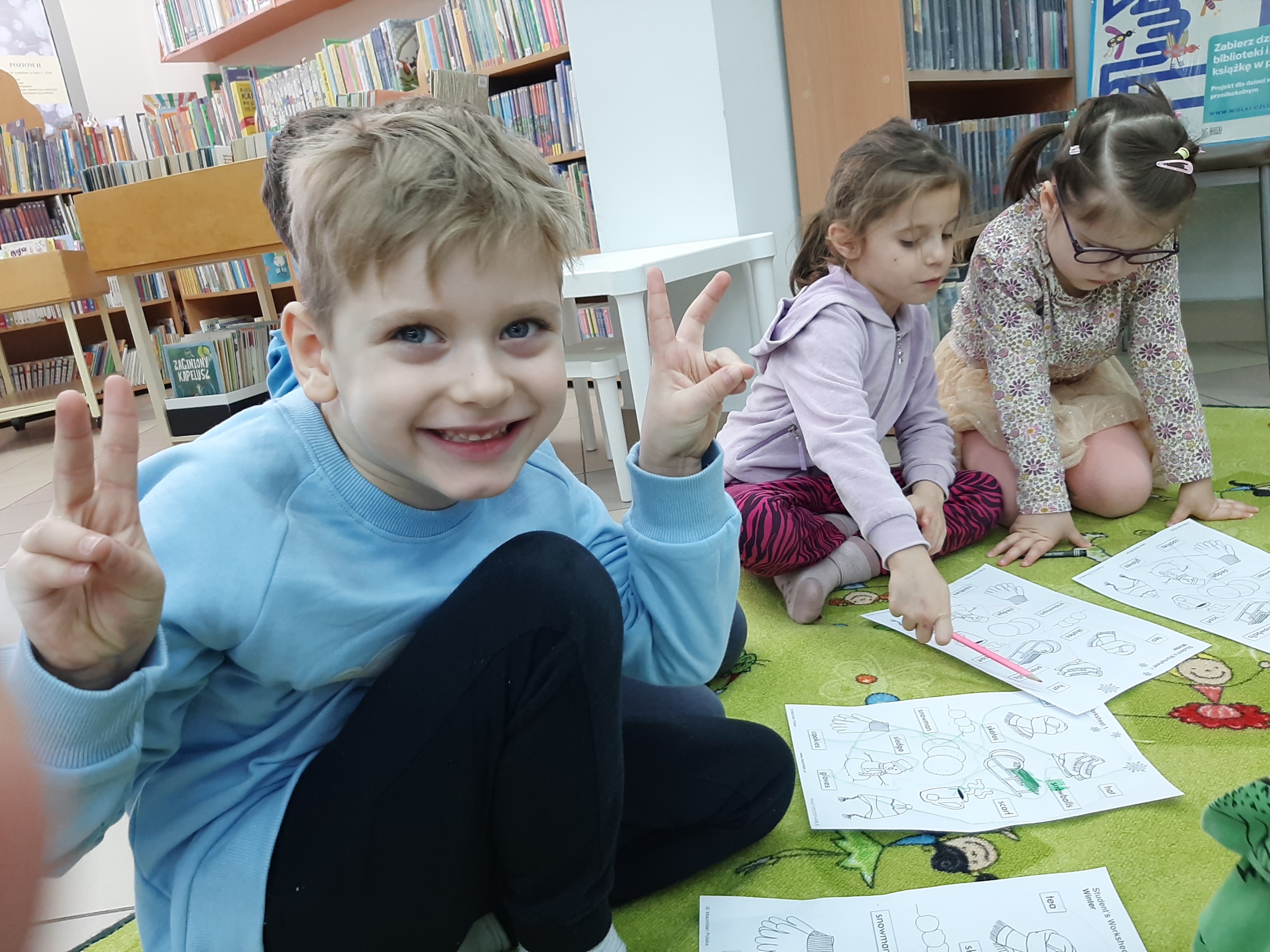 29 stycznia język angielski bez reszty zawładnął Filią nr 2! Sympatyczny lektor ze Szkoły ProfiLingua już po raz kolejny uczył słówek naszych małych sąsiadów z Przedszkola nr 14. Zabawowa forma zajęć sprawiła, że maluchy z łatwością przyswajały zagadnienia związane z obecnie nam panującą zimą, by następnie wykonać ćwiczenia sprawdzające stan nabytej wiedzy. To edukacyjne spotkanie zakończył mały egzamin ze słówek, a w nagrodę każdy z uczestników otrzymał wybraną przez siebie naklejkę. Zadowolone dzieci opuszczając filię żegnały się poprawnie po angielsku. Dziękujemy za wspólną naukę i zabawę.